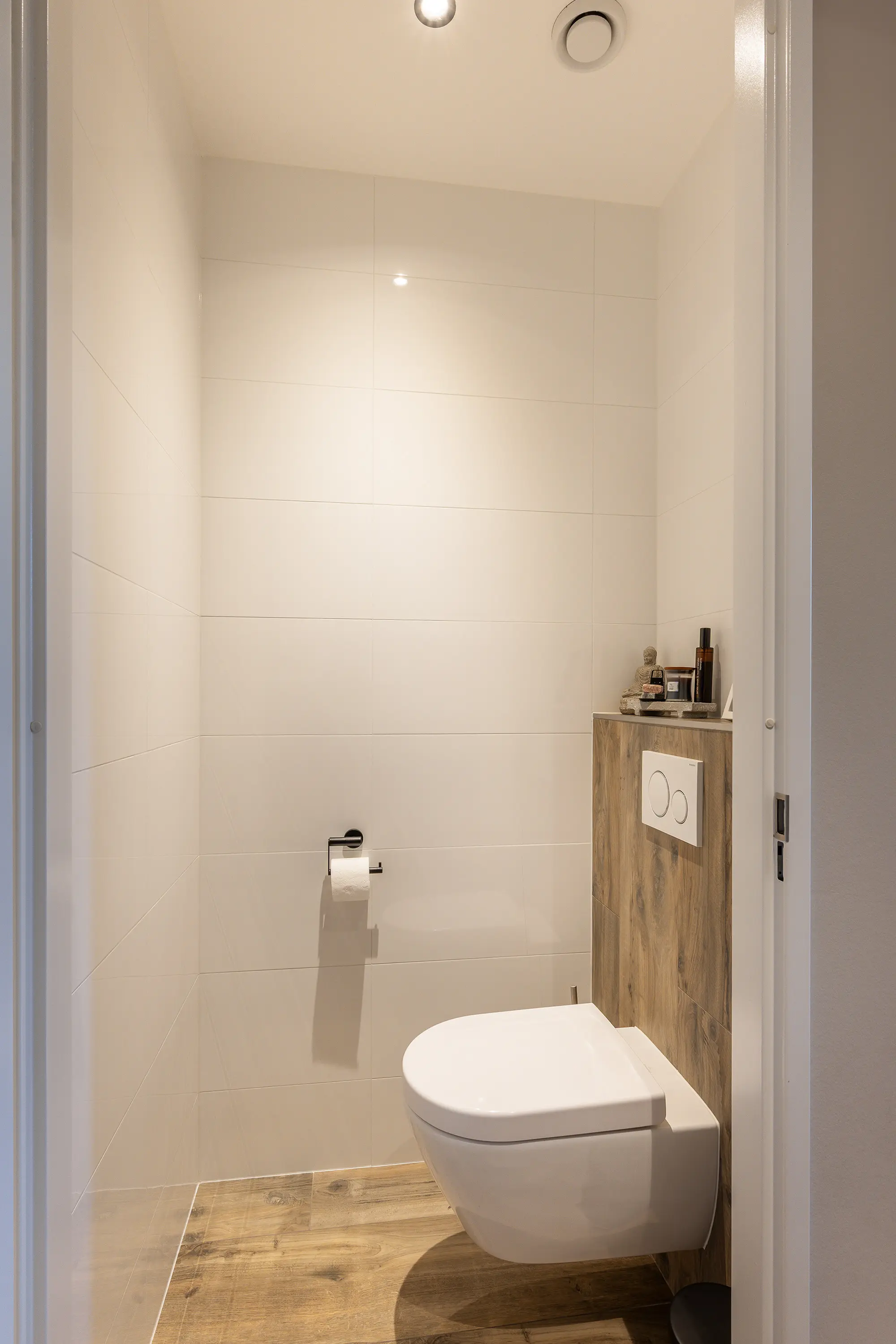 - Verlaagd plafond met spots;
