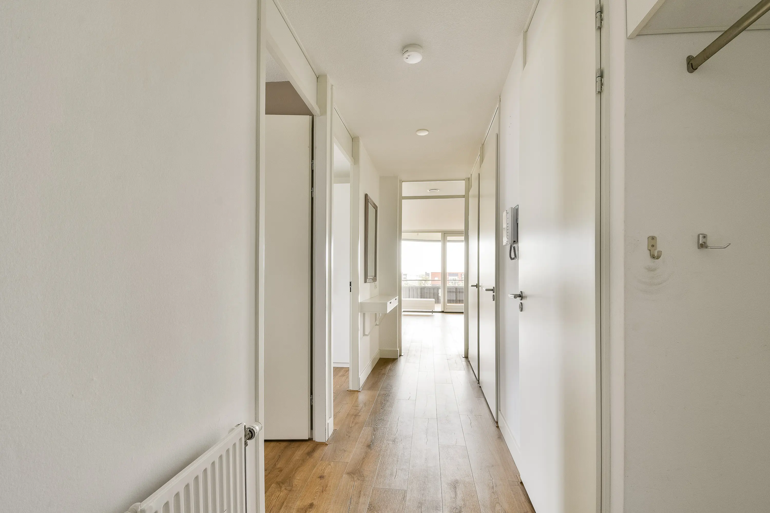 Bij binnenkomst in het appartement treft u een ruime hal met meterkast en een praktische bergkast met opstelling van de C.V.-installatie (Remeha, 2011), WTW-unit en aansluitingen voor wasmachine en droger.