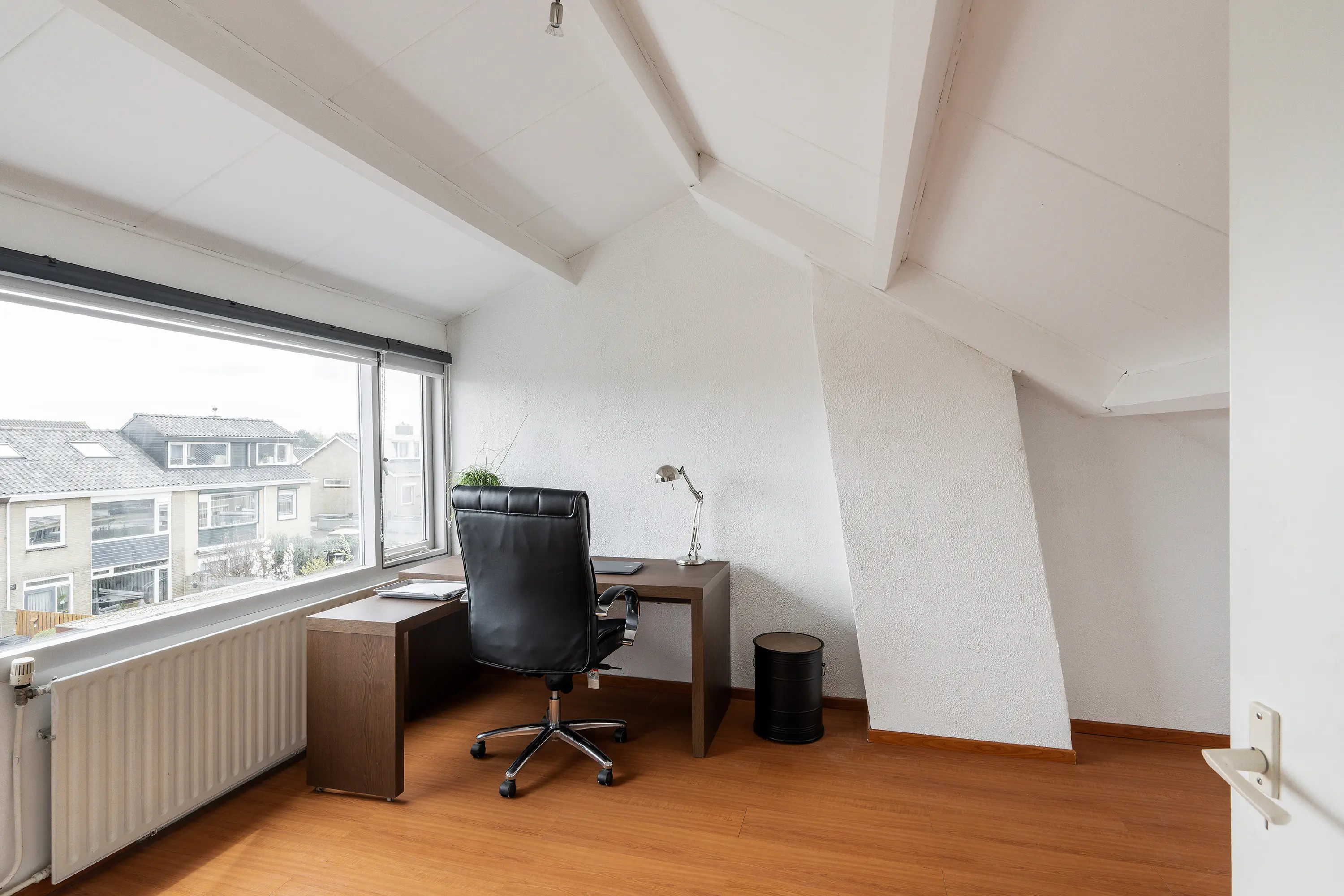 De tweede verdieping biedt een royale vierde slaapkamer met dakkapel en een fijne lichtinval. Door de hoogte en het vloeroppervlak is deze ruimte zeer veelzijdig: ideaal als slaapkamer, thuiskantoor of hobbyruimte.