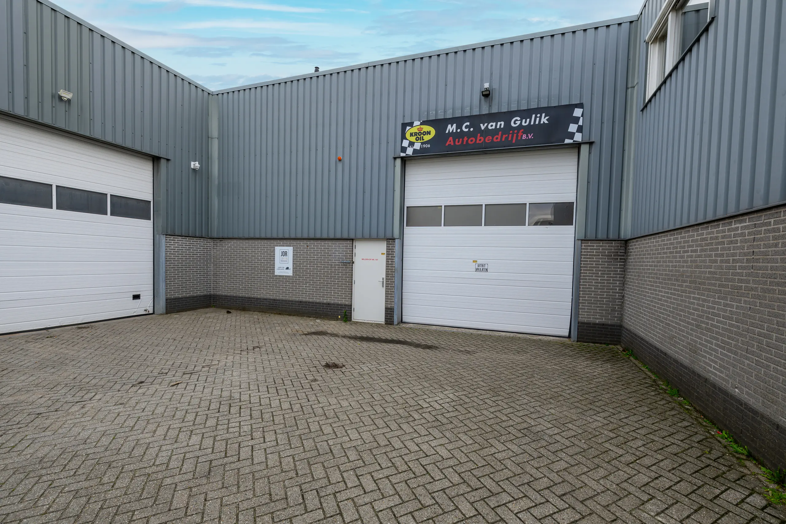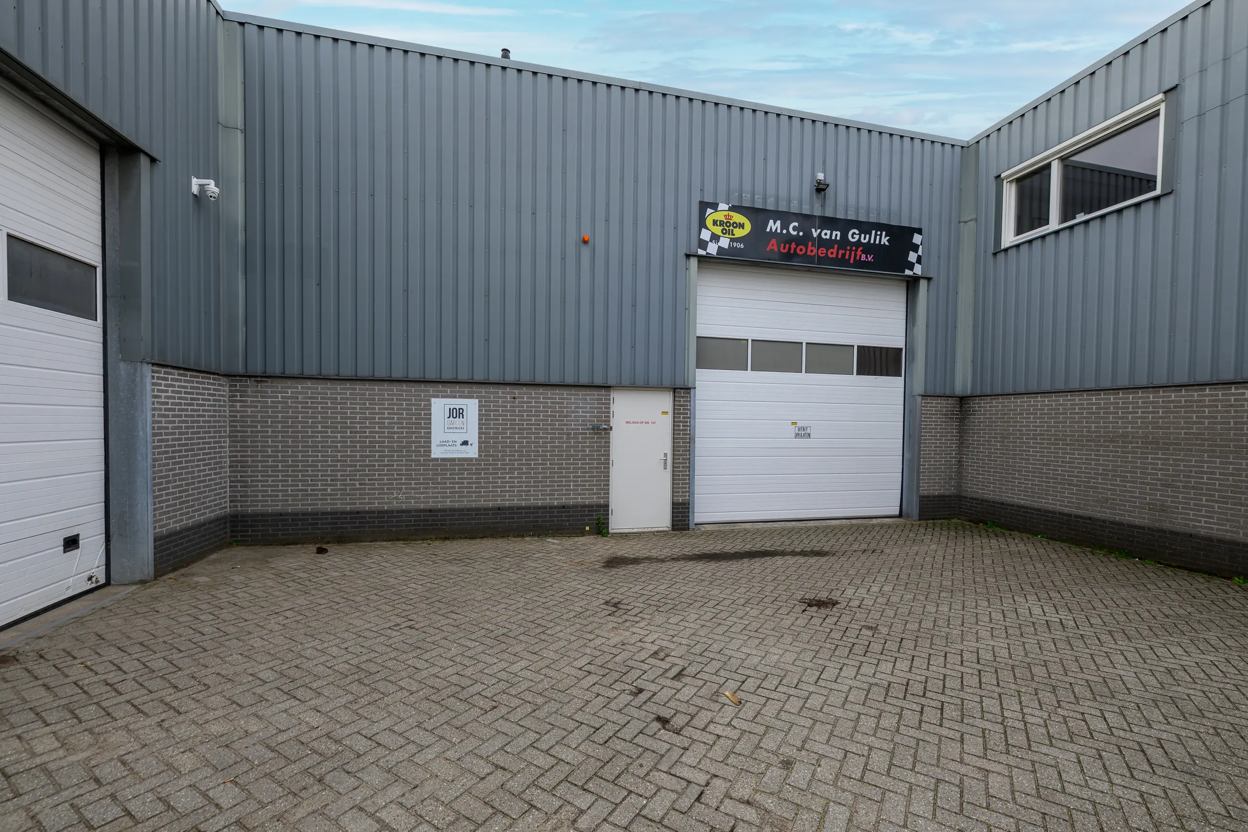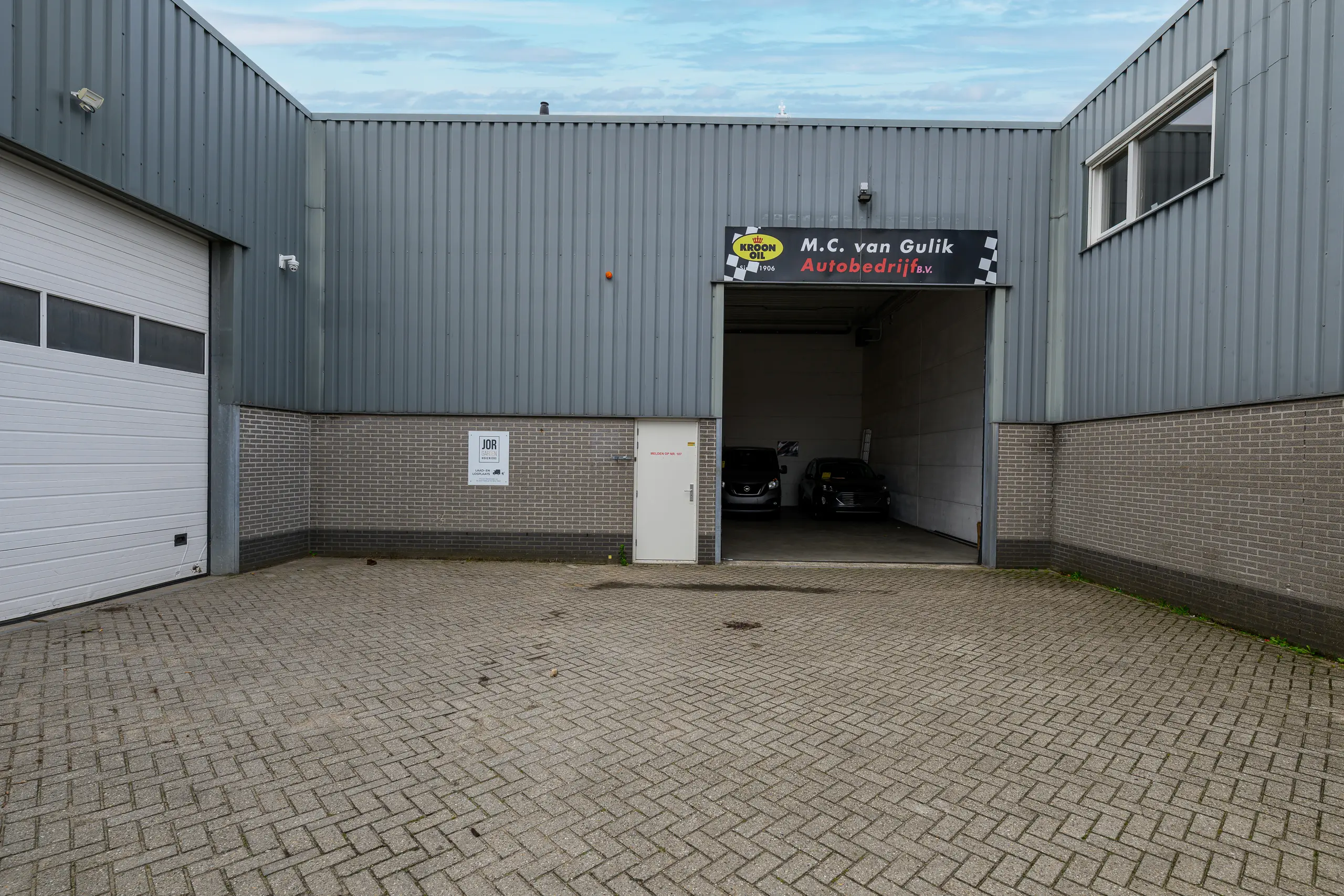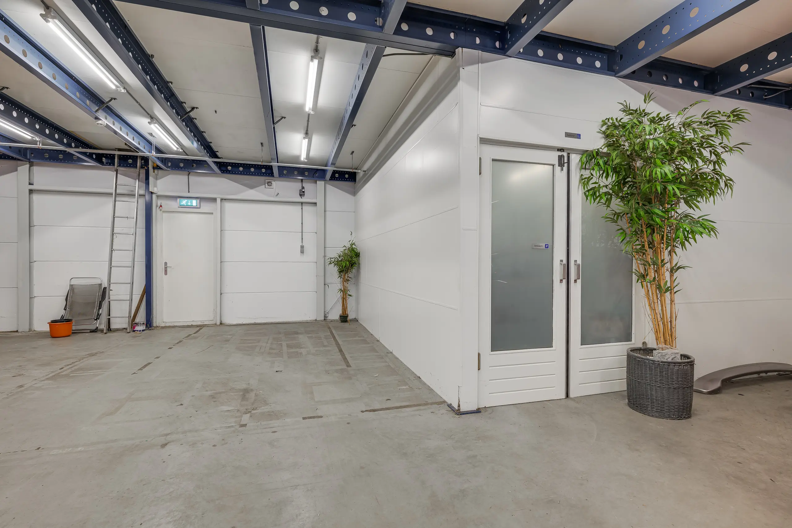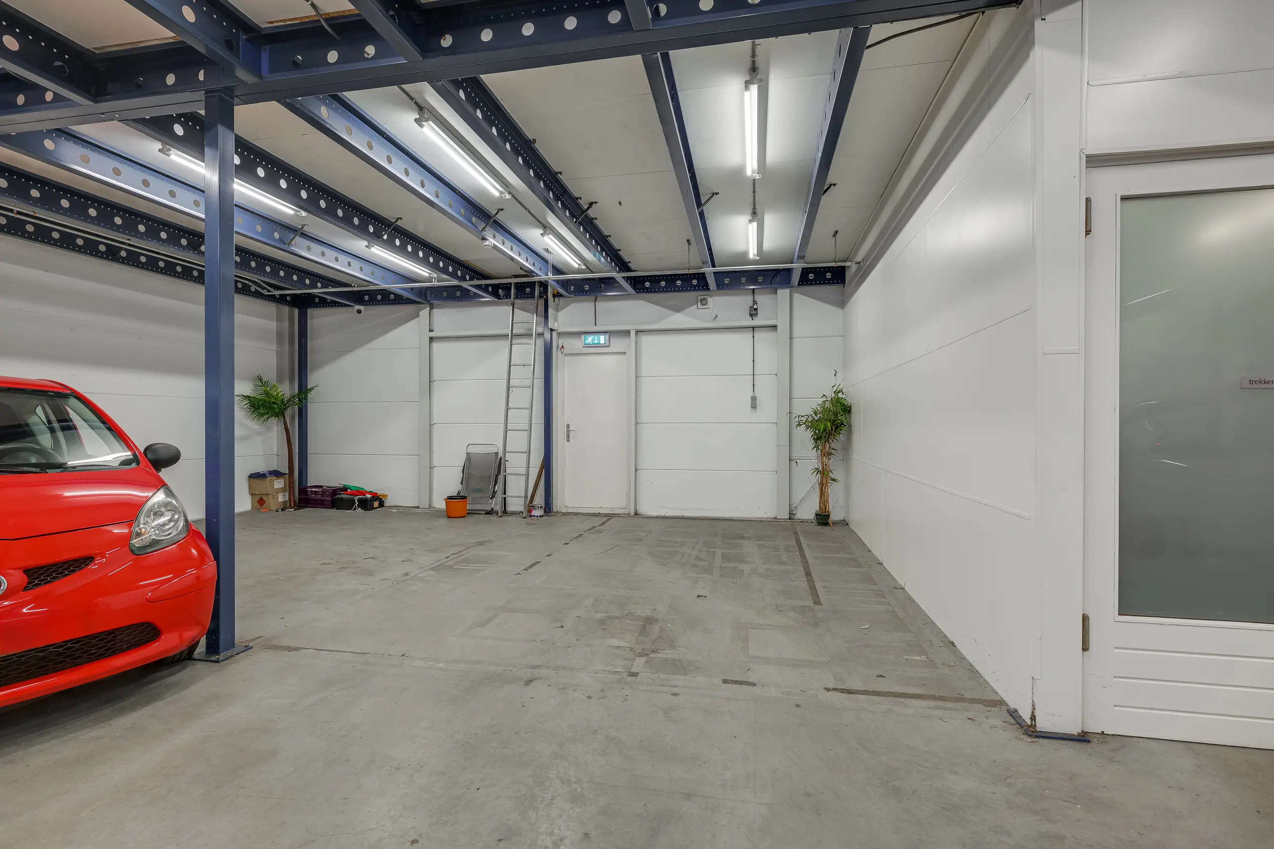 - Elektrische overheaddeur (ca. 4 breed x 4,20 hoog) met naastgelegen aparte entree middels houten loopdeur;