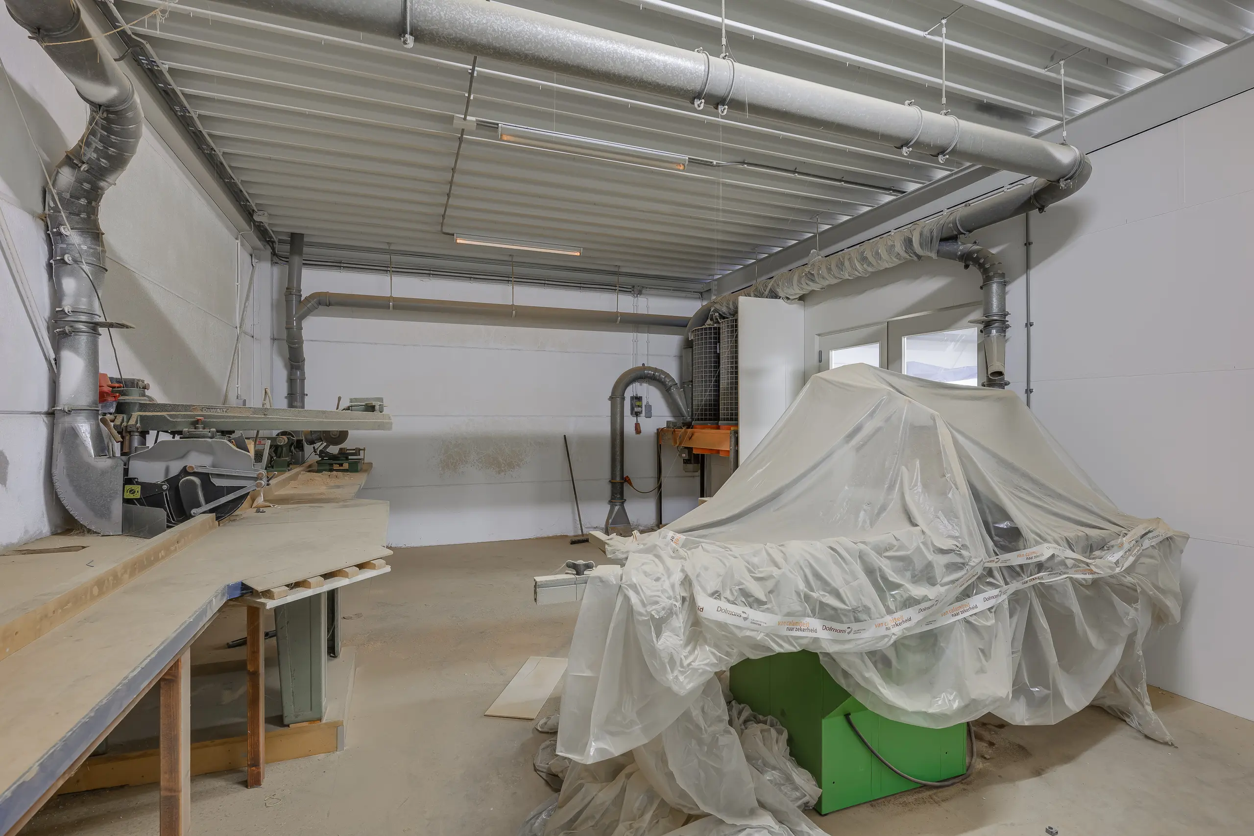 - Betonnen vloer met staal constructie, sandwich gevelpanelen en stalen dak met bitumen gedekt;