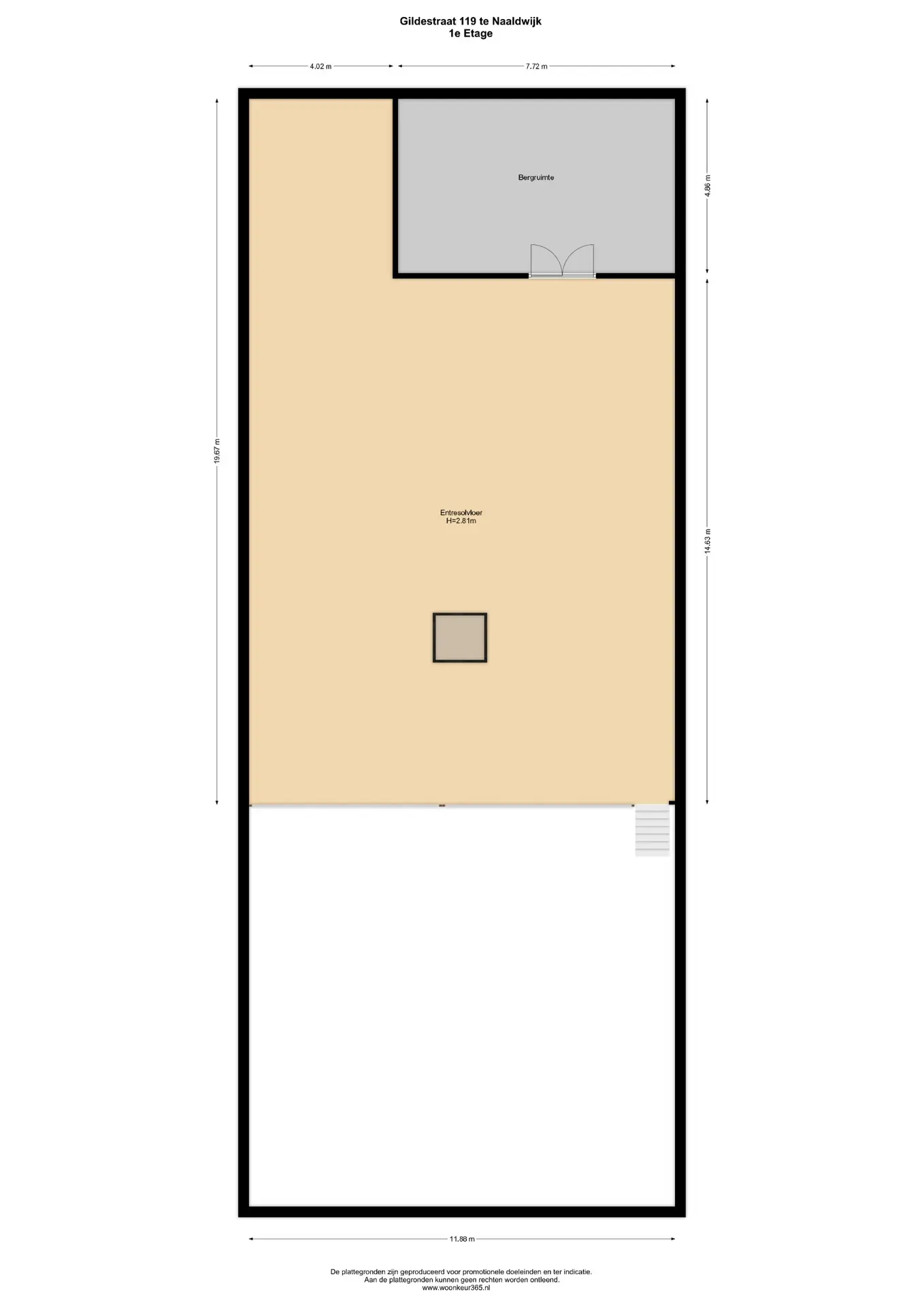 (Kantoor/bergruimte: 3,98 x 4,89 =19,462)