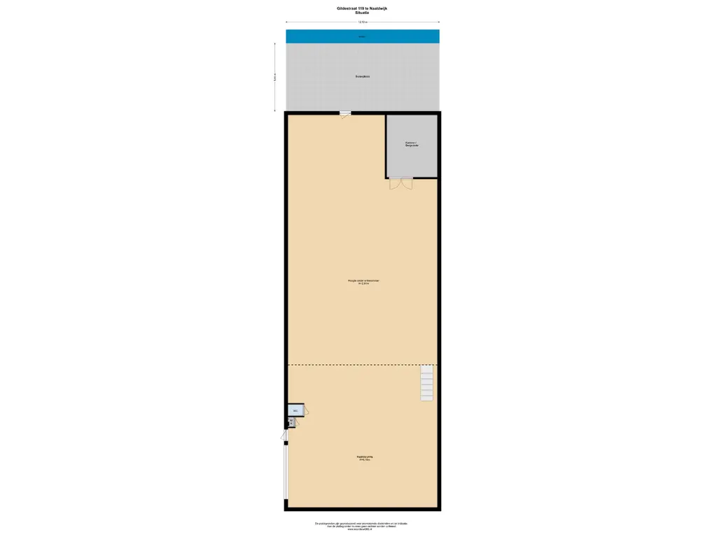 (Kantoor/bergruimte: 7,72 x 4,86 =37,52)