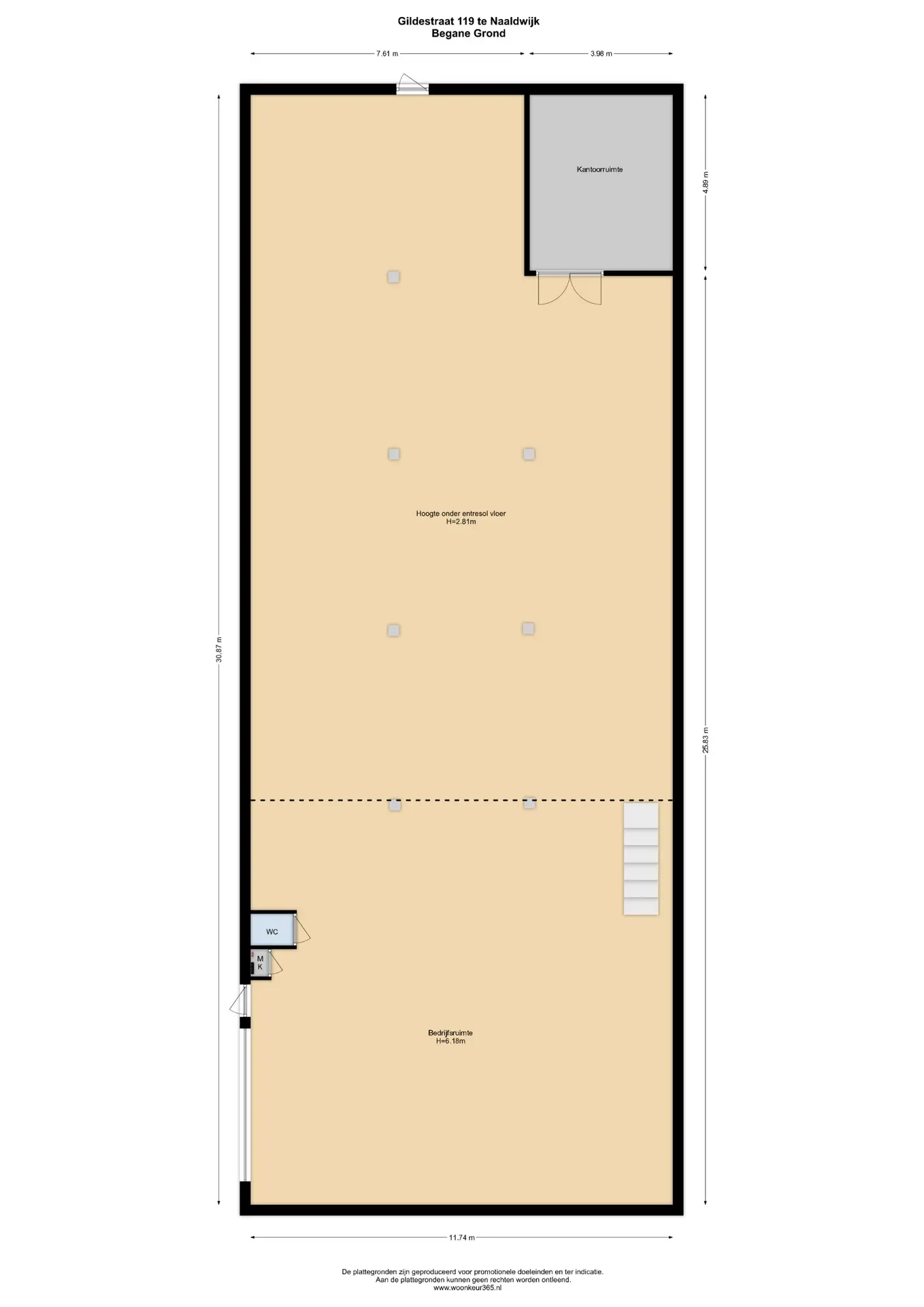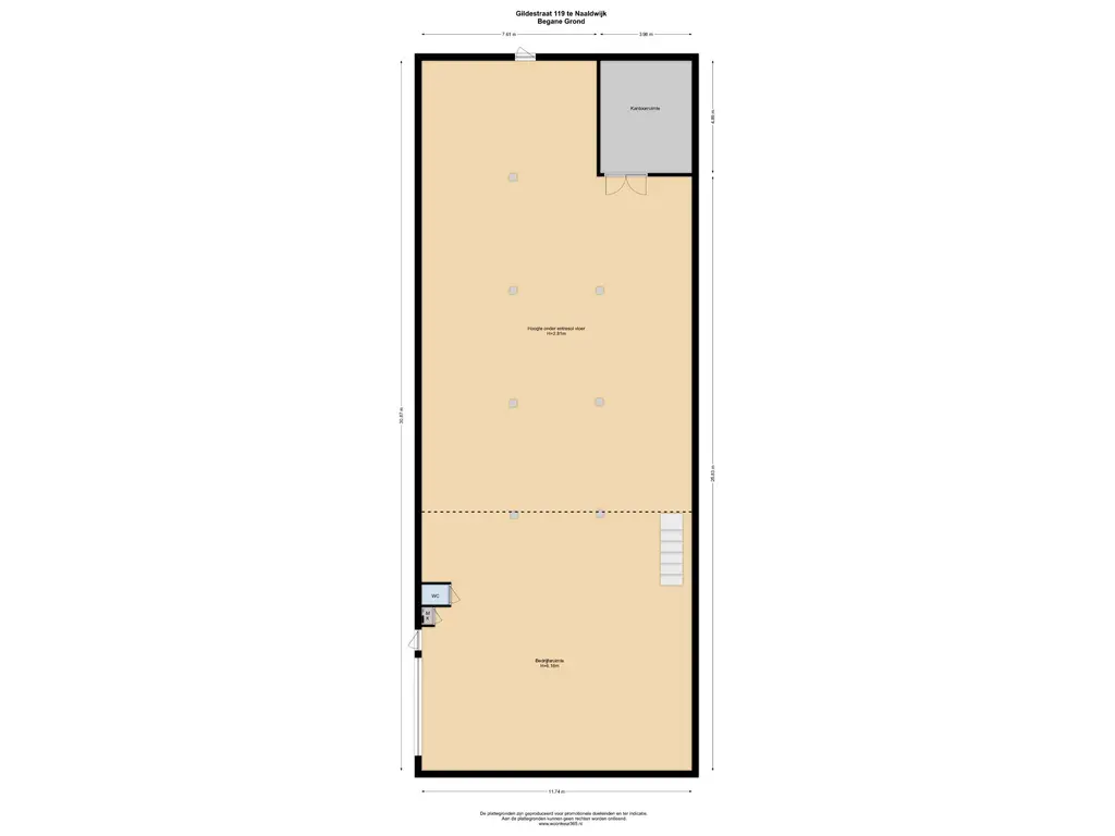 - Ca. 362 m2 op de begane grond (ca. 11,74 x 30,87);