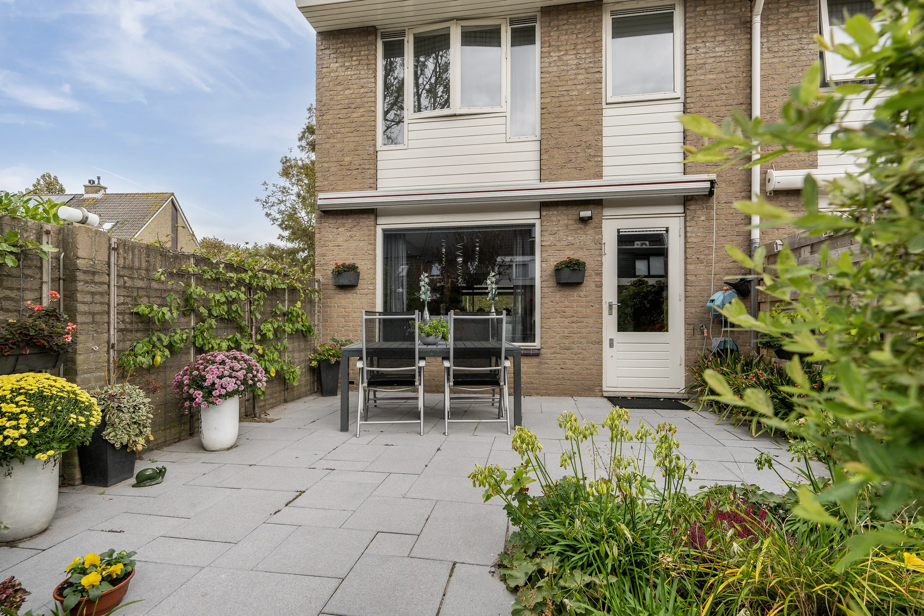 Via de loopdeur aan de achterzijde is de tuin gemakkelijk te bereiken. De achtertuin is een fijne plek om te ontspannen en biedt een goede balans tussen groen en bestrating. Met een lengte van circa 7,5 meter en een breedte van ongeveer 5,5 meter is er voldoende ruimte voor zowel een zitgedeelte als beplanting. De tuin beschikt over een zonnescherm en een buitenkraan, en dankzij de gunstige ligging op het westen kunt u er op zonnige dagen heerlijk buiten vertoeven.