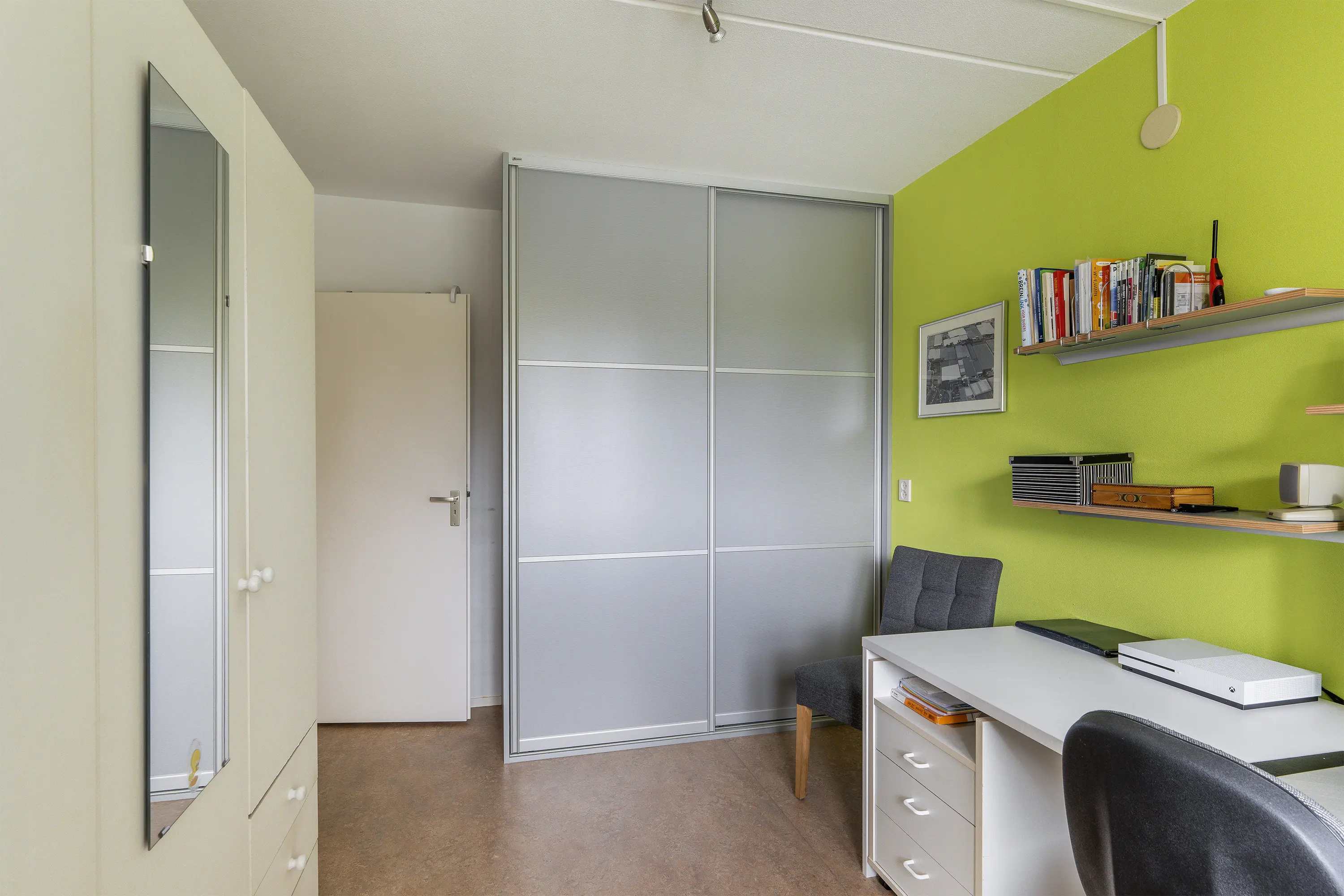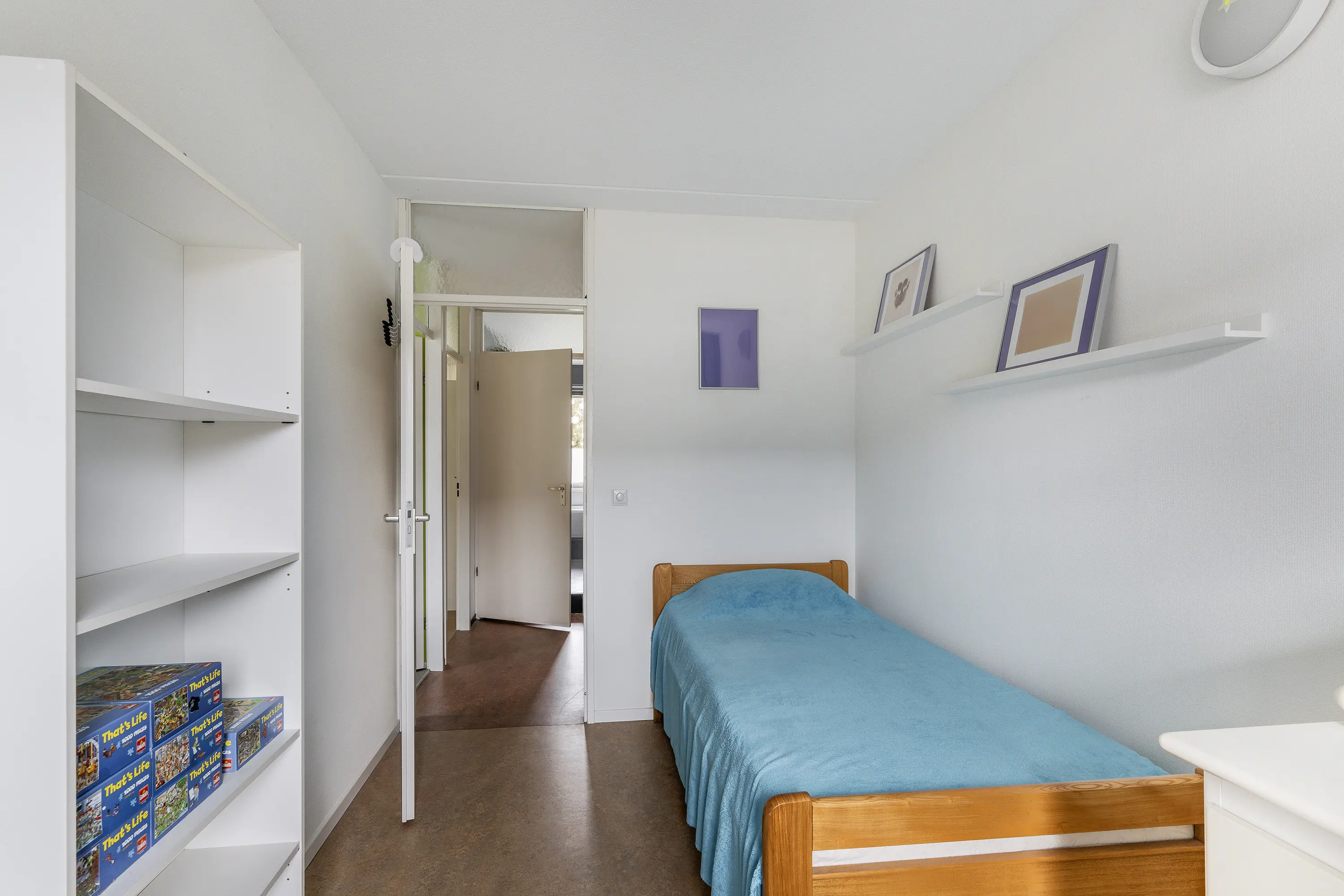 De eerste verdieping biedt drie goed bemeten slaapkamers en een complete badkamer. De hoofdslaapkamer ligt aan de achterzijde van de woning en is voorzien van tapijt, een vaste kast en een extra zijraam dat zorgt voor extra lichtinval. Aan de voorzijde bevindt zich een tweede slaapkamer met een prachtig vrij uitzicht over de Vaart. De derde slaapkamer ligt aan de achterzijde en heeft eveneens een prettig formaat en te openen raam. Beide kamers zijn voorzien van een vinylvloer en bieden volop mogelijkheden als kinderkamer, werkkamer of logeerkamer.