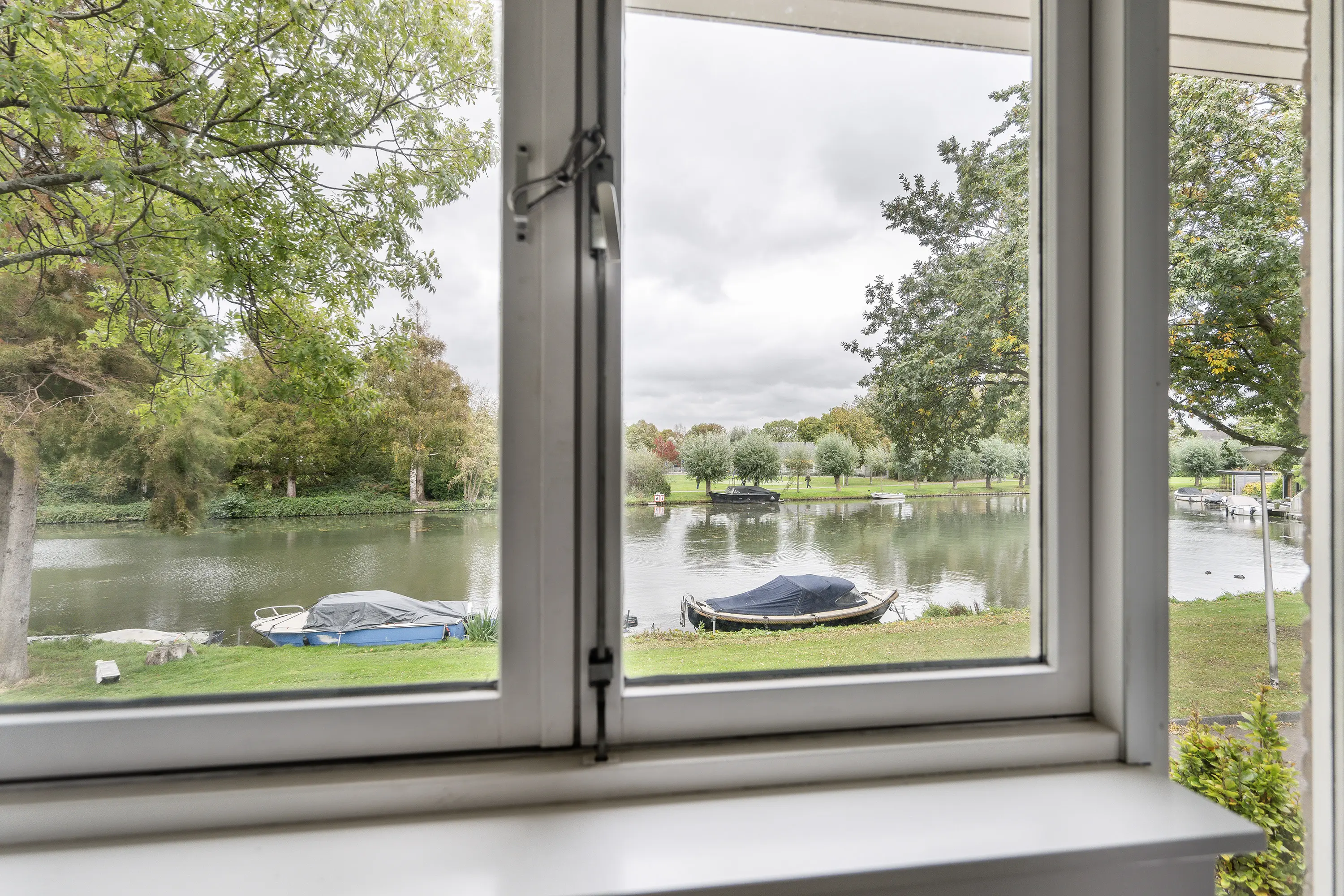 Het zitgedeelte bevindt zich aan de achterzijde van de woning en biedt een aangename, lichte leefruimte. Grote ramen aan de achterzijde én aan de zijkant zorgen voor daglicht en een ruimtelijk gevoel. Aan de voorzijde van de woning bevindt zich de keuken met eettafel, van waaruit u een schitterend uitzicht hebt over de Naaldwijkse Vaart, een uitzicht dat werkelijk nooit verveelt.