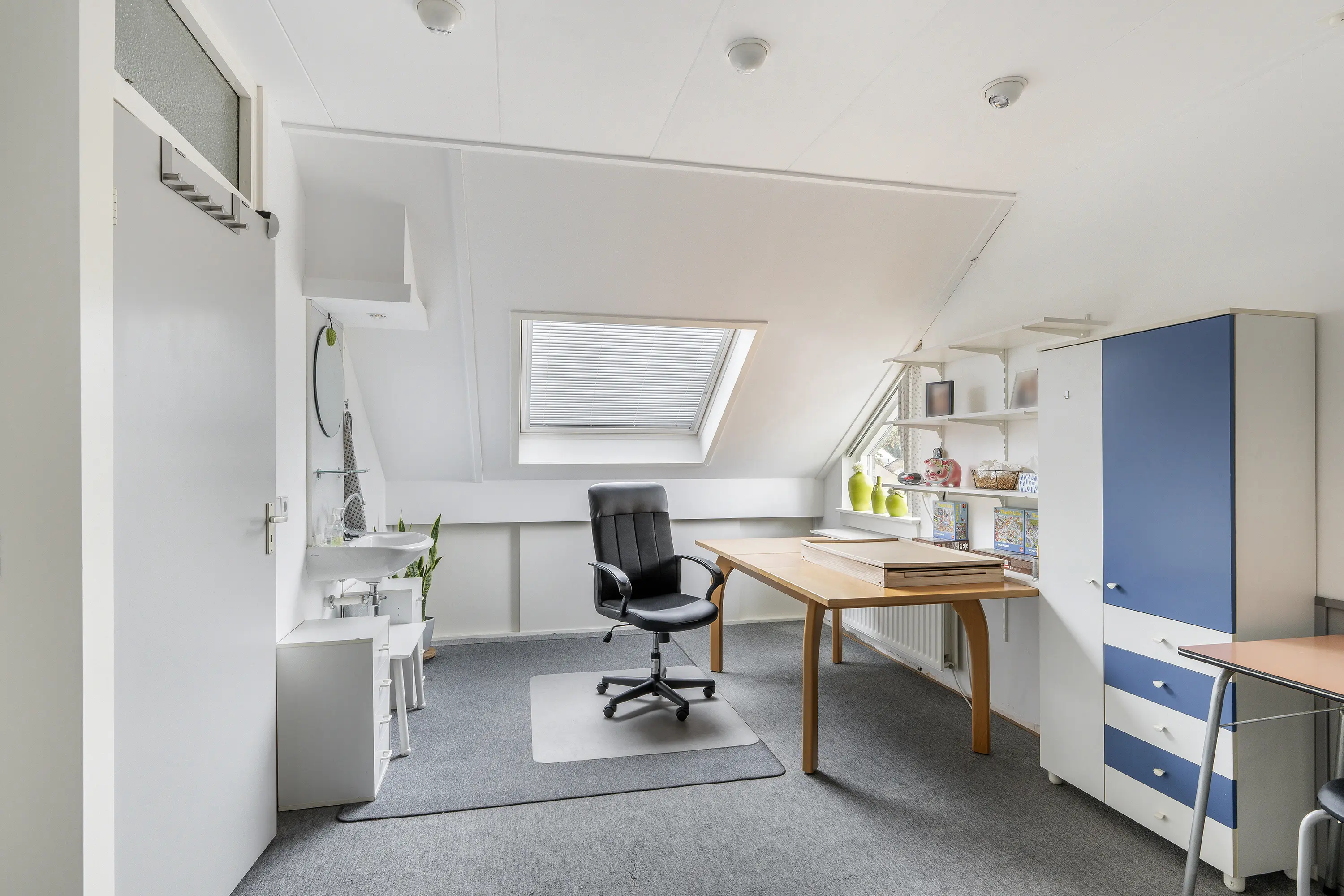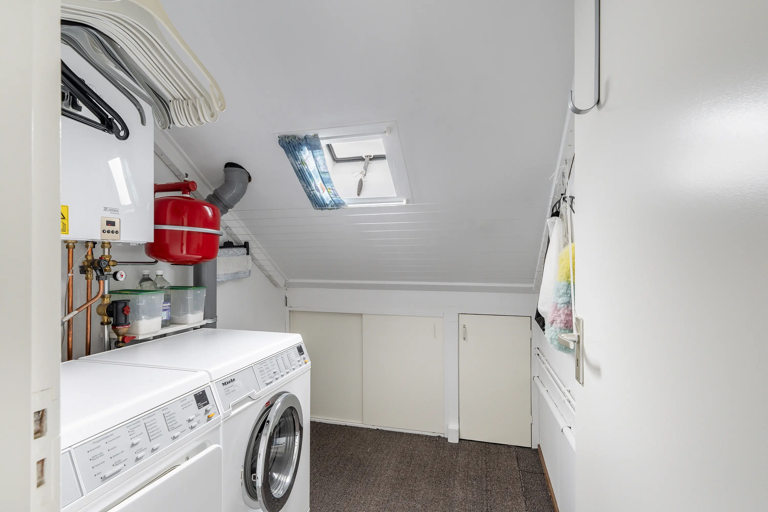Daarnaast is er een aparte kamer ingericht als wasruimte, waar de aansluitingen voor de wasmachine en droger zijn geplaatst. Ook bevindt zich hier de cv-installatie. Een klein dakraam zorgt voor extra licht en ventilatie. Deze verdieping biedt volop mogelijkheden, bijvoorbeeld als werkkamer, hobbyruimte of logeerkamer.