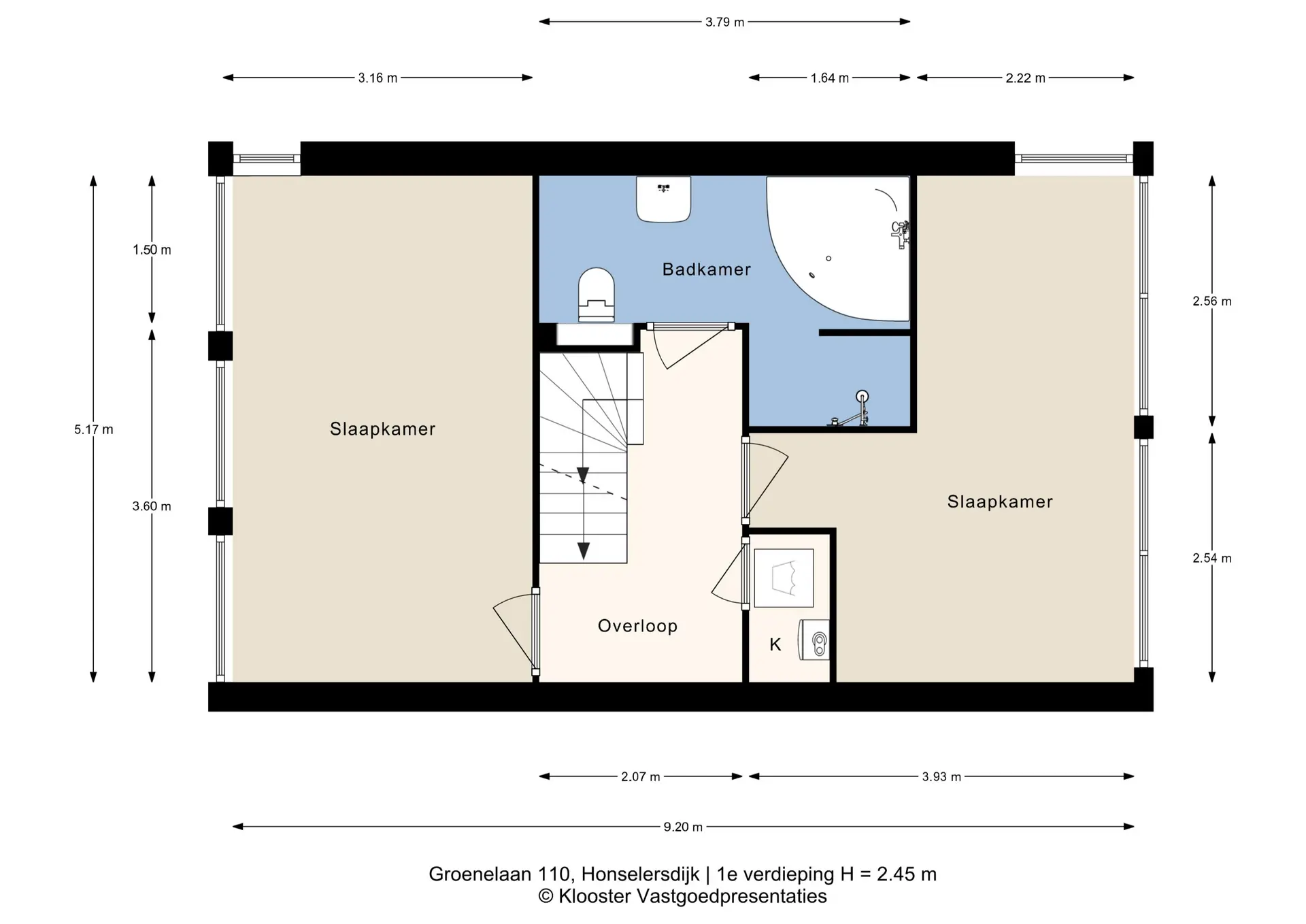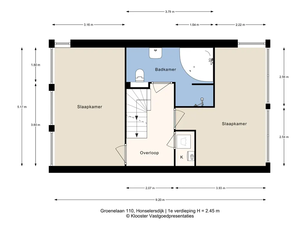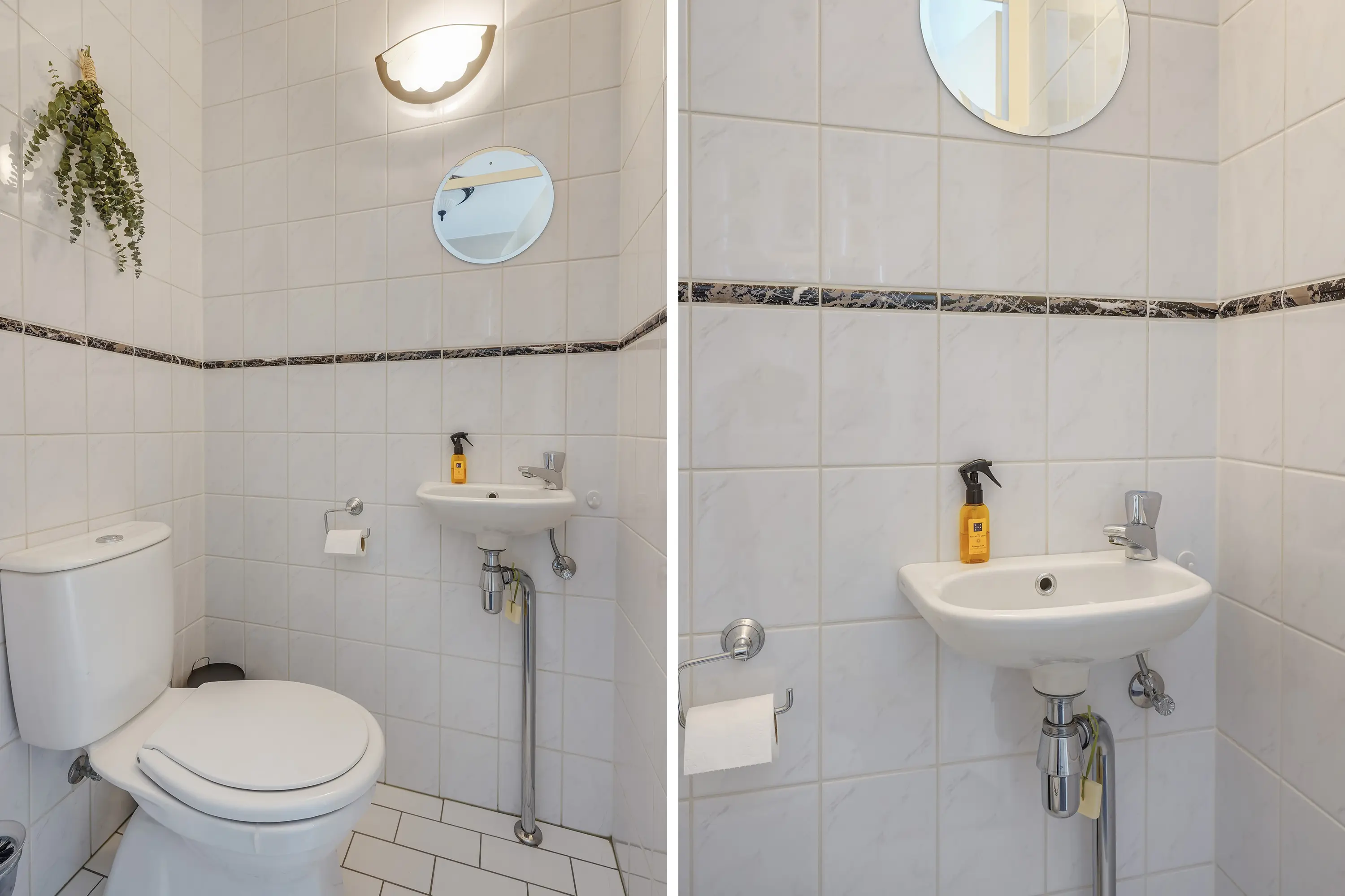 Eerste verdieping: Twee royale, woningbrede slaapkamers en een moderne badkamer geven iedereen zijn eigen plekje. De badkamer is uitgerust met hoekbad, inloopdouche, wastafelmeubel en tweede toilet.