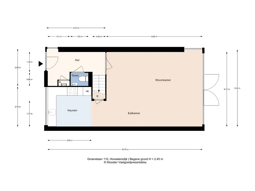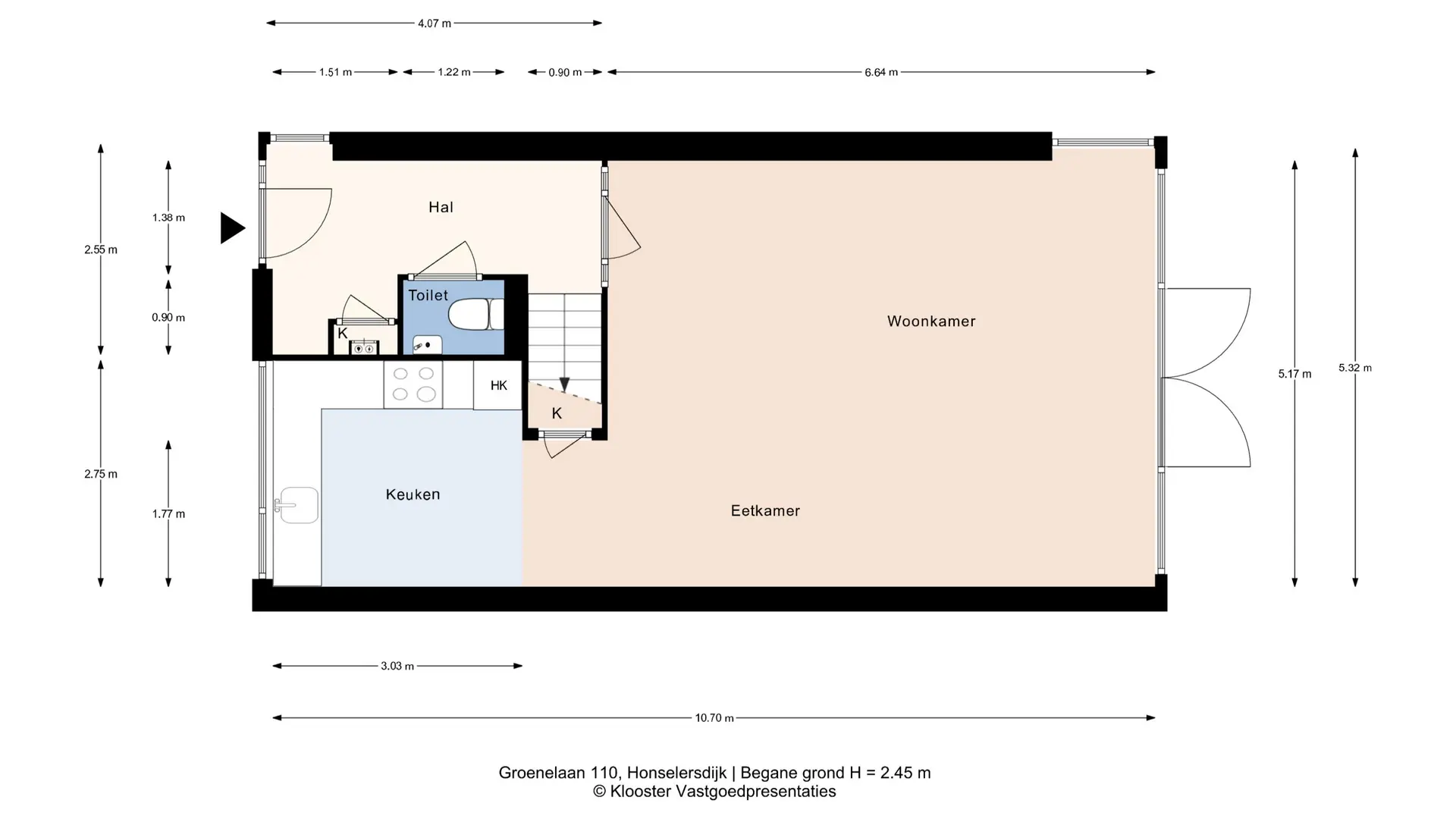 Begane grond: De uitgebouwde woonkamer biedt volop ruimte voor het hele gezin. Aan de voorzijde vindt u de ruime keuken in L-opstelling, met moderne inbouwapparatuur die door de jaren netjes is vernieuwd.