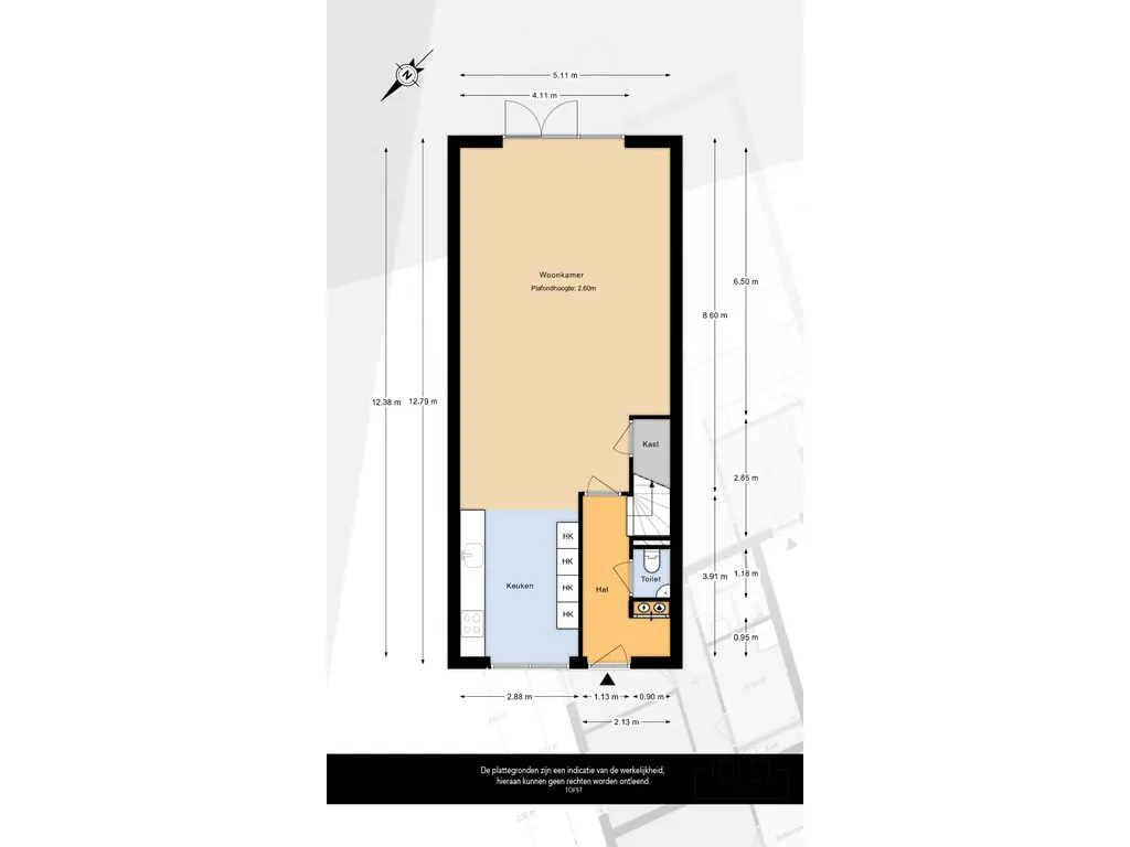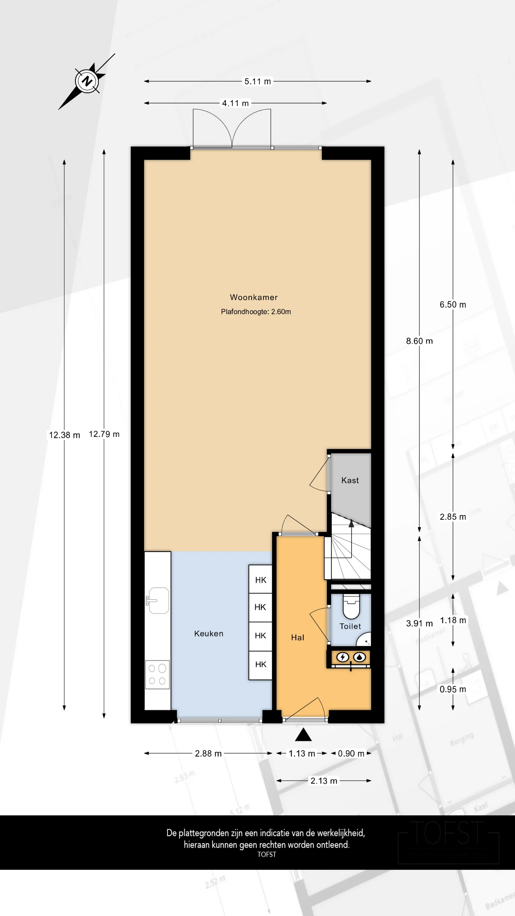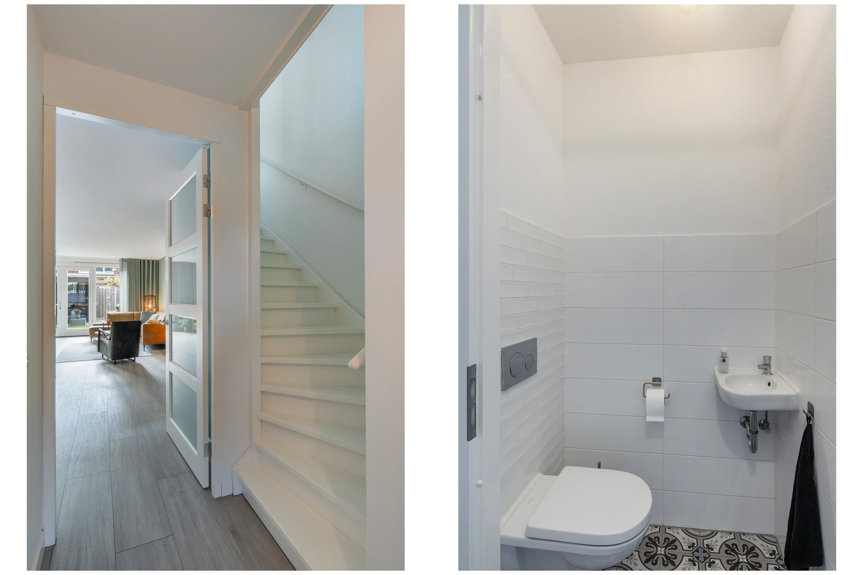 Via de entree komt u binnen bij de meterkast, het toilet met fontein en de trap naar de eerste verdieping.