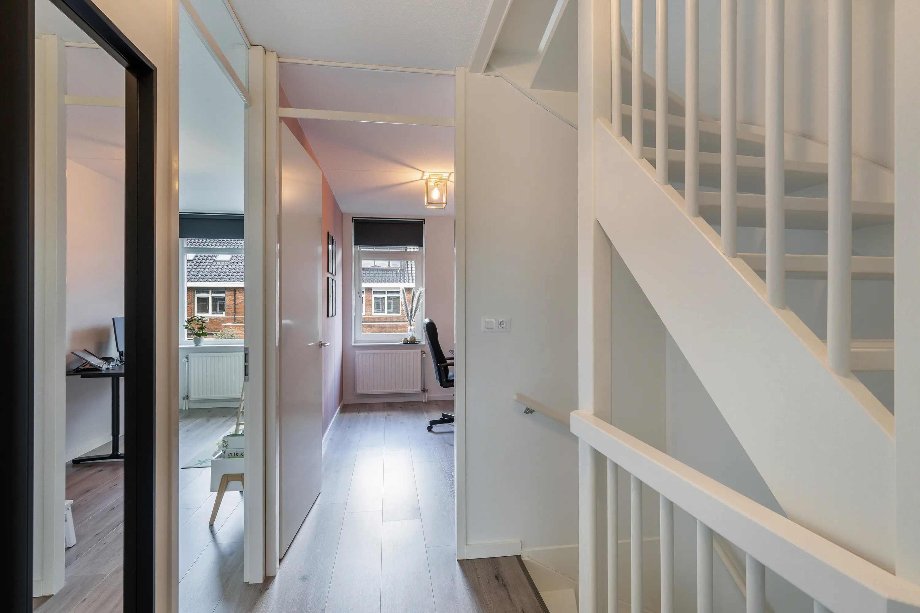 Zowel de de eerste als tweede verdieping zijn verzorgd afgewerkt en beide voorzien van eenzelfde laminaatvloer.