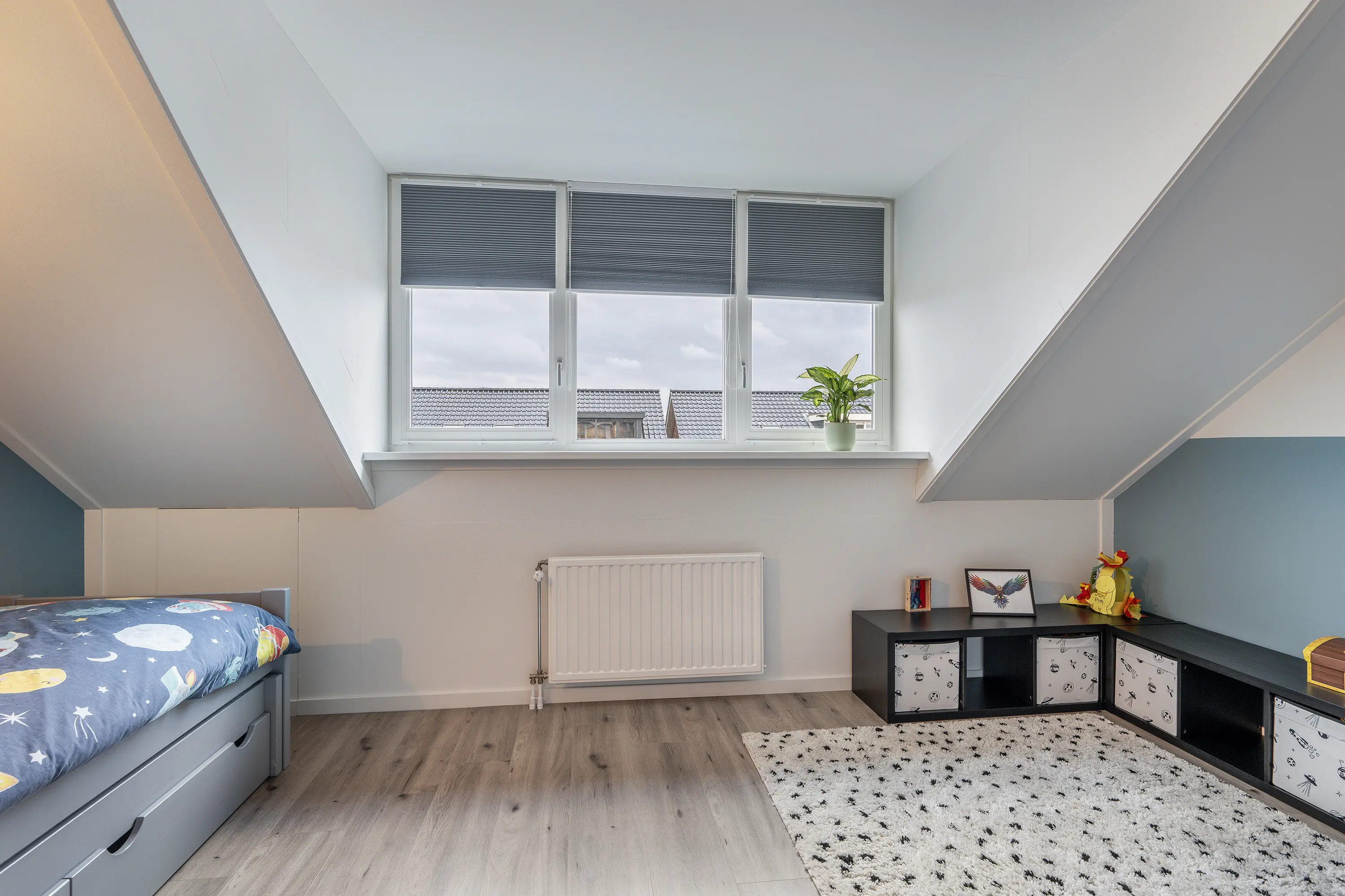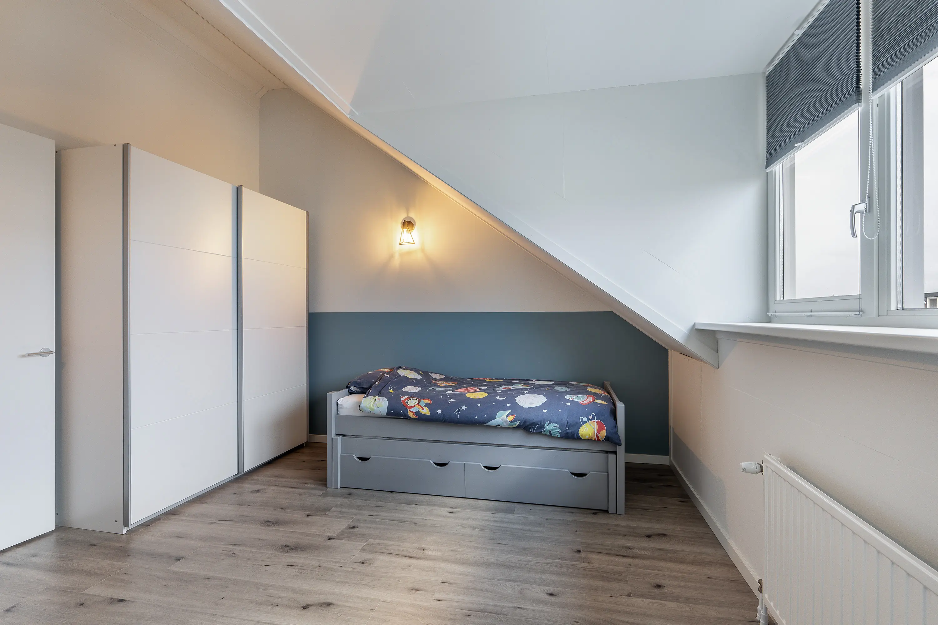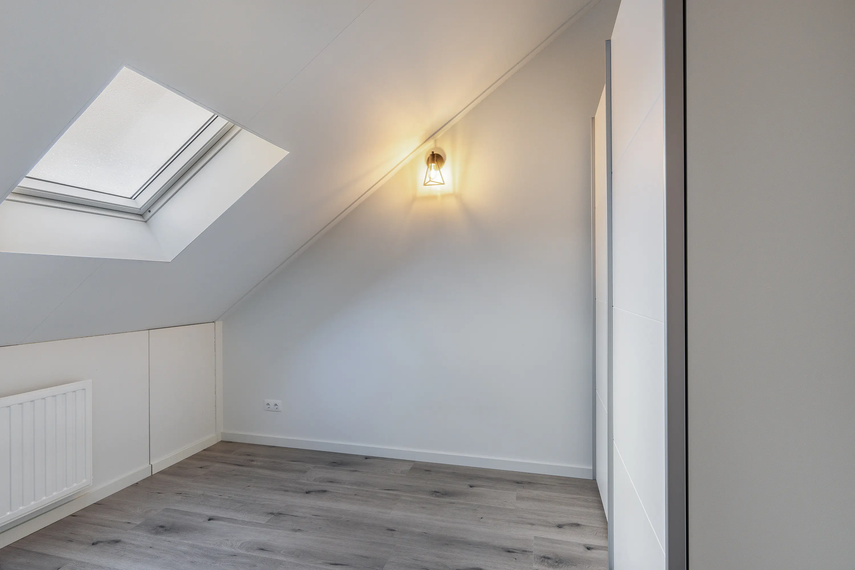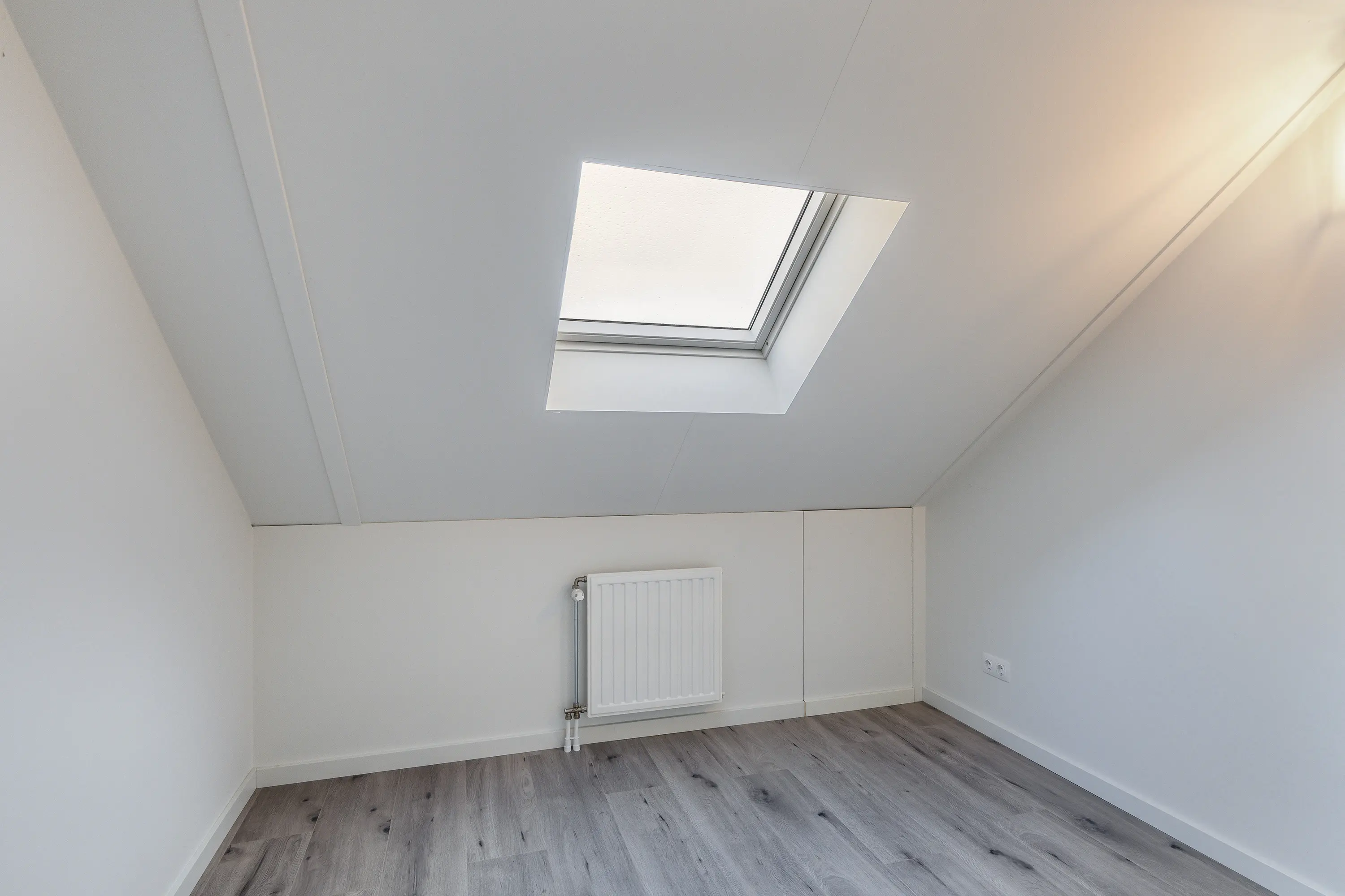 De slaapkamer aan de achterzijde is, door de plaatsing van een dakkapel, zeer royaal te noemen. De kamer aan de voorzijde heeft een dakraam en kan flexibel worden gebruikt, bijvoorbeeld als werkruimte.