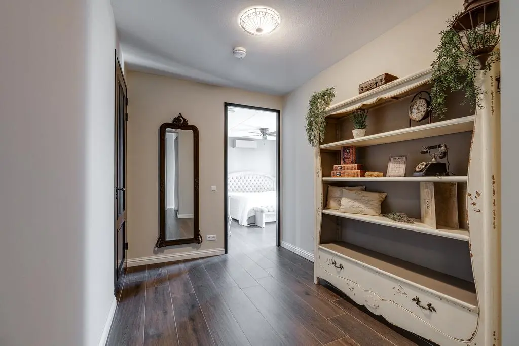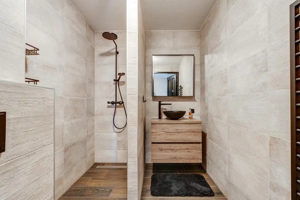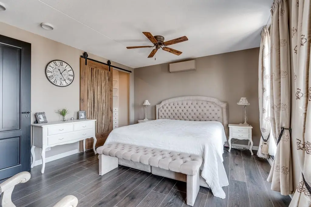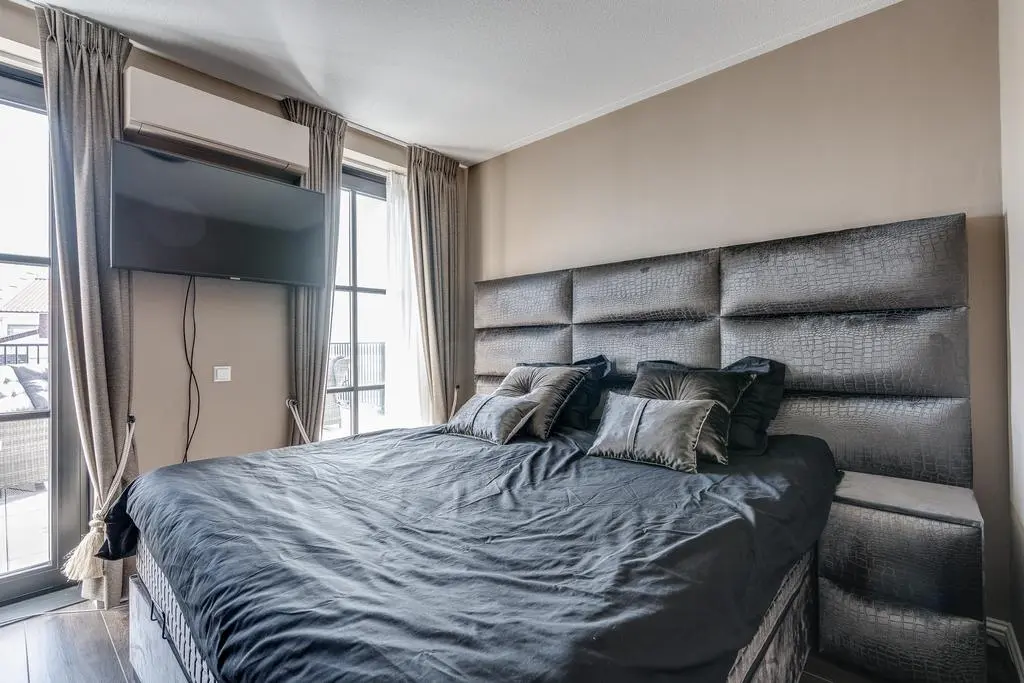De hoofdslaapkamer is een oase van rust, voorzien van een ruime inloopkast en een luxe badkamer ensuite met inloopdouche, dubbel wastafelmeubel en wandcloset. De tweede slaapkamer beschikt over een vaste kastenwand en een comfortabel lits-jumeaux met bijpassende nachtkastjes.