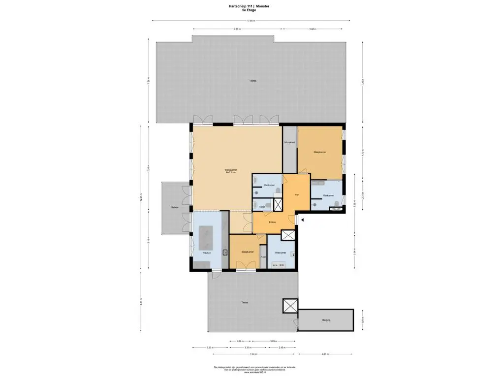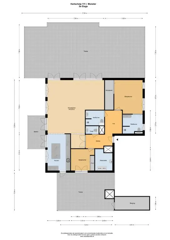 - Drie buitenruimtes: twee zonneterrassen en een balkon (totaal ca. 180 m²);