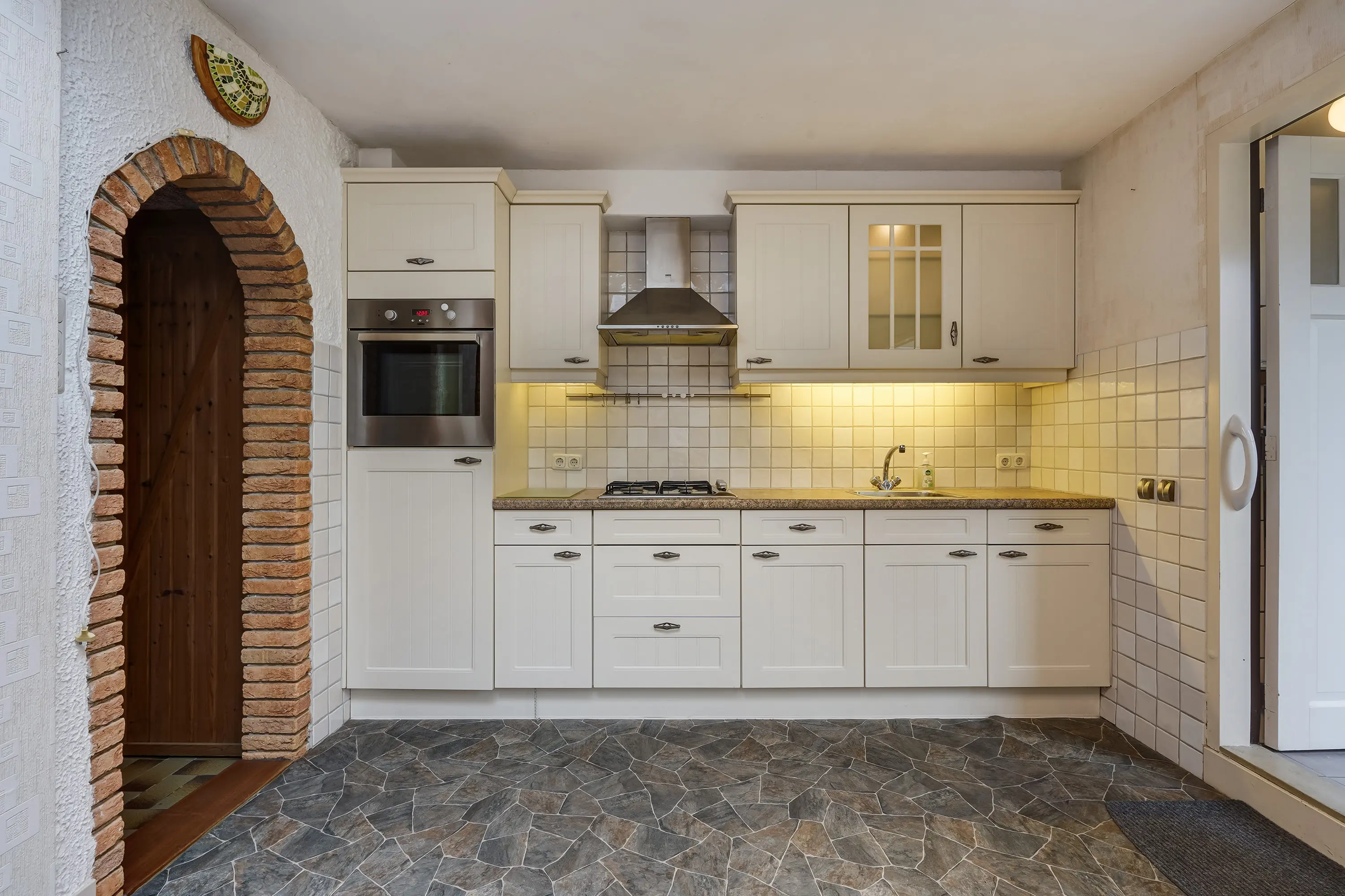 - Lichte keuken met dakkoepel en diverse apparatuur;