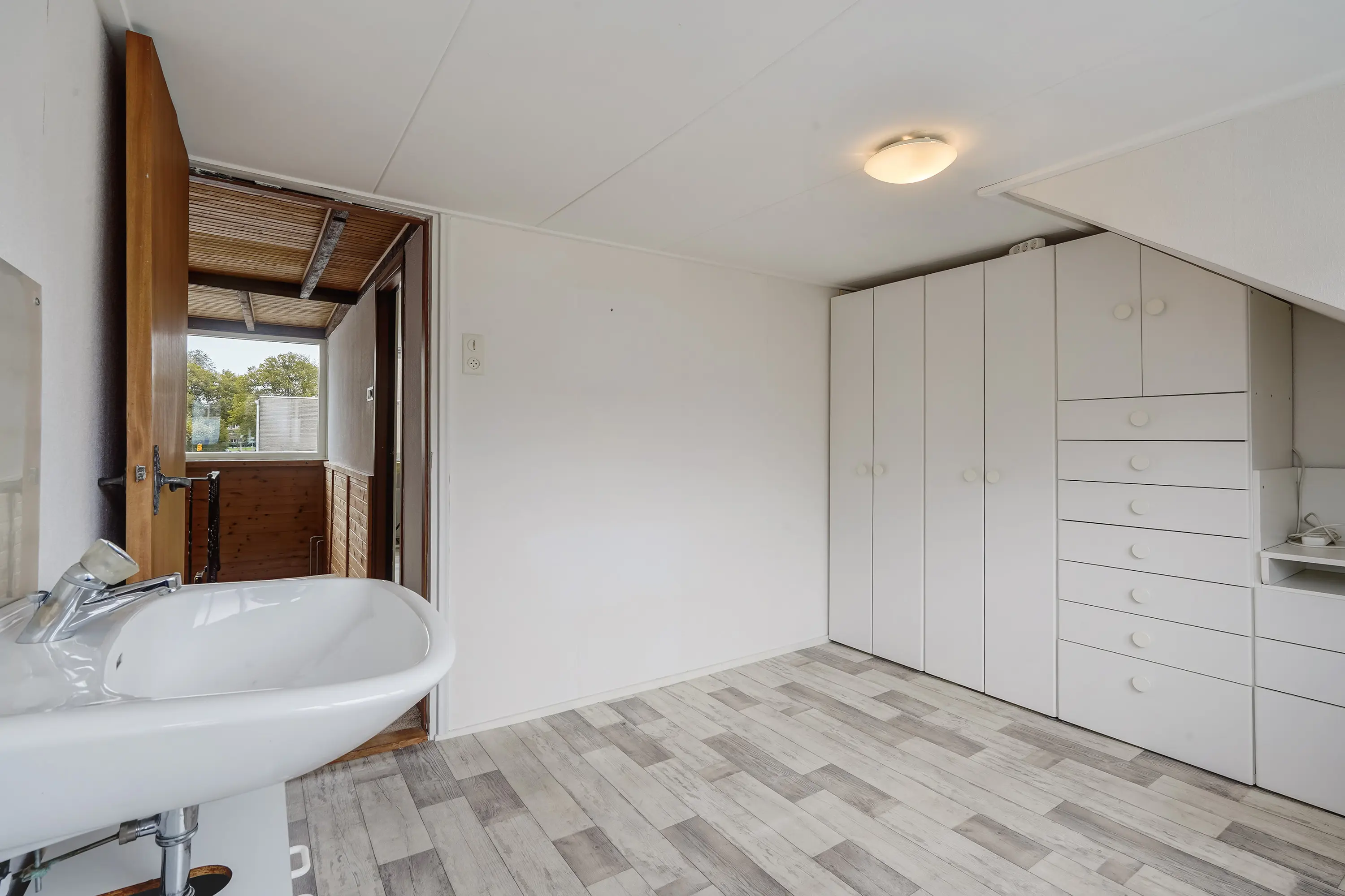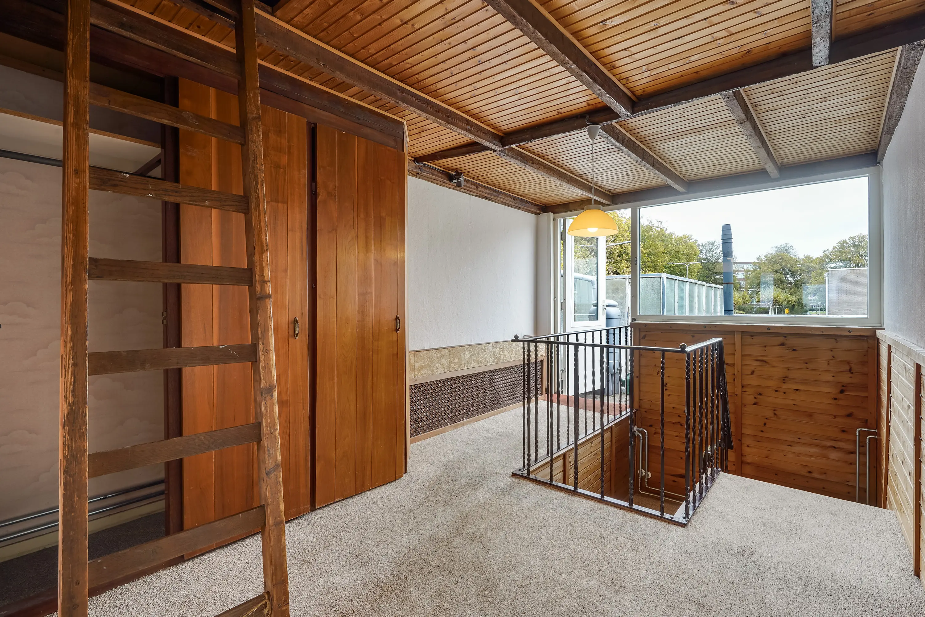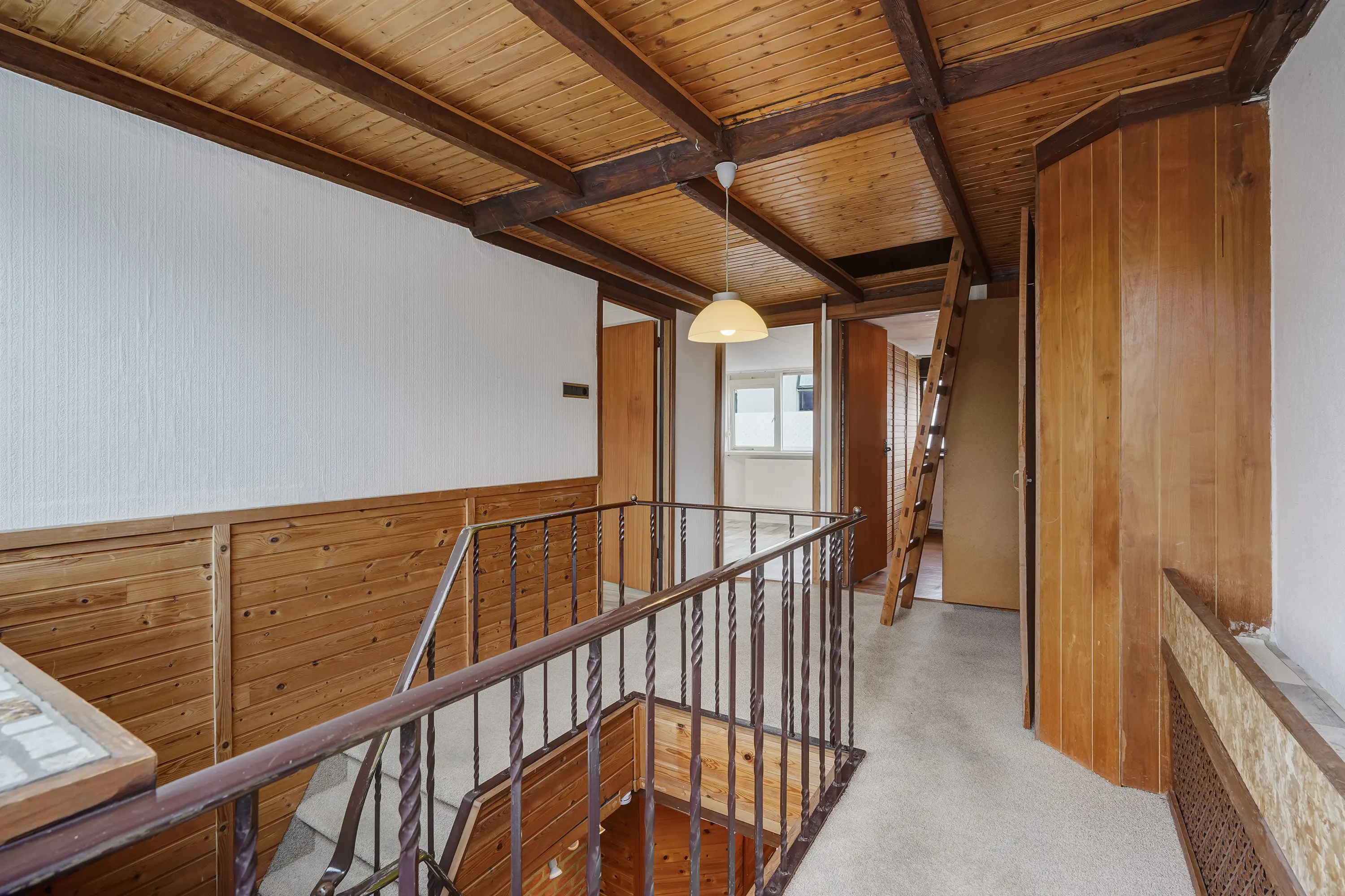 - Overloop met vaste kastenwand en toegang tot dakterras;