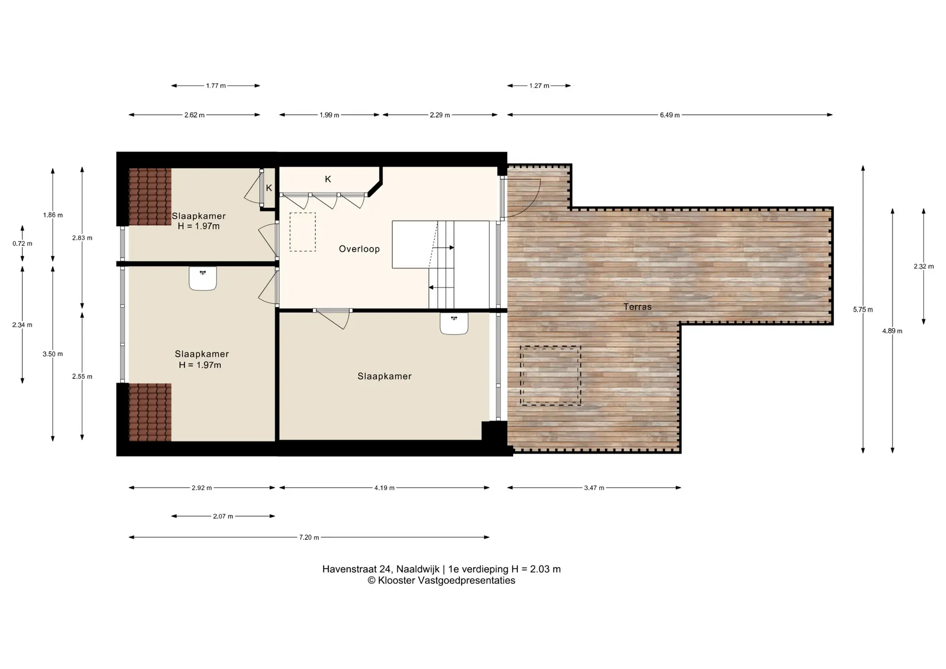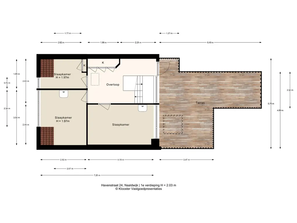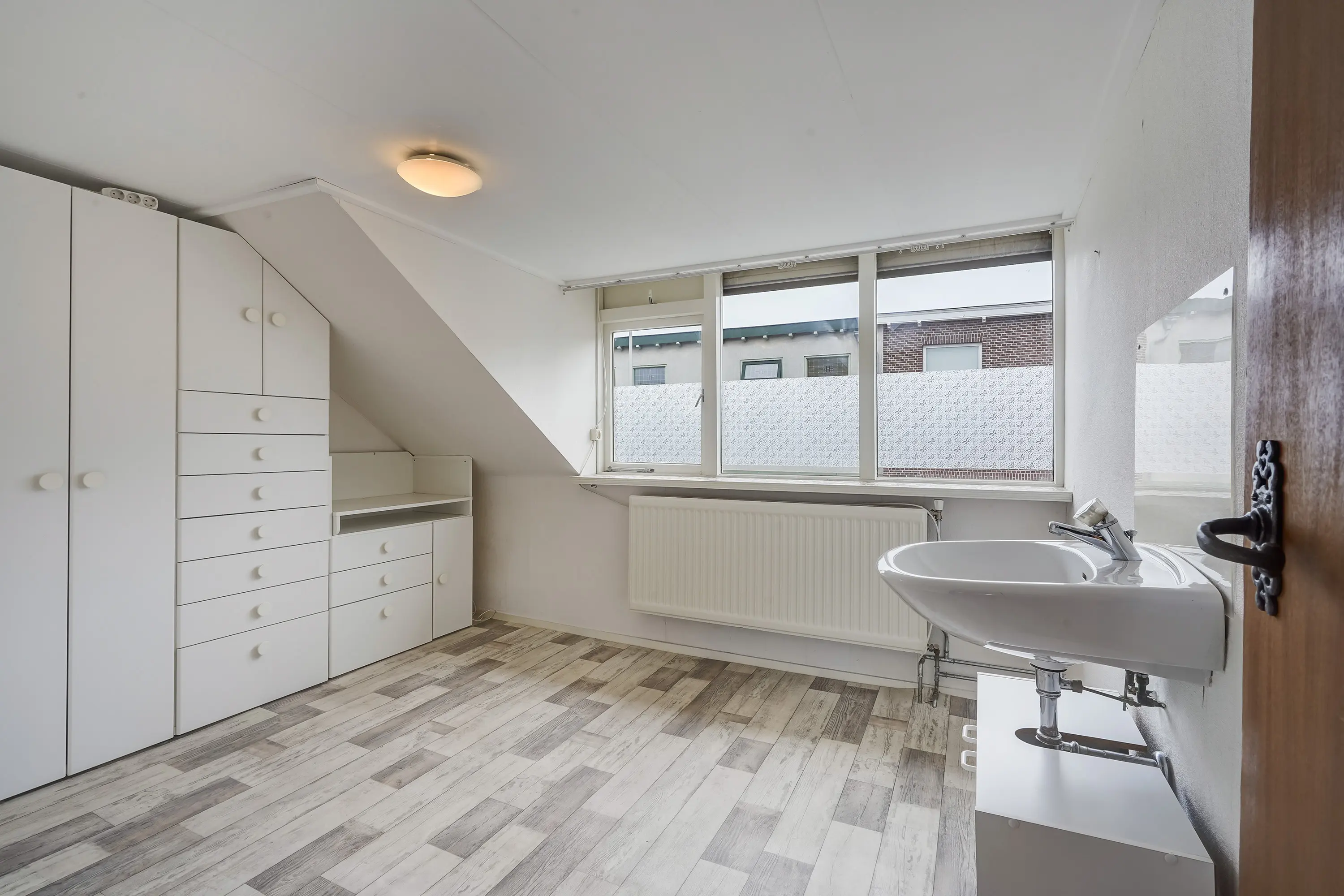 - Overloop met vaste kastenwand en toegang tot dakterras;