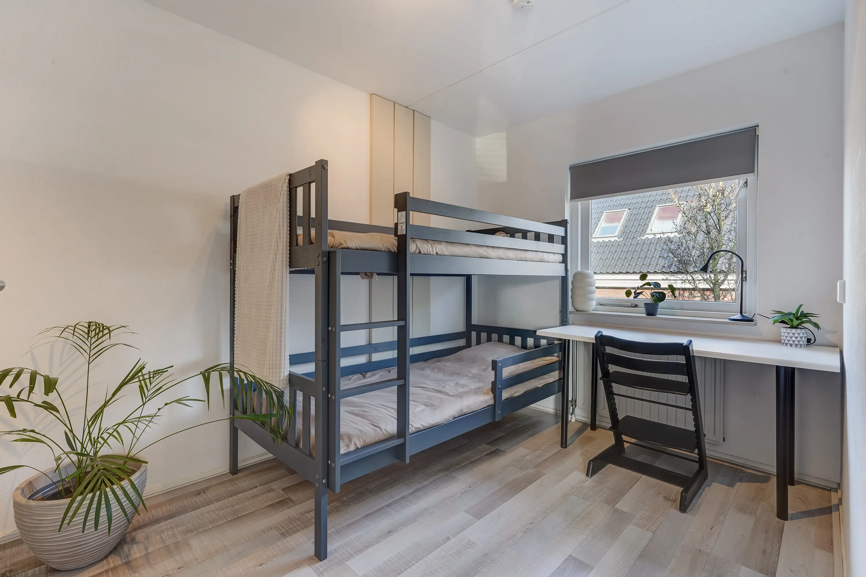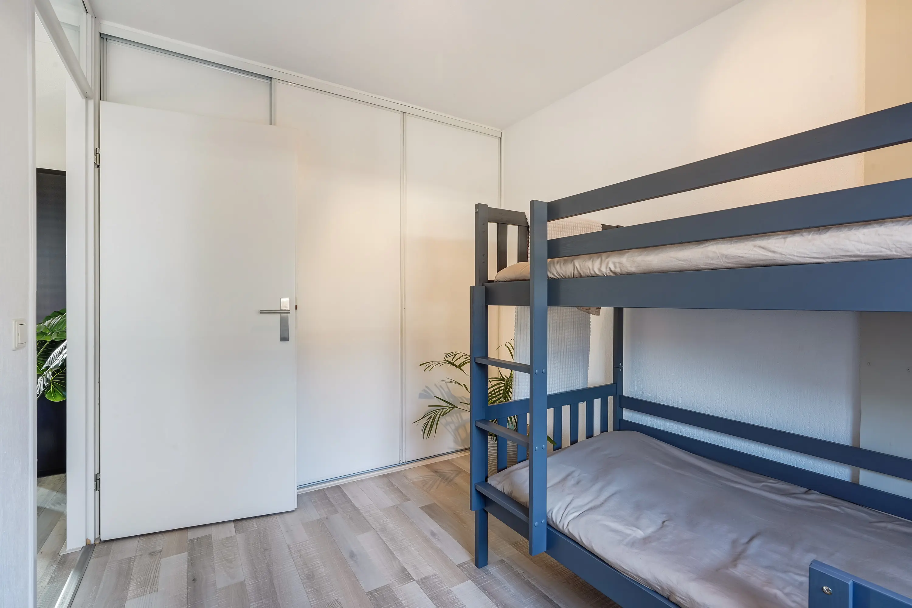 Via de woonkamer bereikt u de tweede slaapkamer. Deze kamer is veelzijdig in gebruik en kan perfect dienen als extra slaapkamer, thuiswerkplek of hobbyruimte.