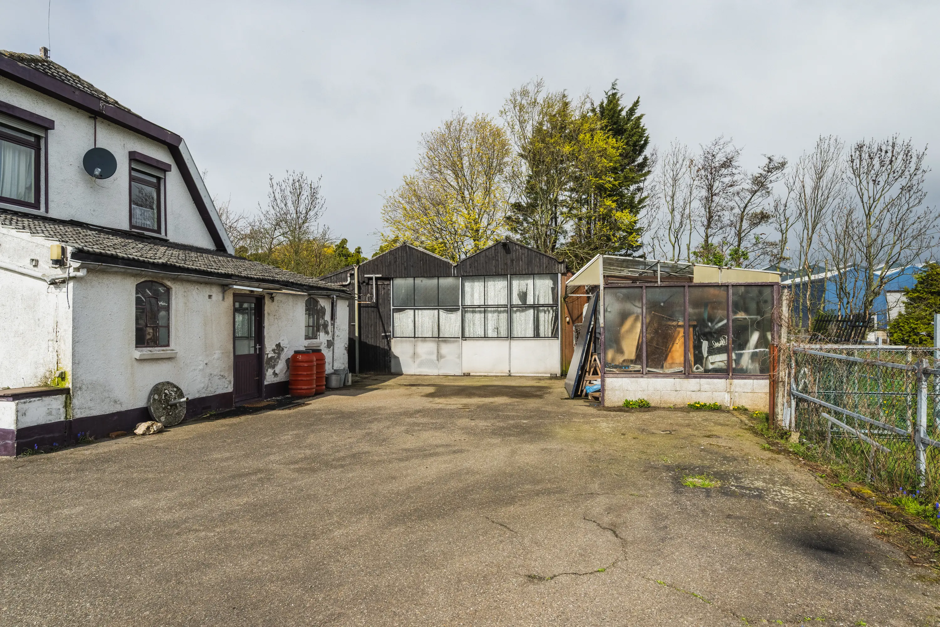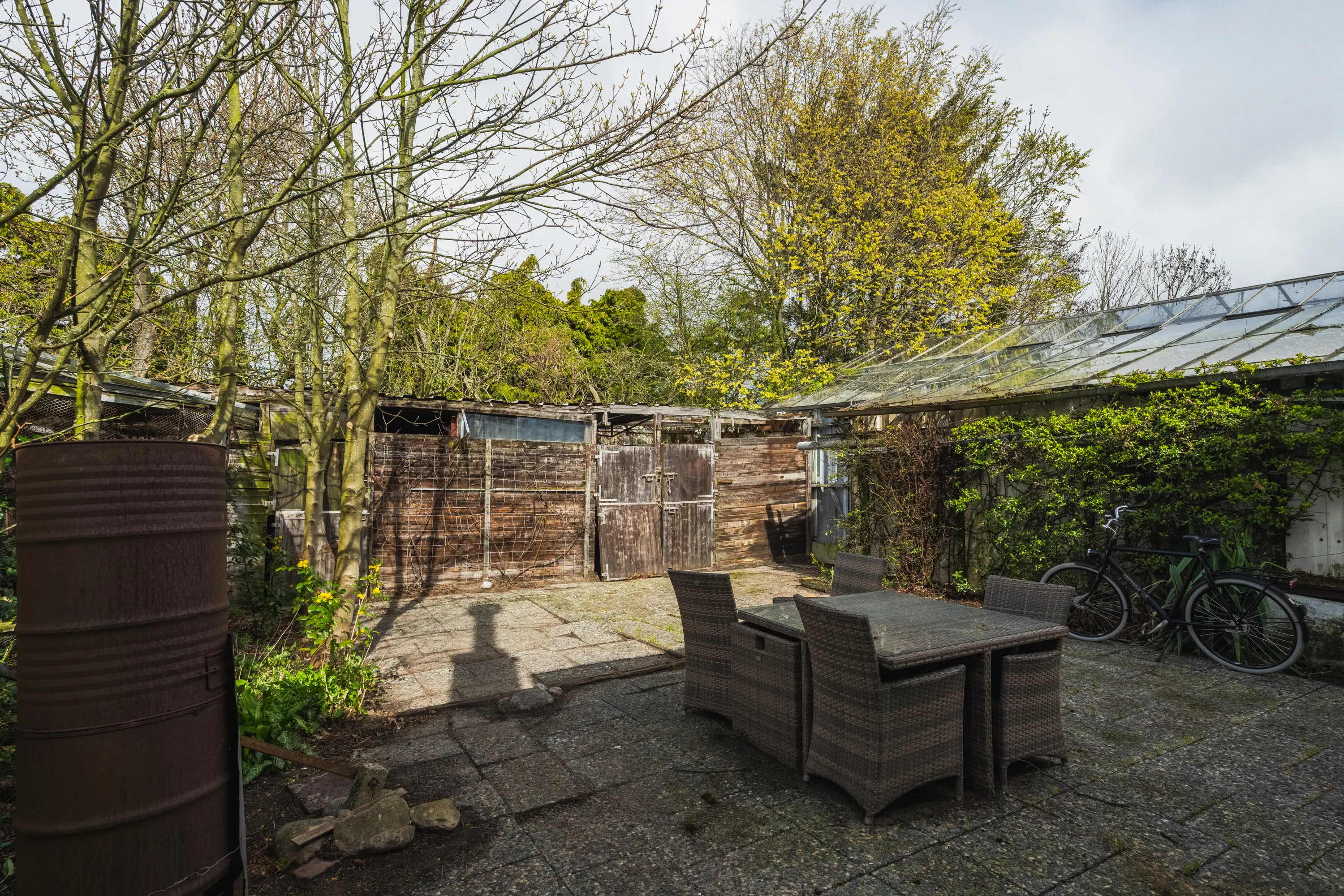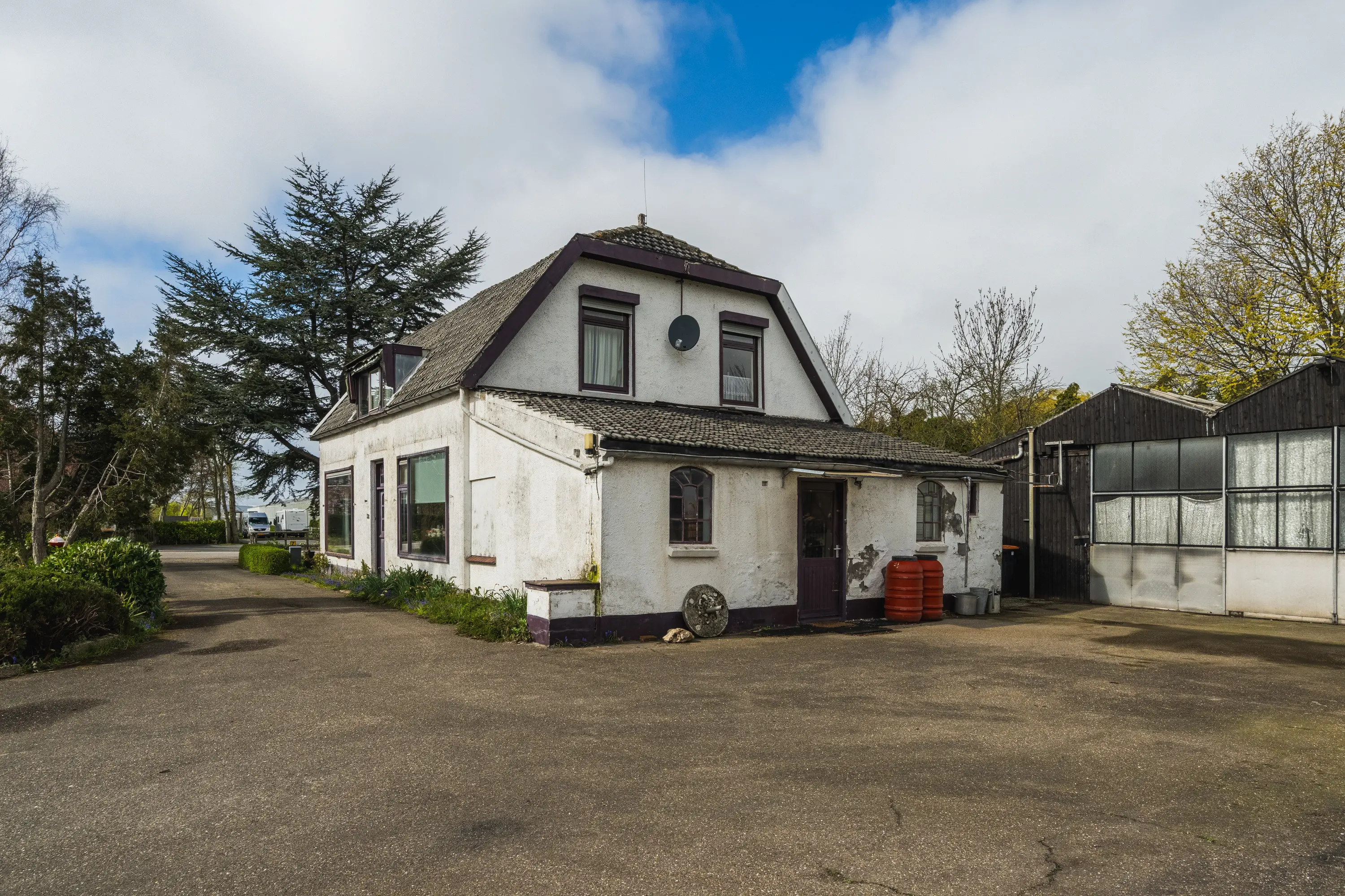 - Bestaande woning en bijgebouwen in gedateerde staat;
