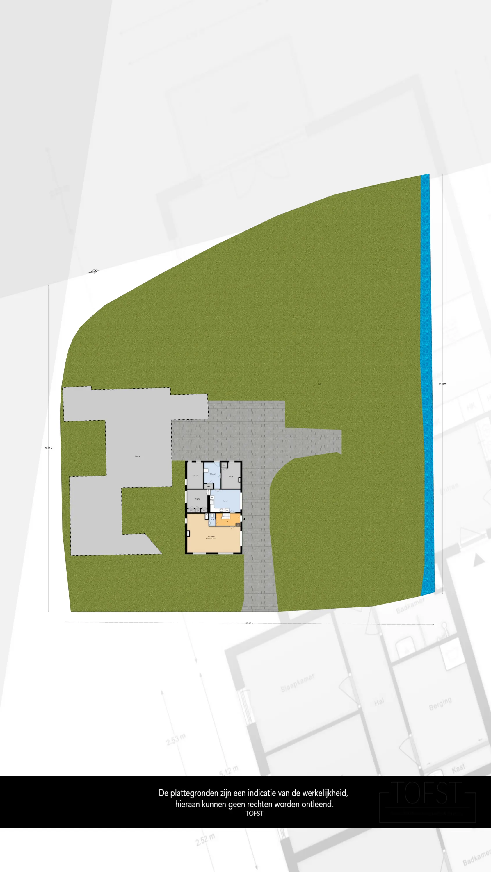 Praktisch gezien zou het perceel ook mogelijkheden kunnen bieden voor meerdere woningen. Hiervoor is echter een bestemmingswijziging noodzakelijk en het verkrijgen van woonrecht(en). In de verkoop wordt daarom uitgegaan van de huidige planologische situatie.