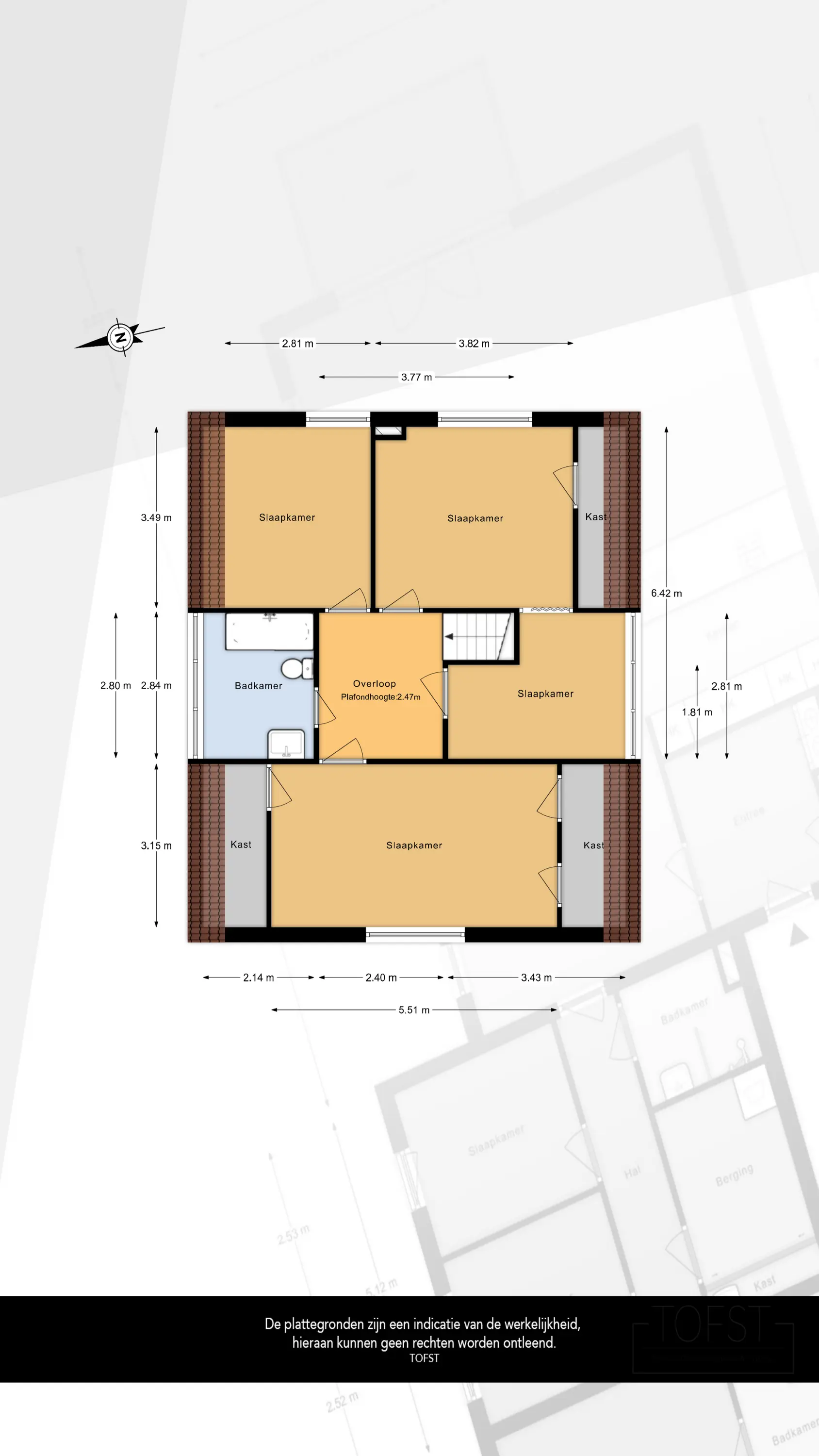 De plattegrond laat zien dat hier, bij nieuwbouw of herontwikkeling, eenvoudig een hoogwaardige slaapverdieping kan worden gerealiseerd met meerdere ruime slaapkamers, luxe badkamer(s) en bijvoorbeeld een master suite met uitzicht over het water en het omliggende groen. Door de ruime afstand tot omliggende bebouwing geniet men hier van veel privacy.