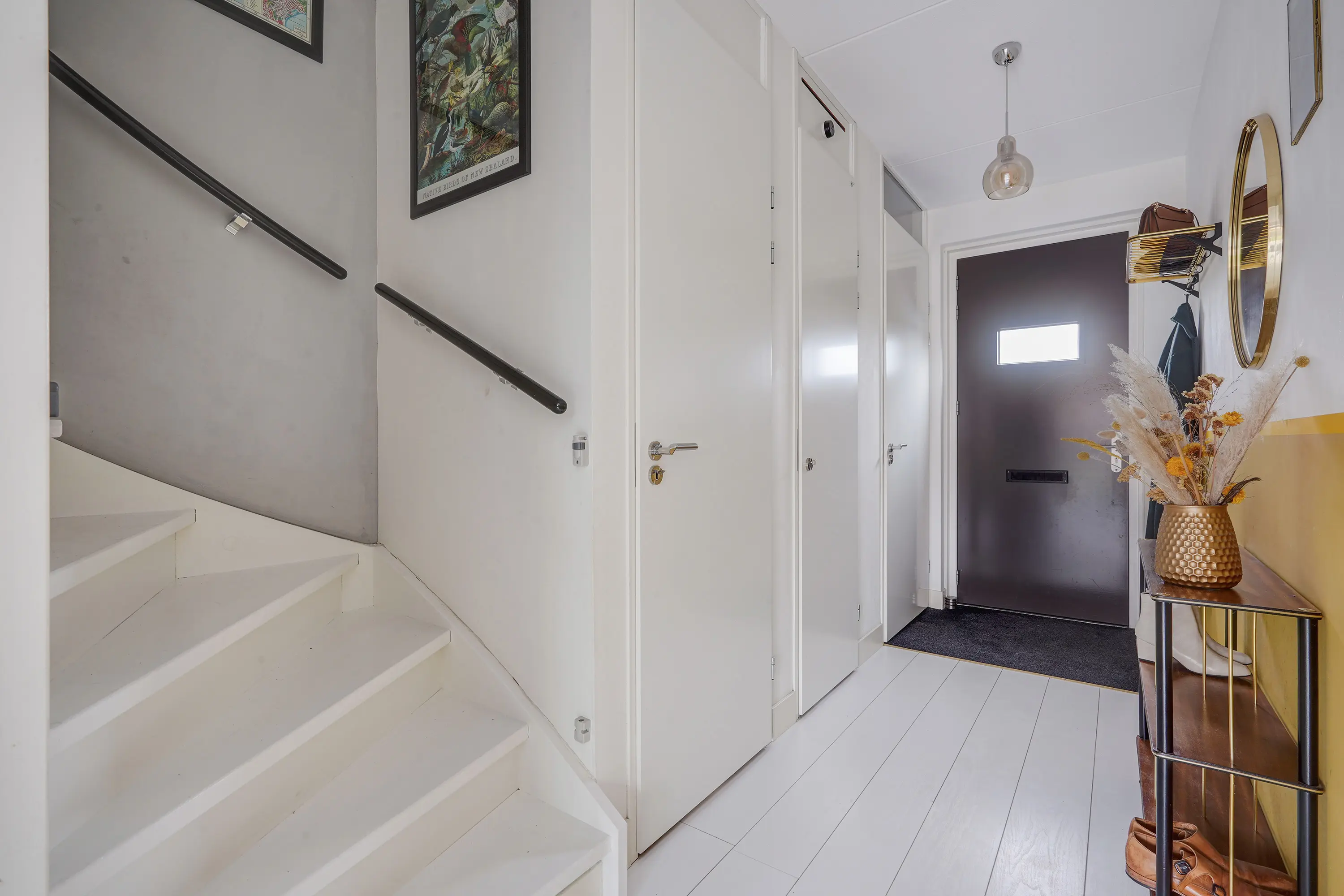 Entree woning in hal, voorzien van de toilet, meterkast en trapopgang naar de eerste verdieping.
