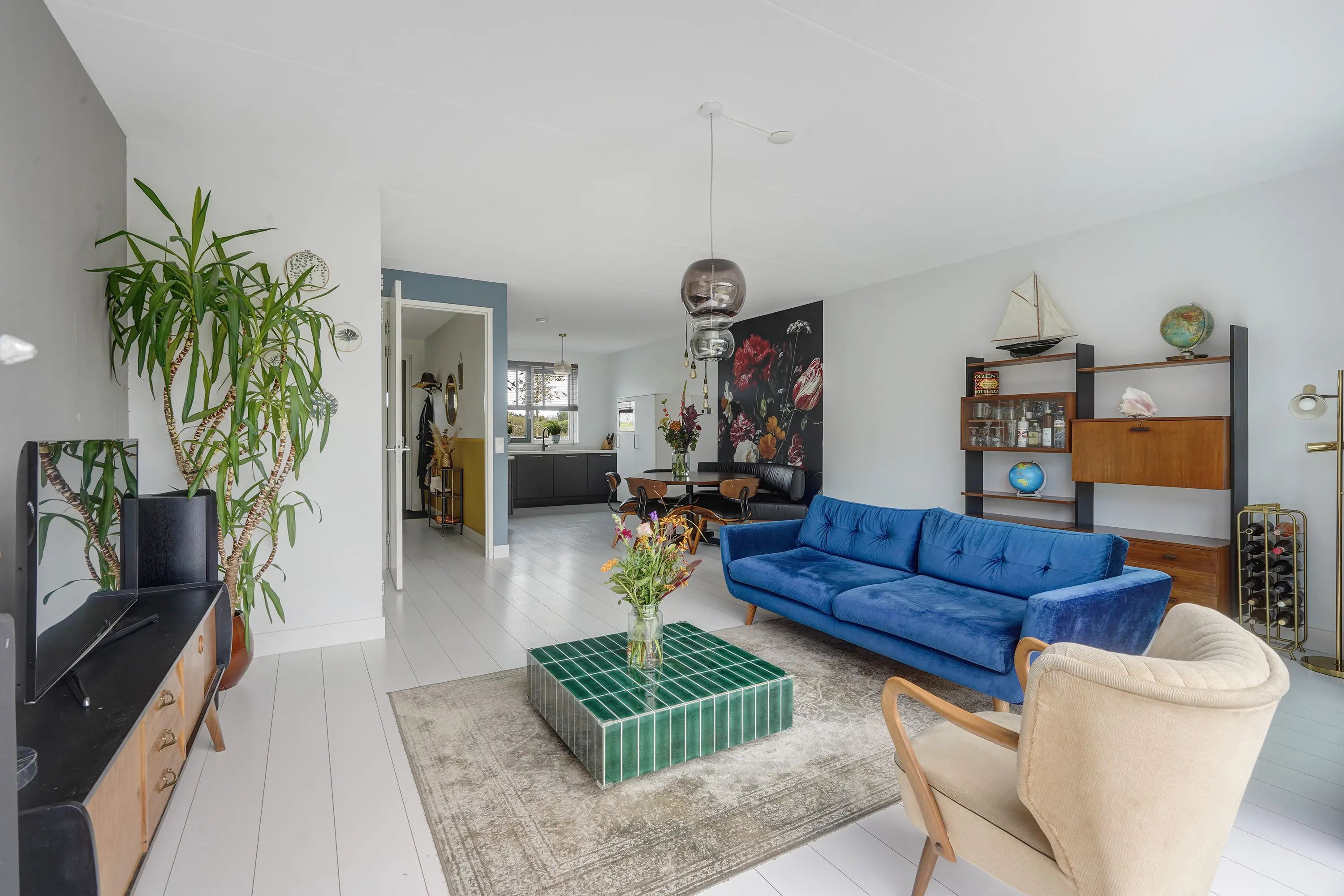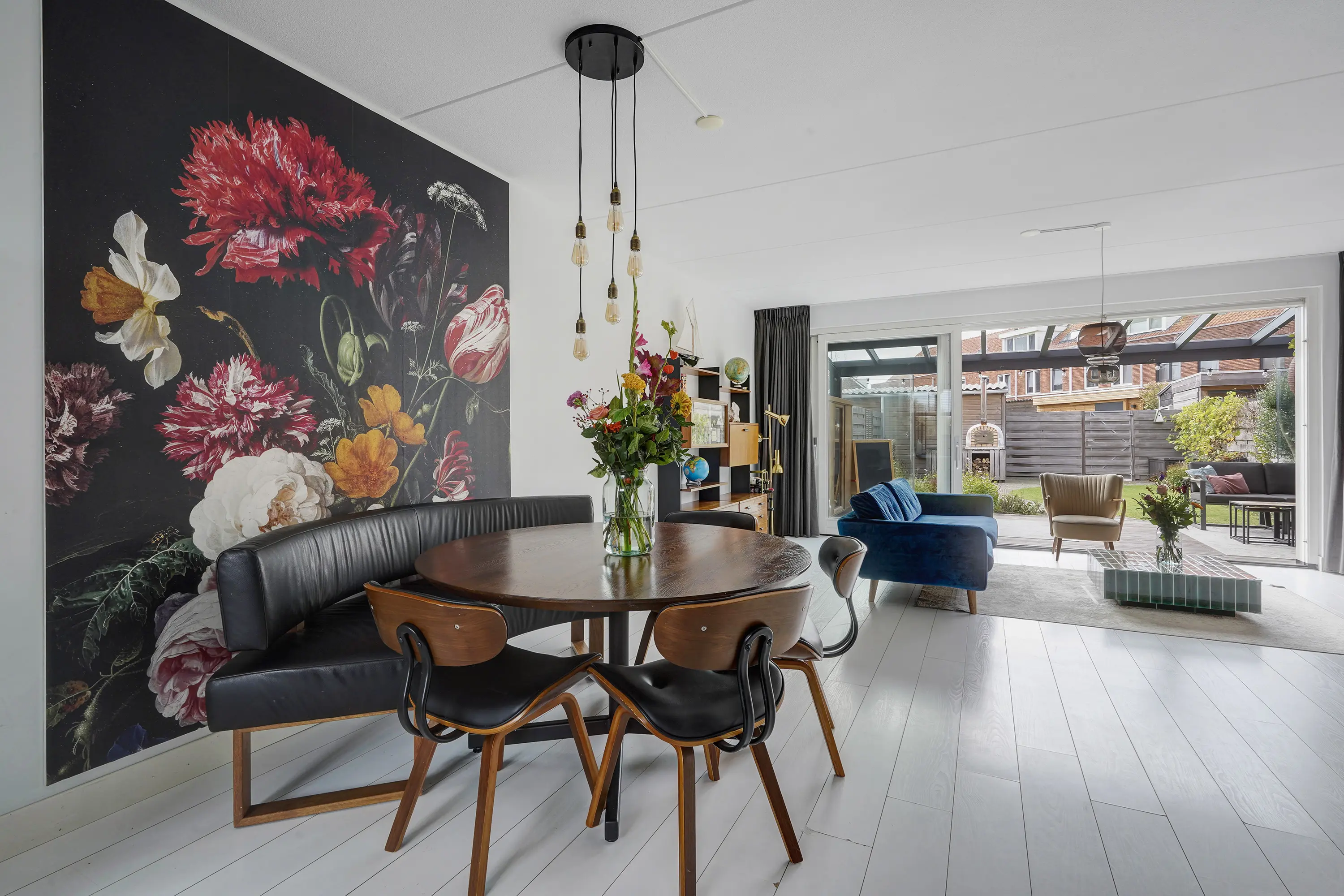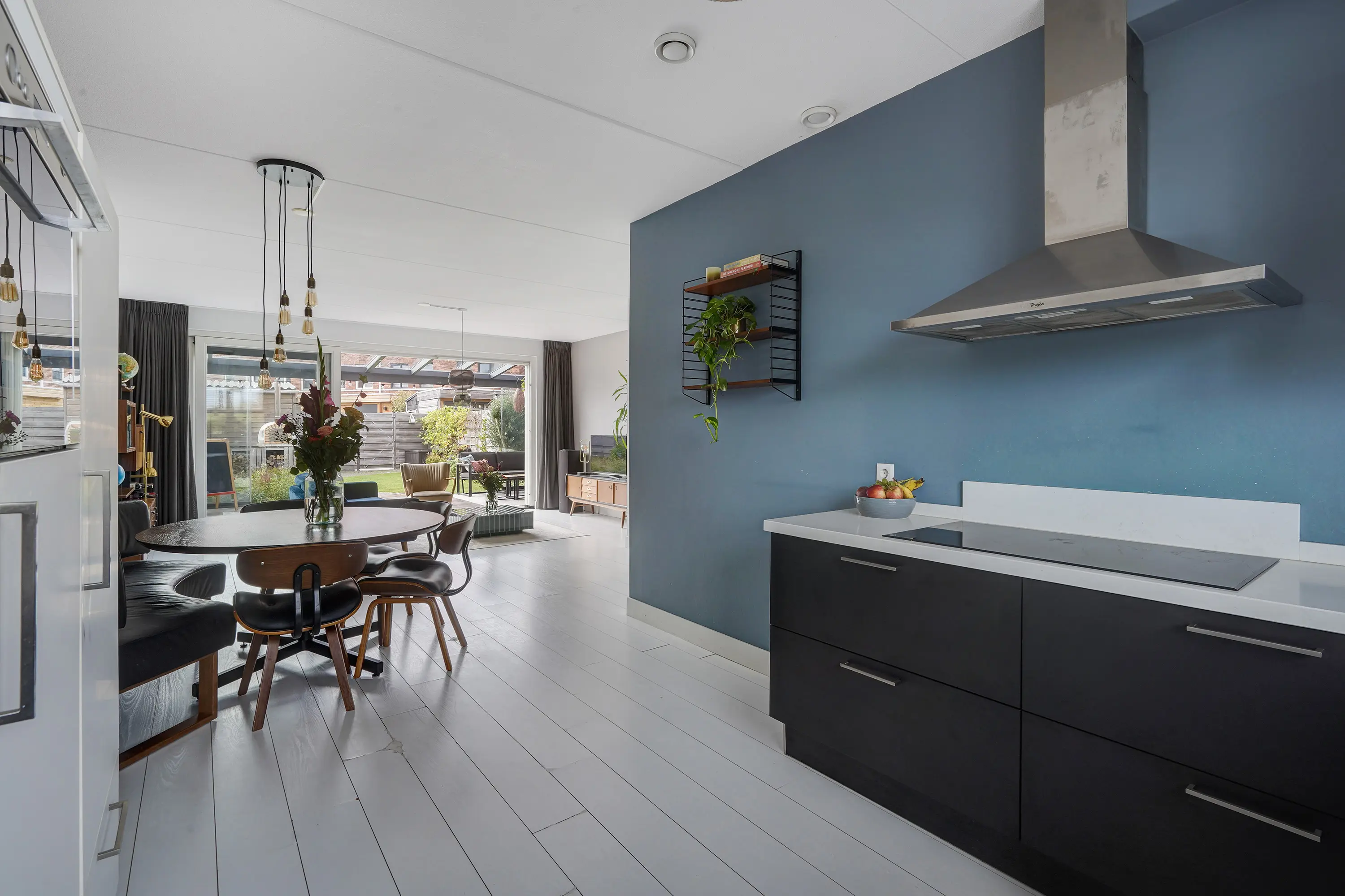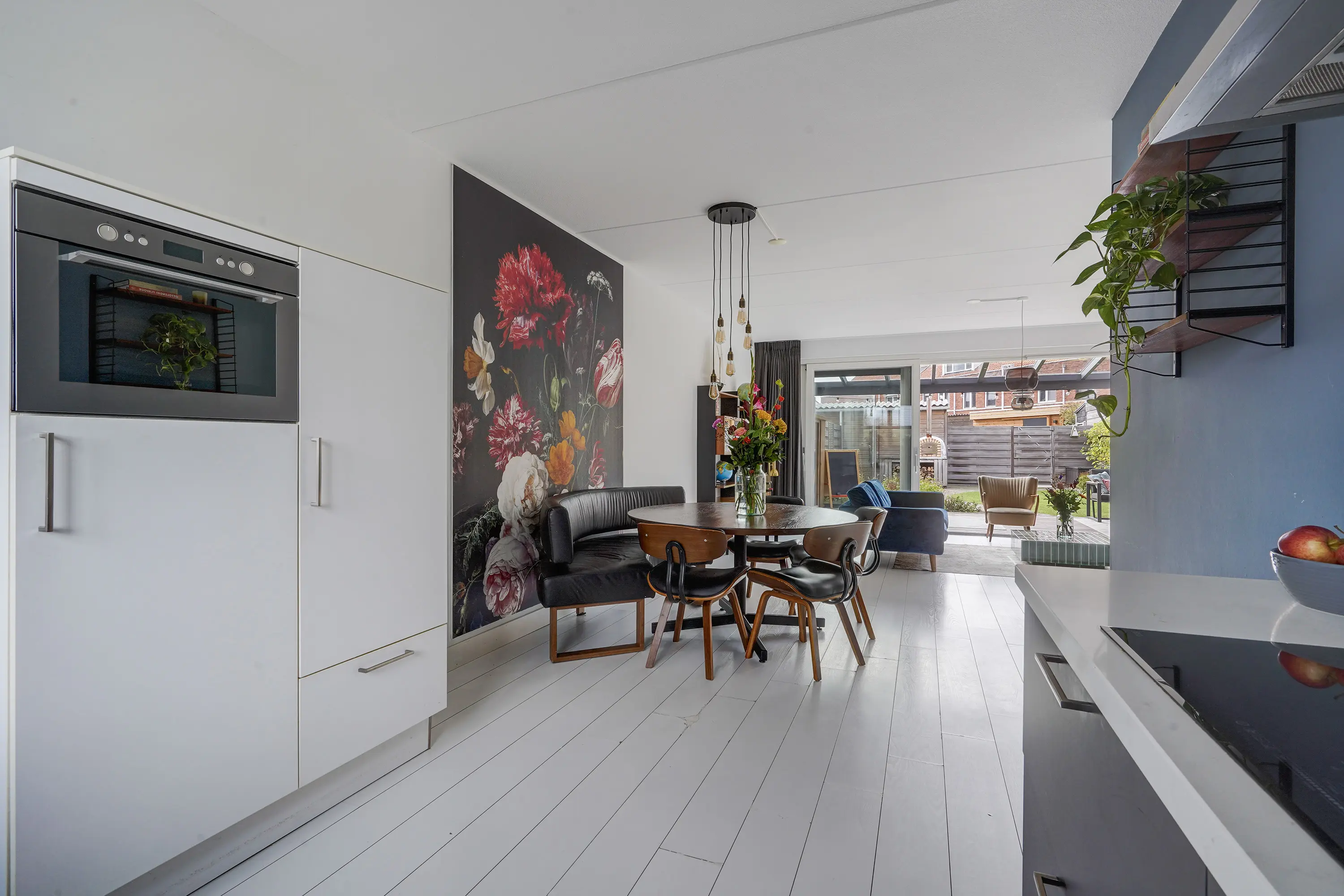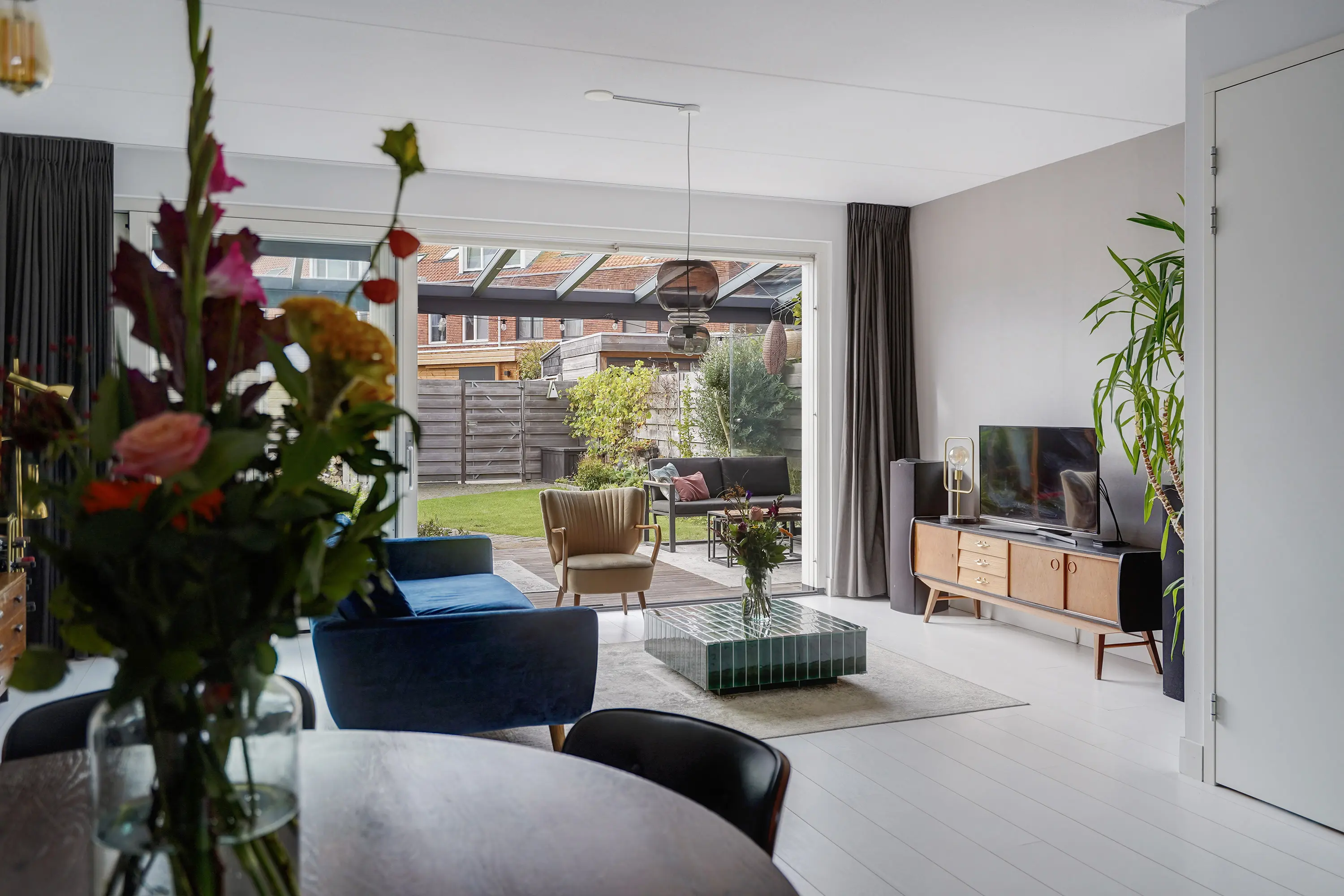 - Lichte woonkamer met grote schuifpui;