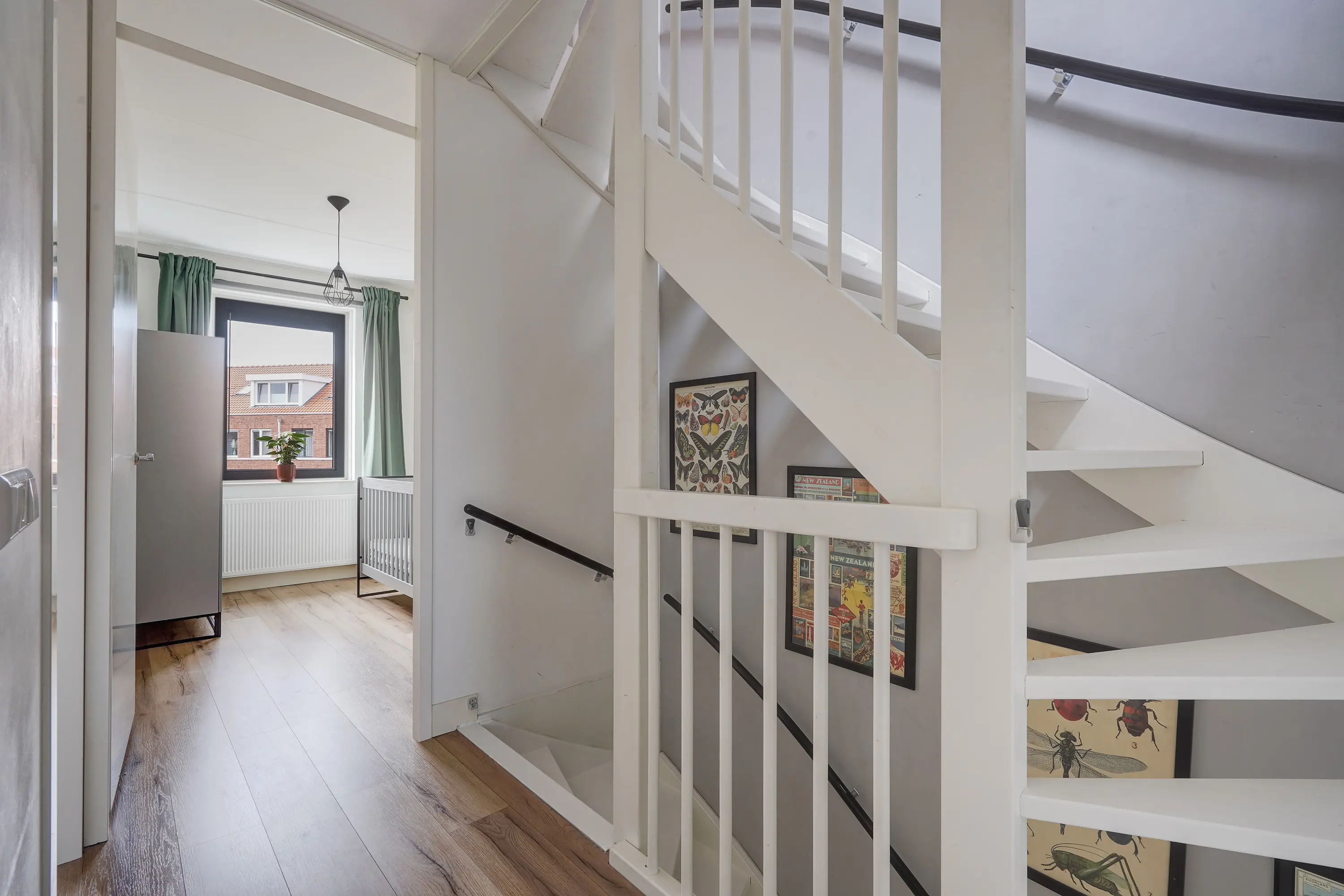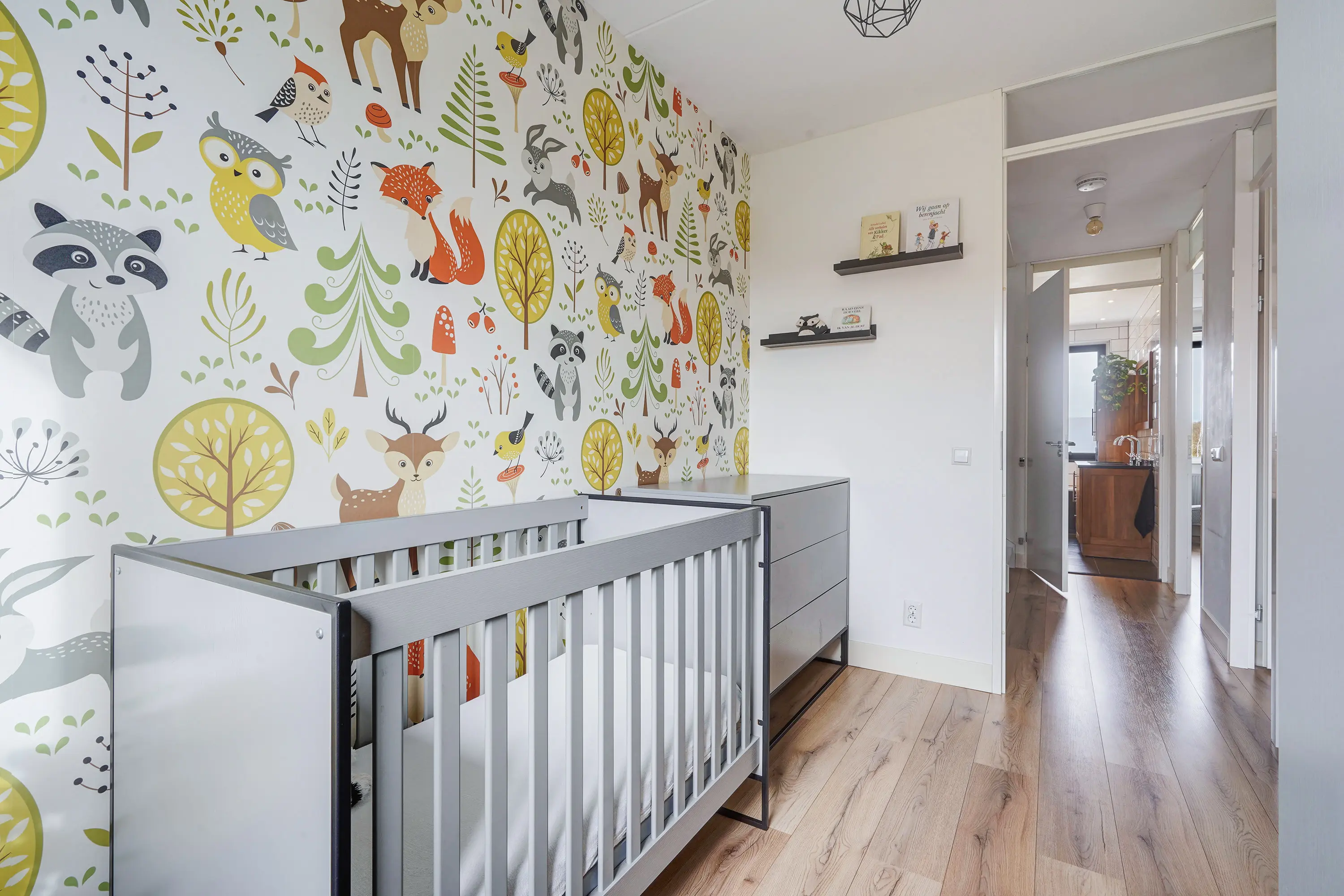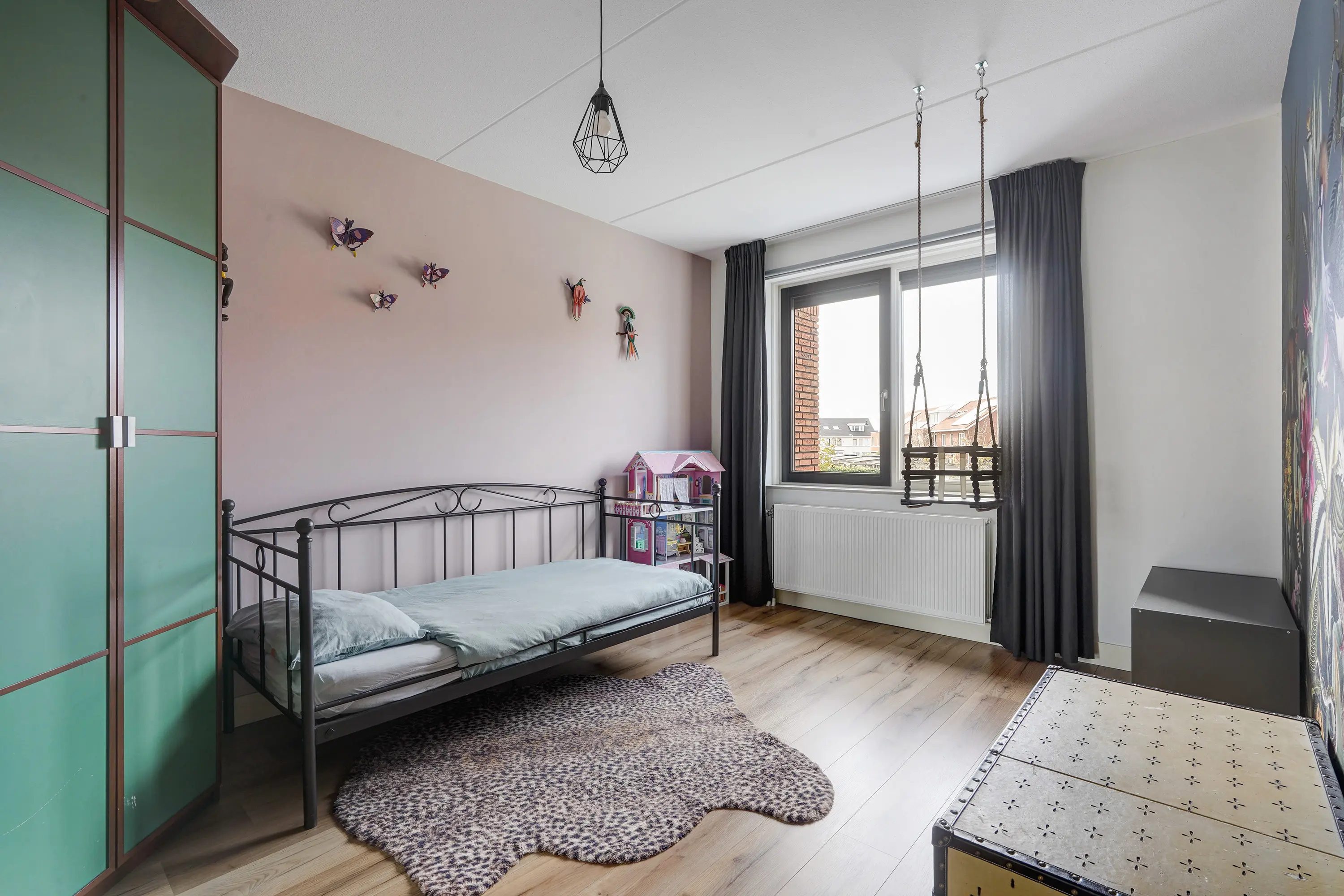 Aan de voorzijde liggen twee slaapkamers, momenteel ingericht als kinderkamers, waarvan één ook uitstekend geschikt is als werkkamer of hobbyruimte. Beide kamers zijn voorzien van moderne screens, wellke met een app zijn te bedienen. Dankzij de ruime indeling kunnen kinderen hier volop hun eigen plek creëren.