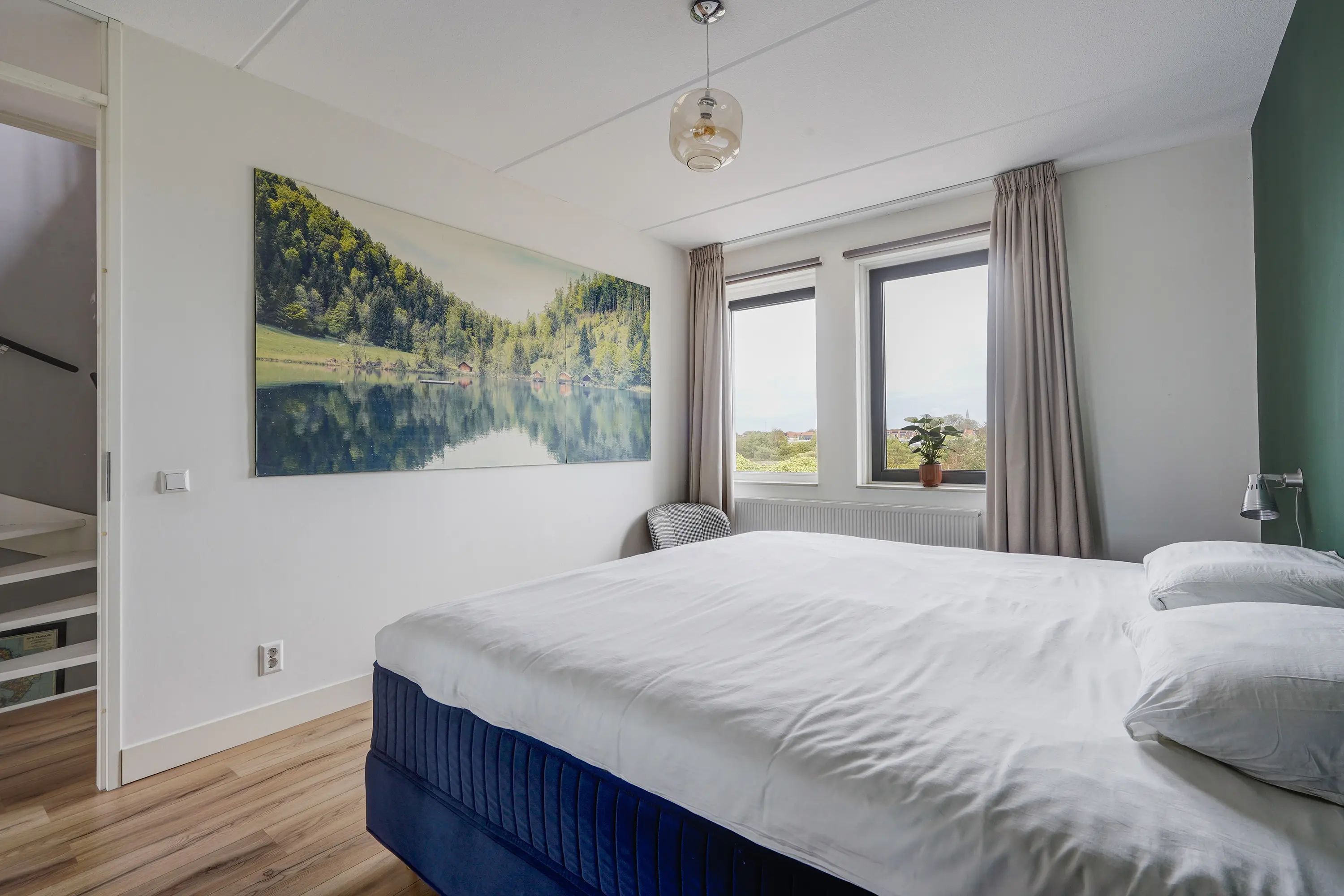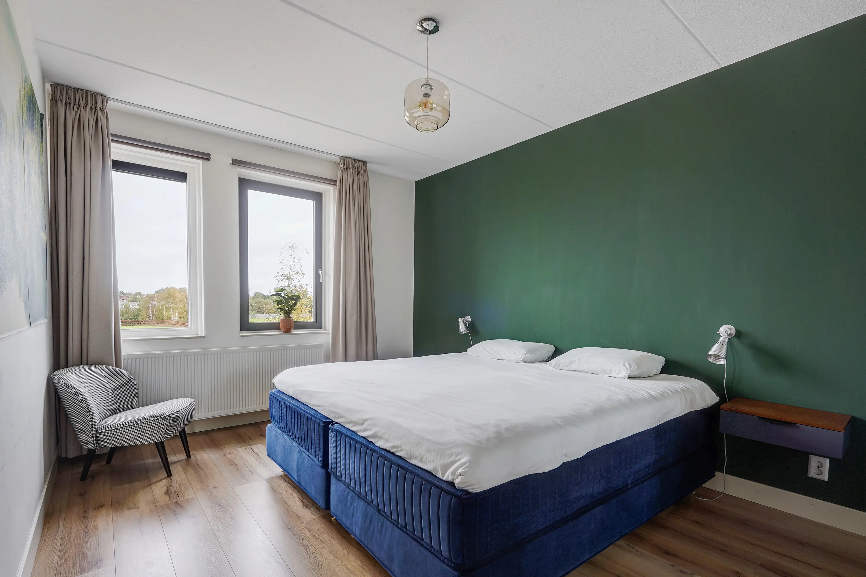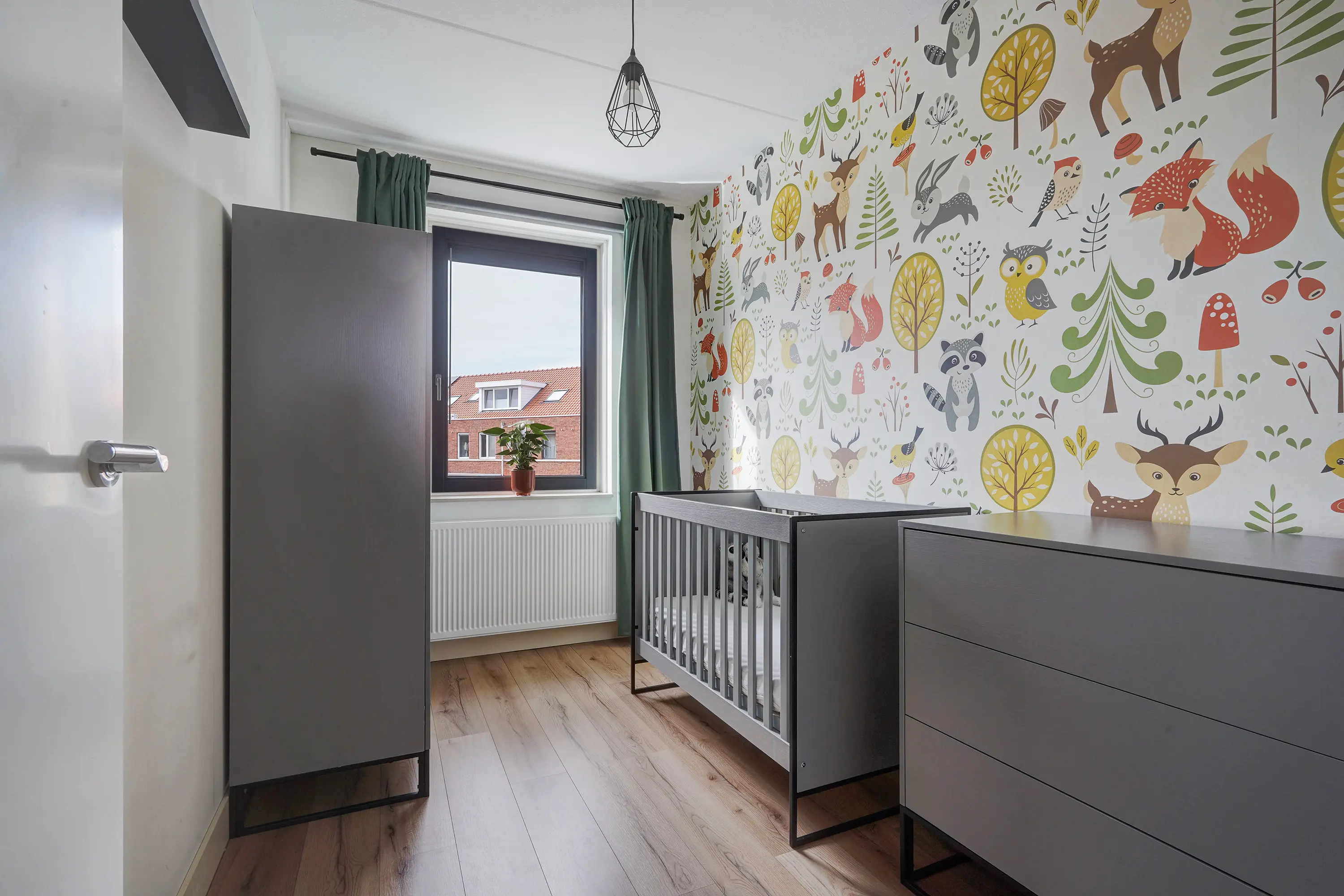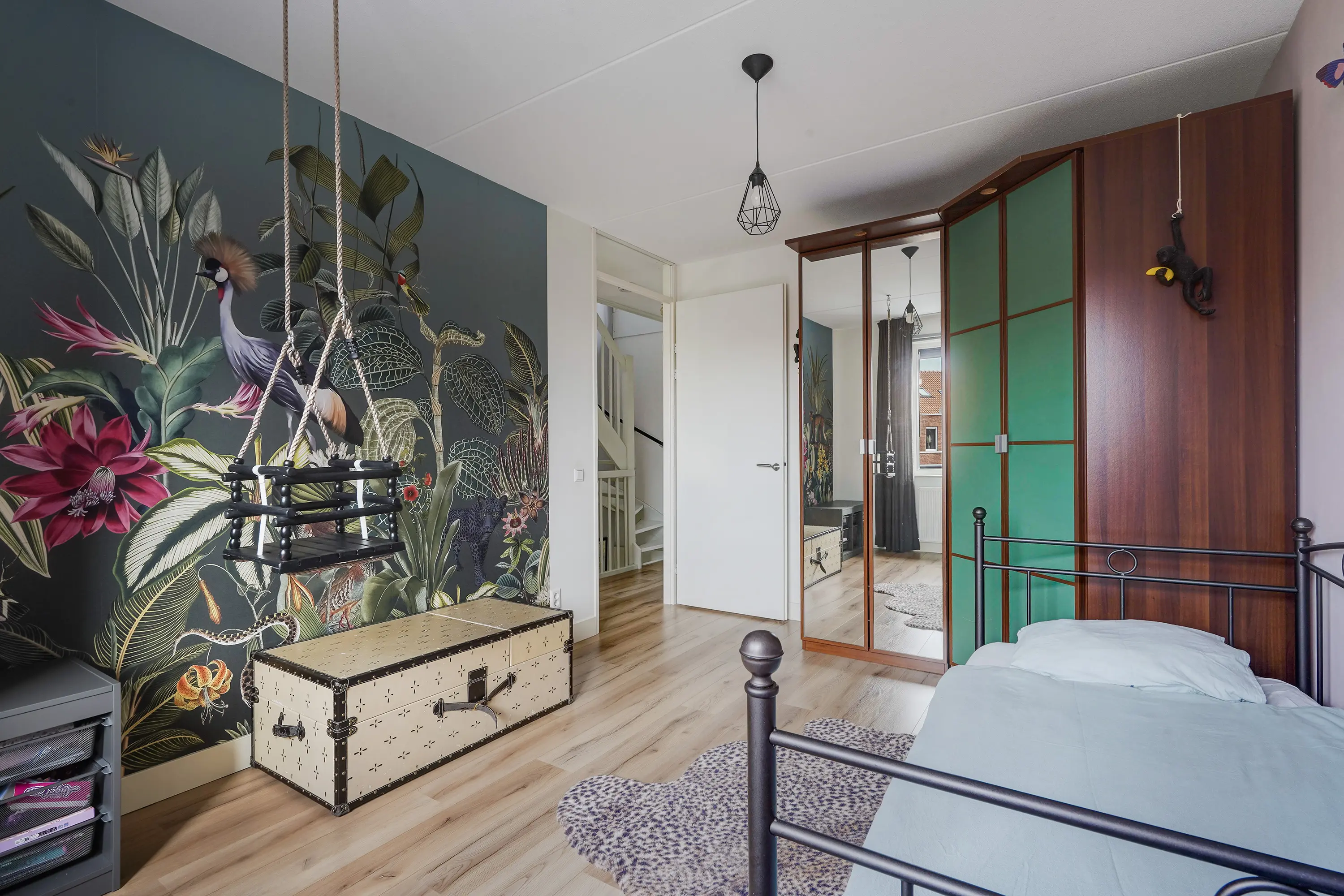 Aan de voorzijde liggen twee slaapkamers, momenteel ingericht als kinderkamers, waarvan één ook uitstekend geschikt is als werkkamer of hobbyruimte. Beide kamers zijn voorzien van moderne screens, wellke met een app zijn te bedienen. Dankzij de ruime indeling kunnen kinderen hier volop hun eigen plek creëren.