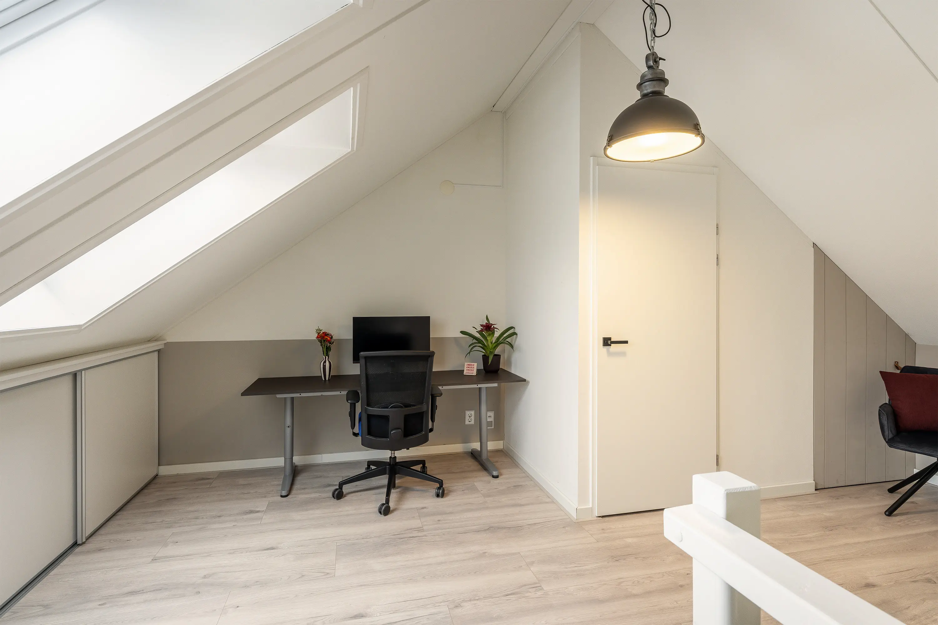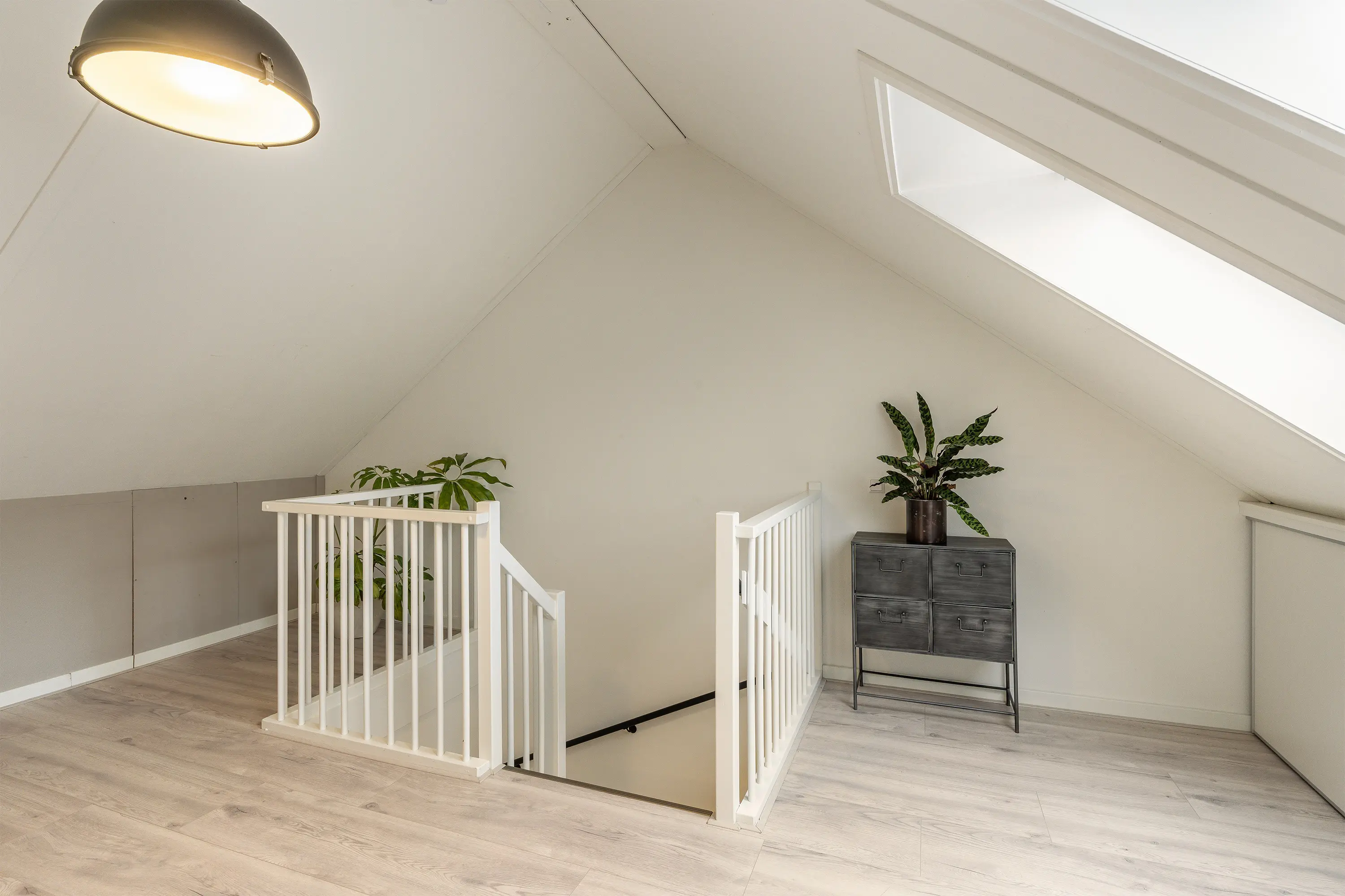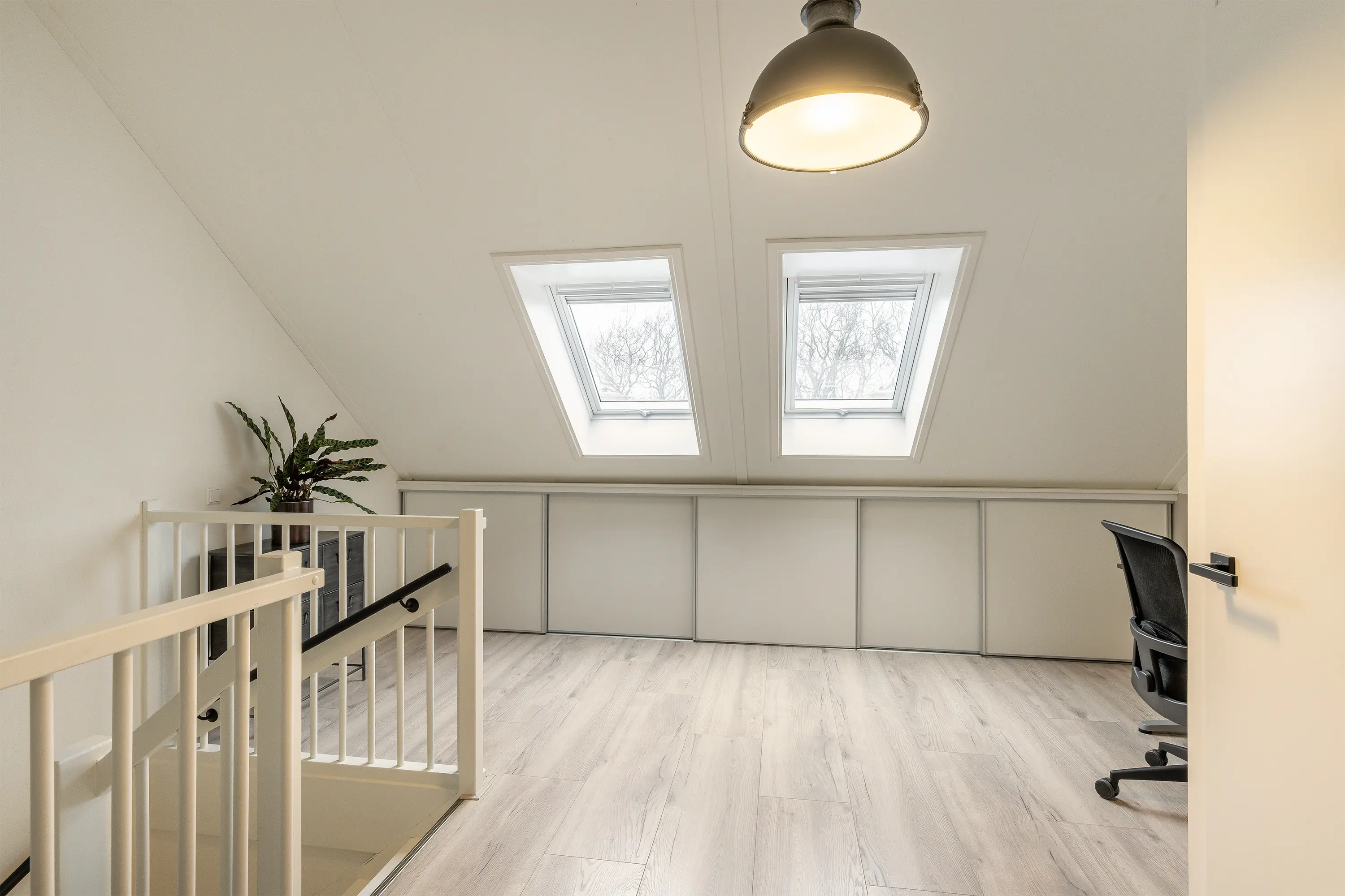 De zolder beschikt over twee Velux dakramen die zorgen voor veel natuurlijk licht. Deze ruimte kan perfect gebruikt worden als thuiswerkplek of hobbyruimte. Achter de knieschotten vindt u praktische bergruimte. Daarnaast is er een aparte wasruimte met aansluitingen voor wasmachine en droger, evenals de opstelplaats voor de HR combi-ketel. Een volwaardige en multifunctionele verdieping.