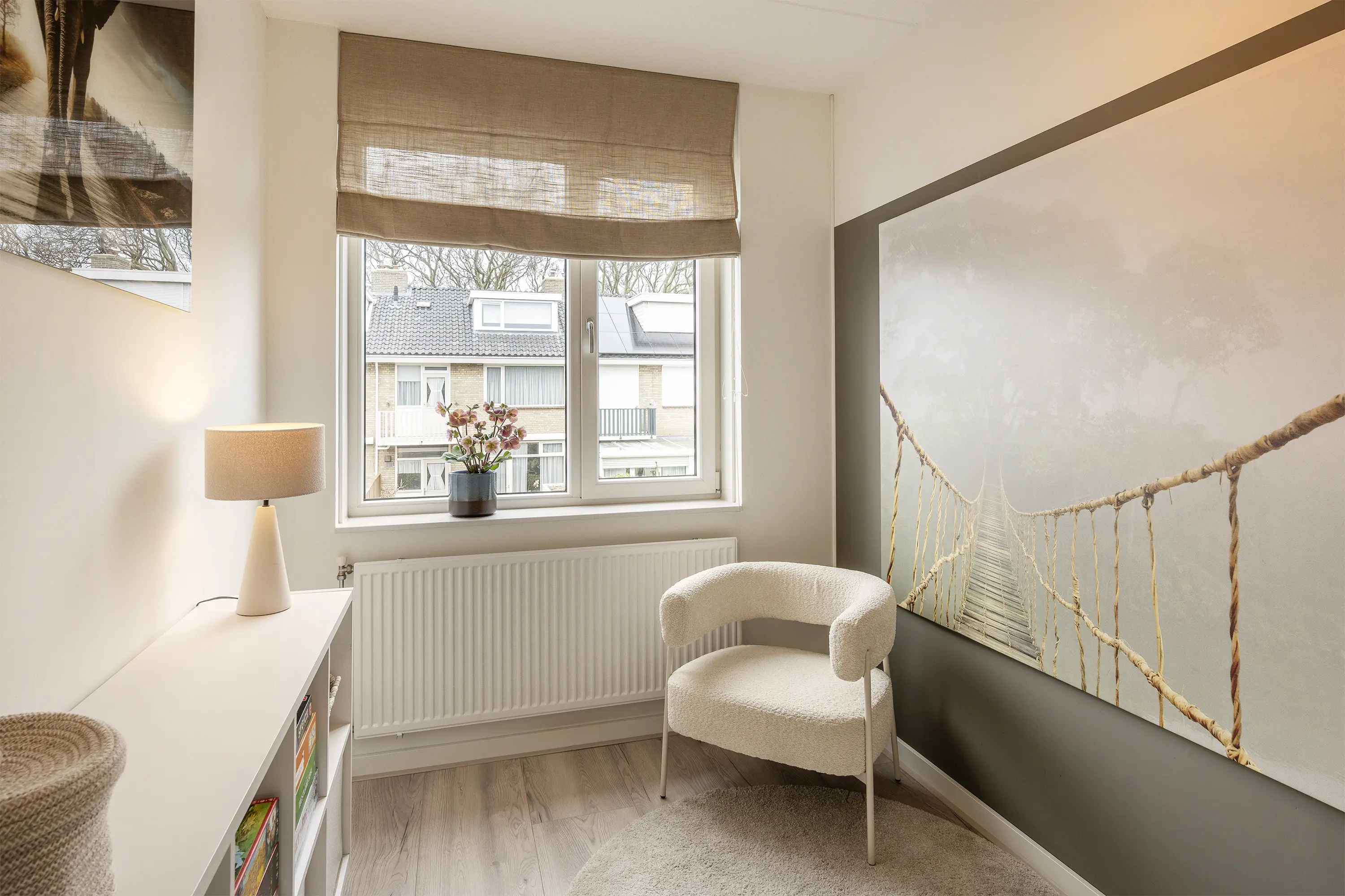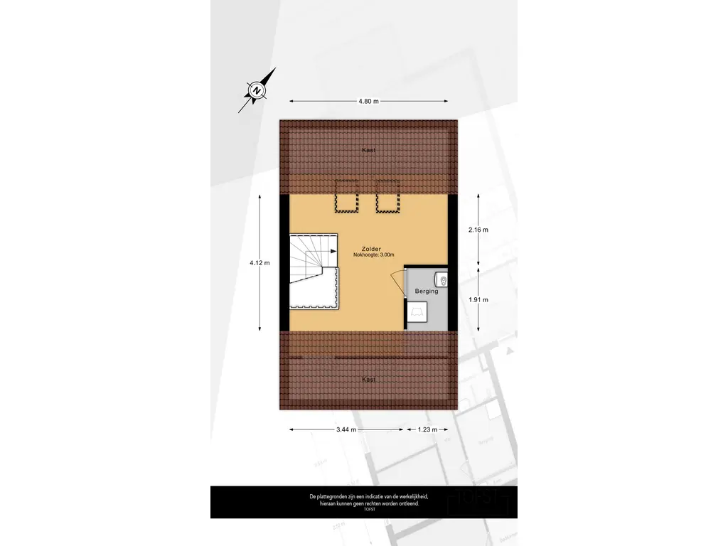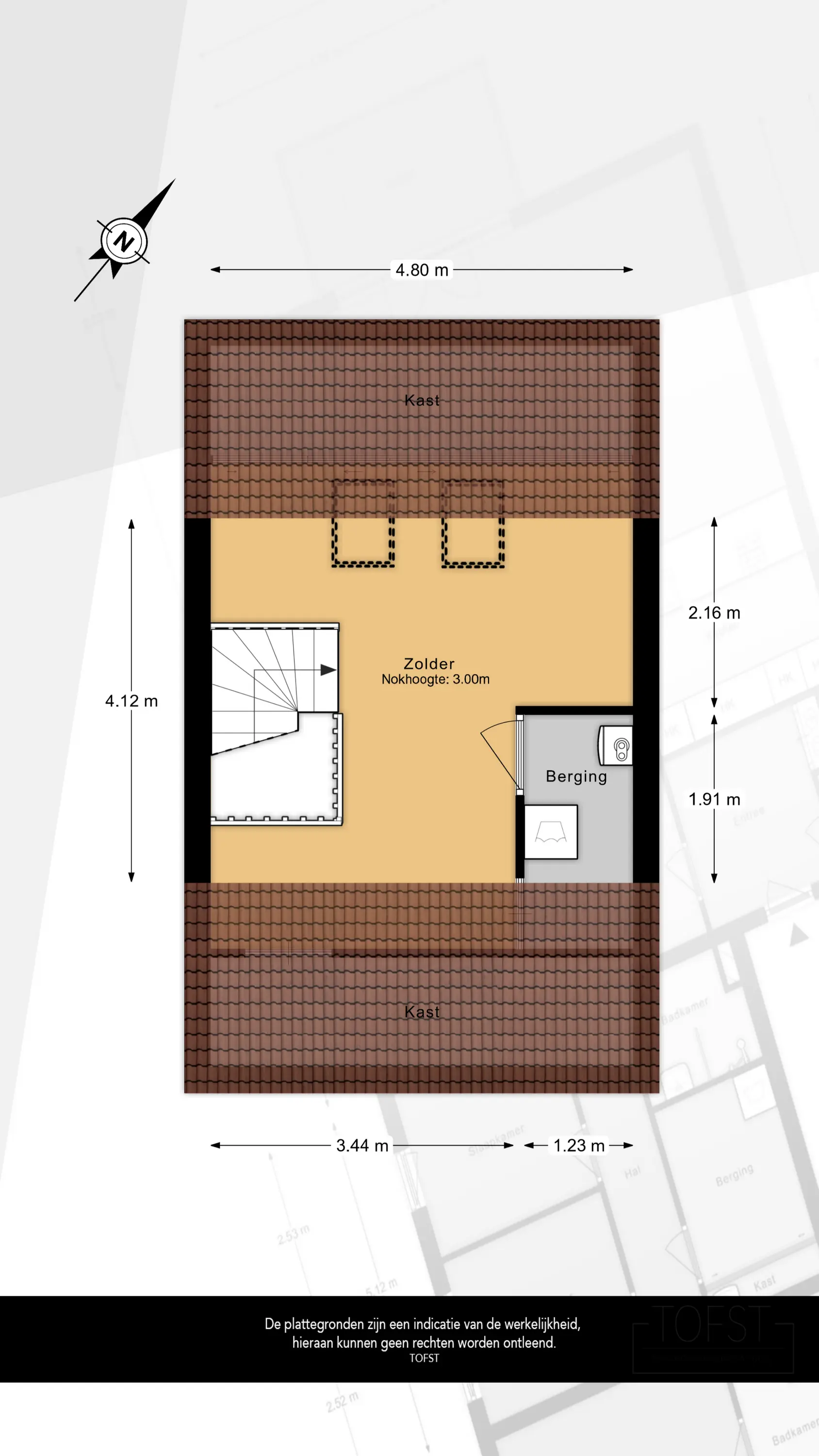De zolder beschikt over twee Velux dakramen die zorgen voor veel natuurlijk licht. Deze ruimte kan perfect gebruikt worden als thuiswerkplek of hobbyruimte. Achter de knieschotten vindt u praktische bergruimte. Daarnaast is er een aparte wasruimte met aansluitingen voor wasmachine en droger, evenals de opstelplaats voor de HR combi-ketel. Een volwaardige en multifunctionele verdieping.