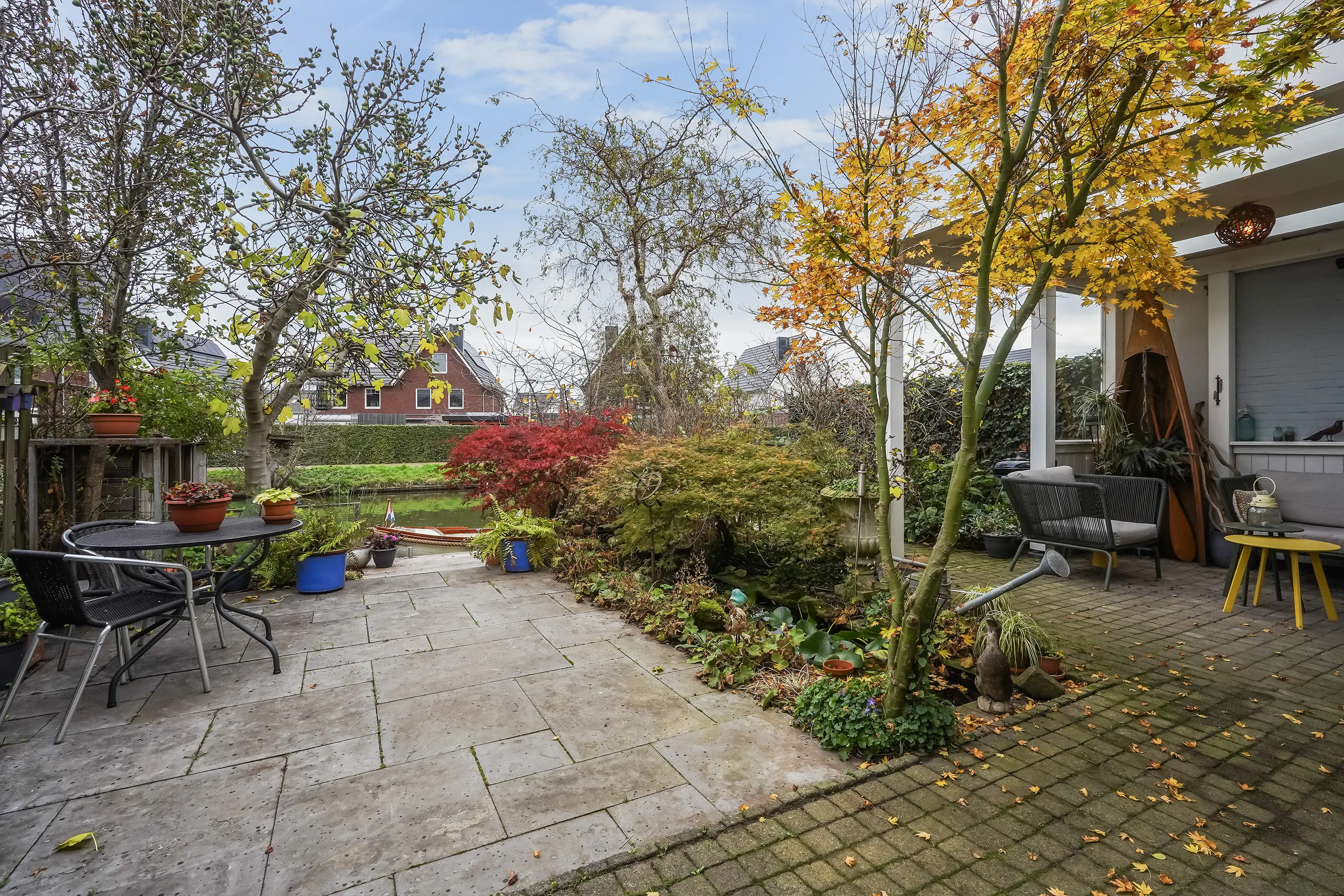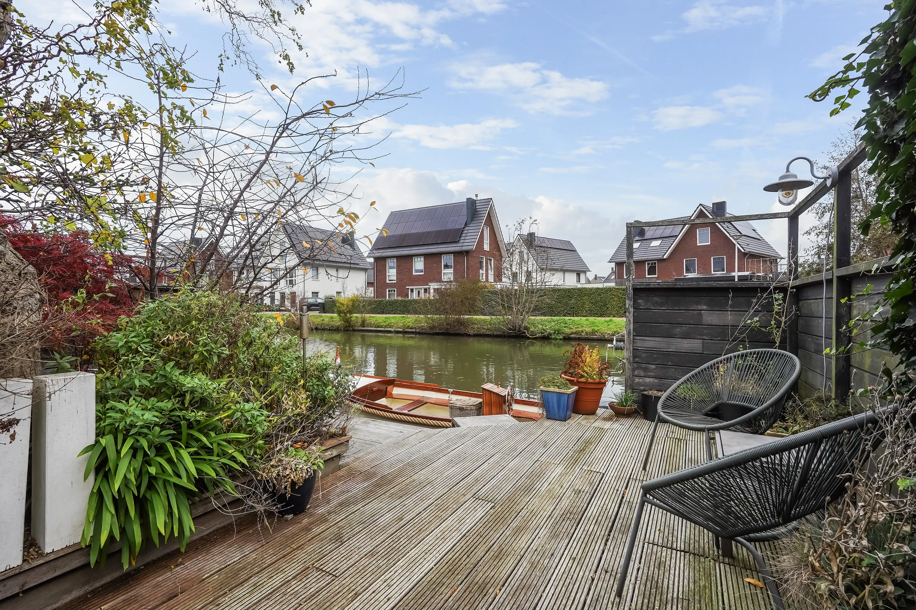 De achtertuin is een oase van rust en privacy, met diverse terrassen en een royale aanlegsteiger met vlonder, ideaal voor een boot, kano of sup. De overkapping (2019) met twee lichtstraten biedt het hele jaar door een comfortabele plek om buiten te zitten, van zomeravonden tot knusse herfstmiddagen. Hier ervaart u echt wat het betekent om aan het water te wonen: varen, vissen, zwemmen of schaatsen – het kan allemaal vanuit uw eigen achtertuin!
