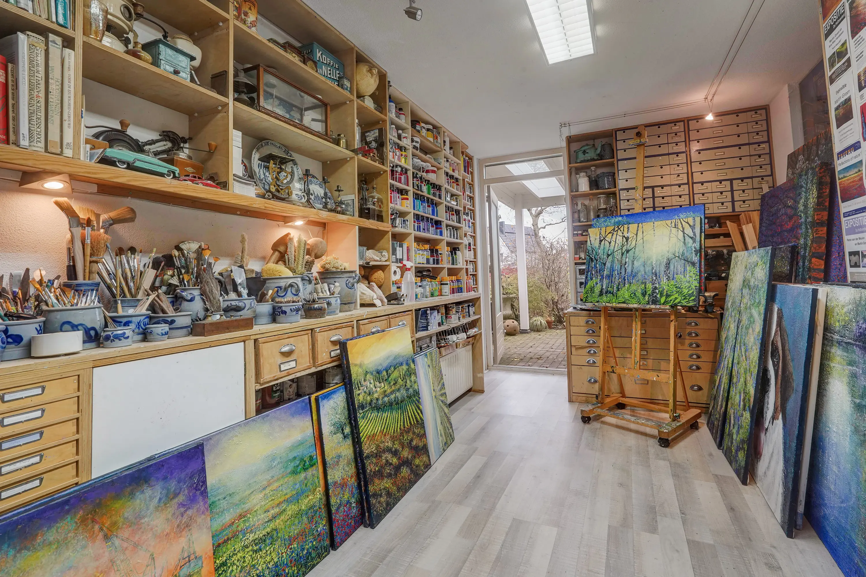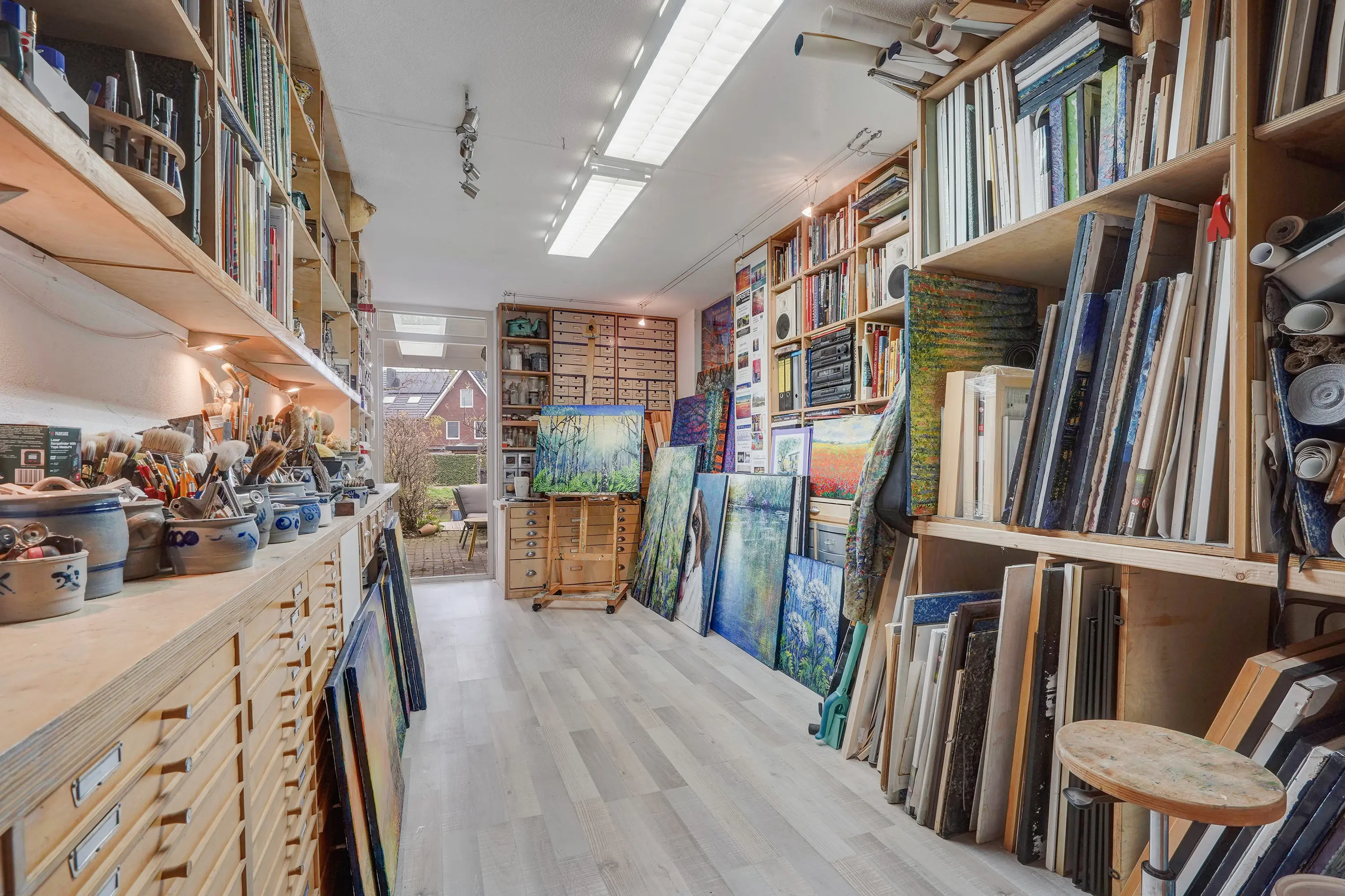 Een extra pluspunt aan deze woning is de voormalige garage, welke is omgebouwd tot een inspirerend atelier, perfect voor wie thuis werkt, creatief bezig is of een eigen praktijkruimte zoekt.