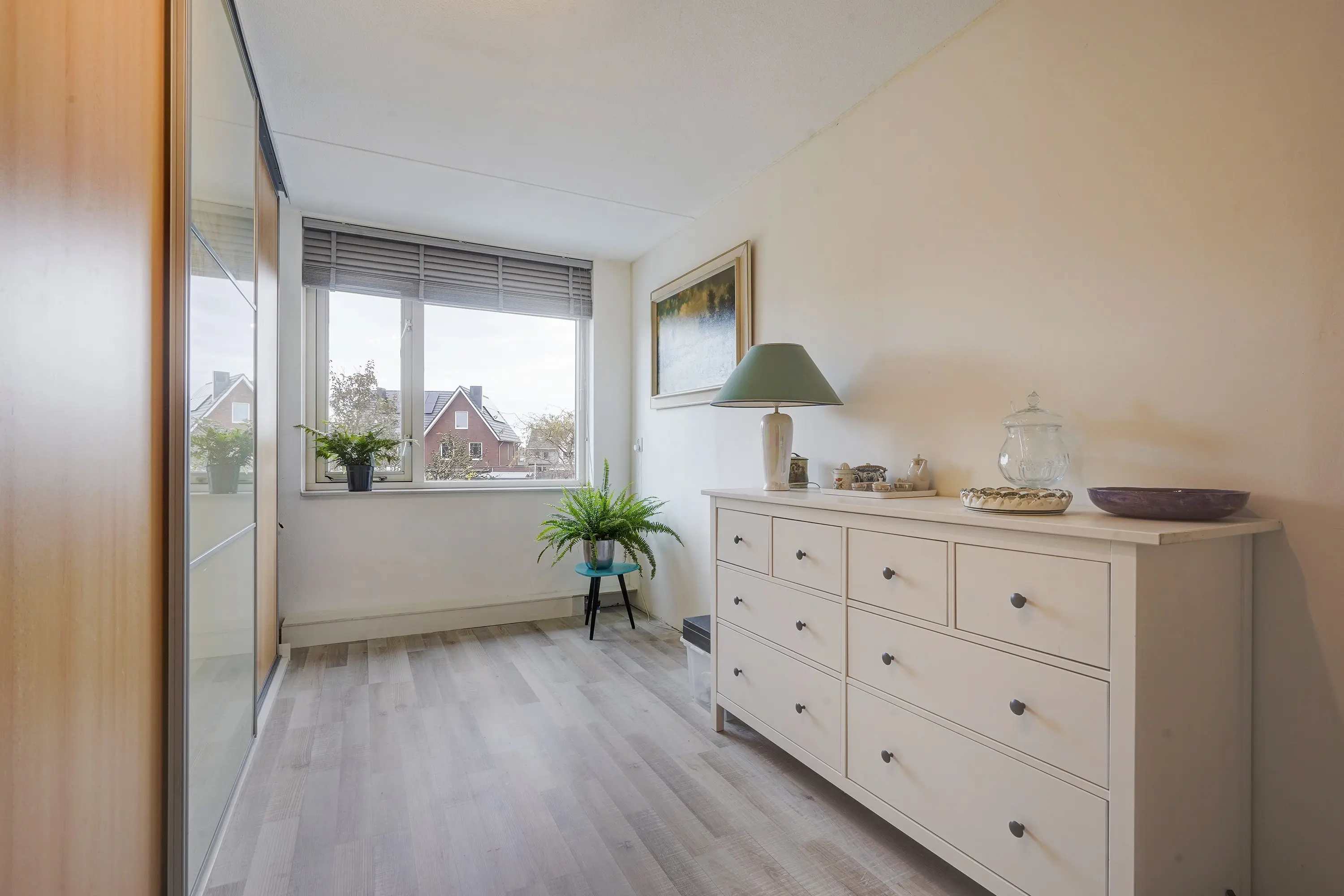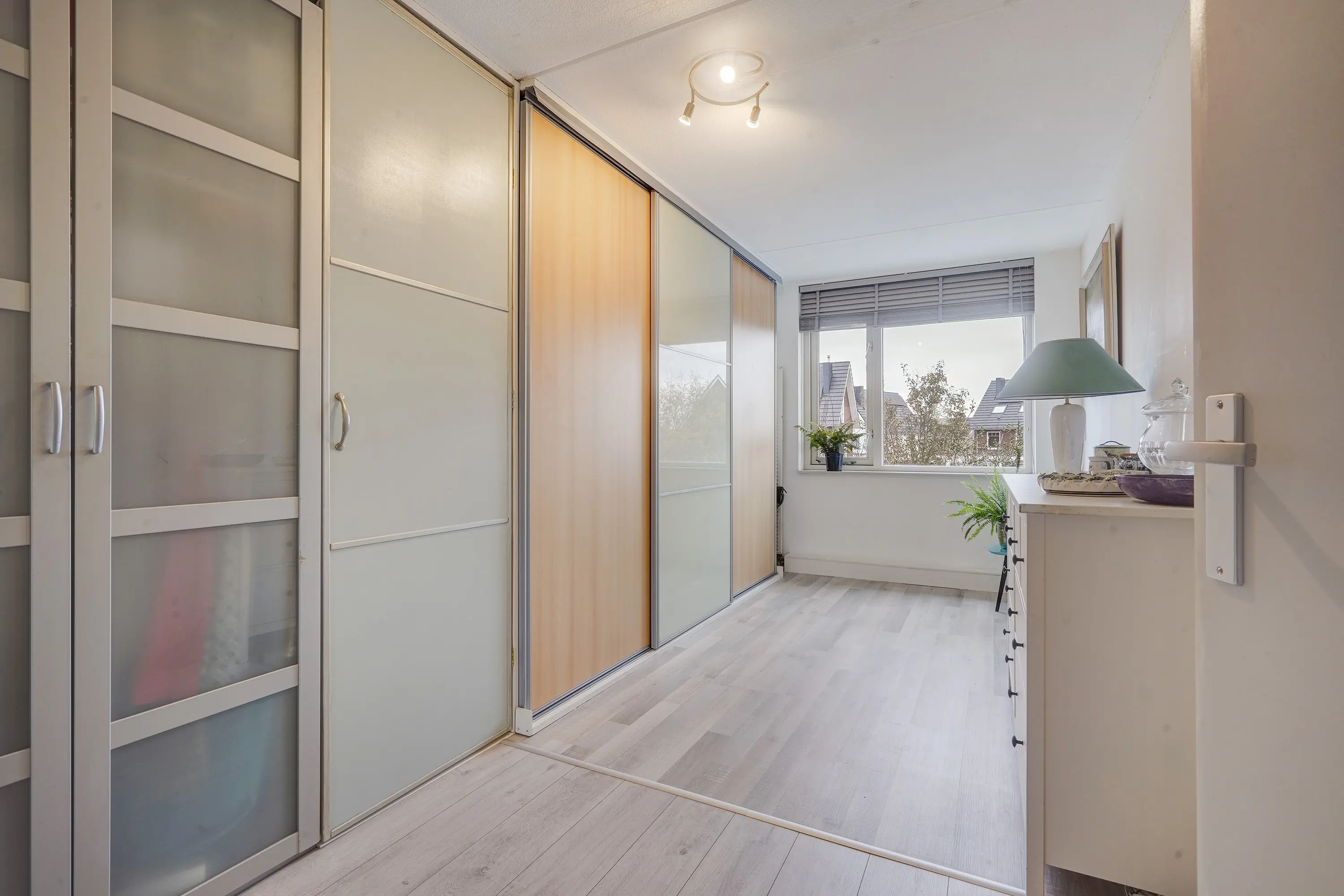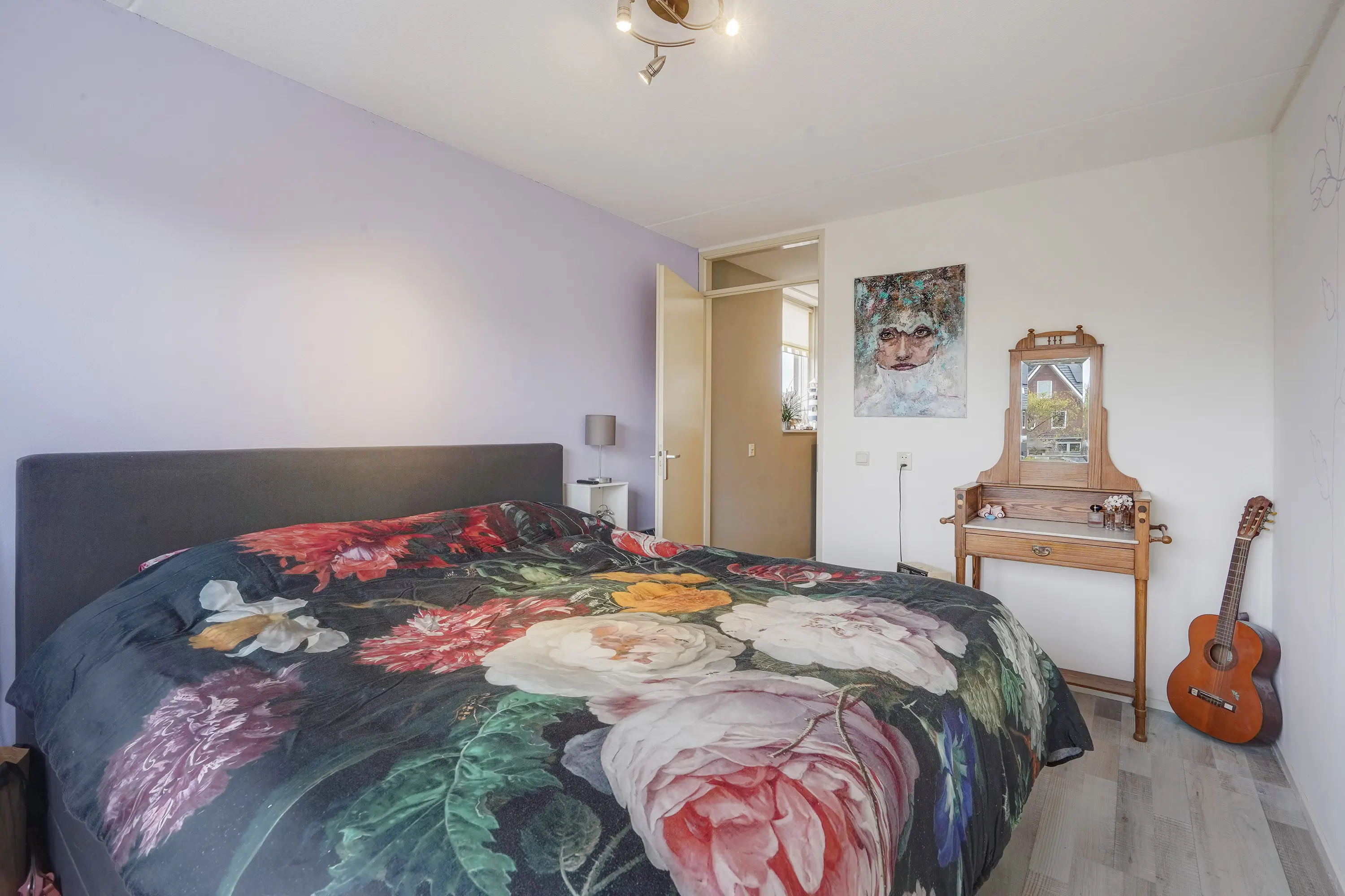 De hoofdslaapkamer aan de achterzijde biedt prachtig uitzicht over de tuin en het water en is ruim genoeg voor een groot tweepersoonsbed. De twee slaapkamers aan de voorzijde zijn licht en rustig, ideaal als kinderkamer, logeerkamer of werkruimte. Alle kamers op deze verdieping beschikken over een laminaat vloer en strak gestucte wanden.
