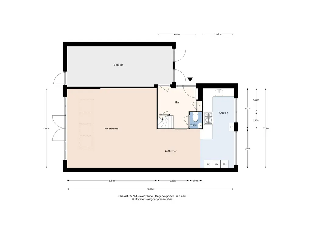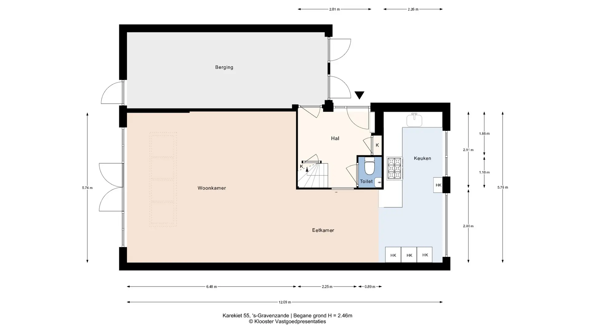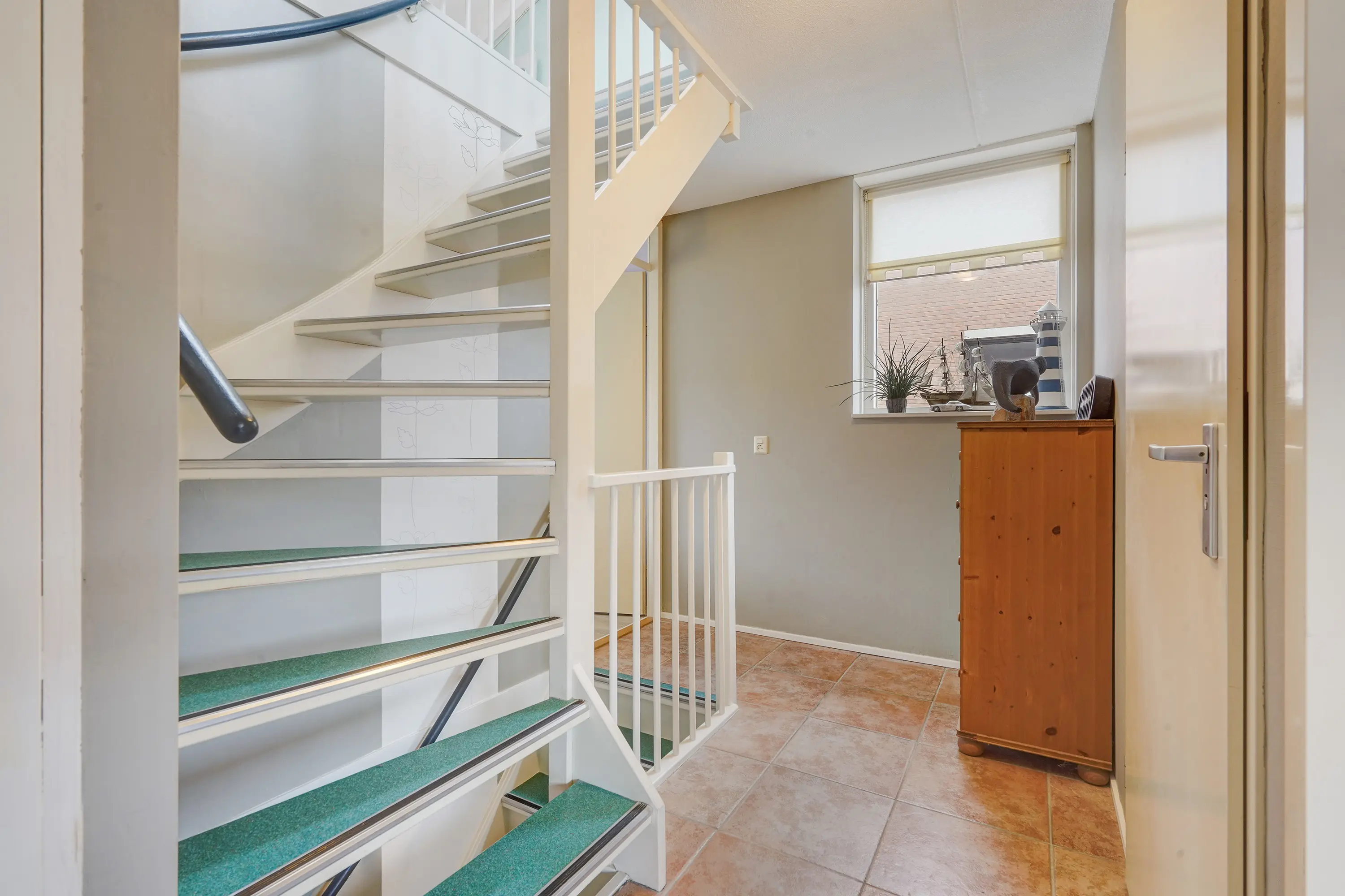 Direct bij binnenkomst valt het lichte en open karakter op. Een schuifdeur verbindt de hal (voorzien van toiletruimte) met de woonkamer en benadrukt de moderne, strakke uitstraling.