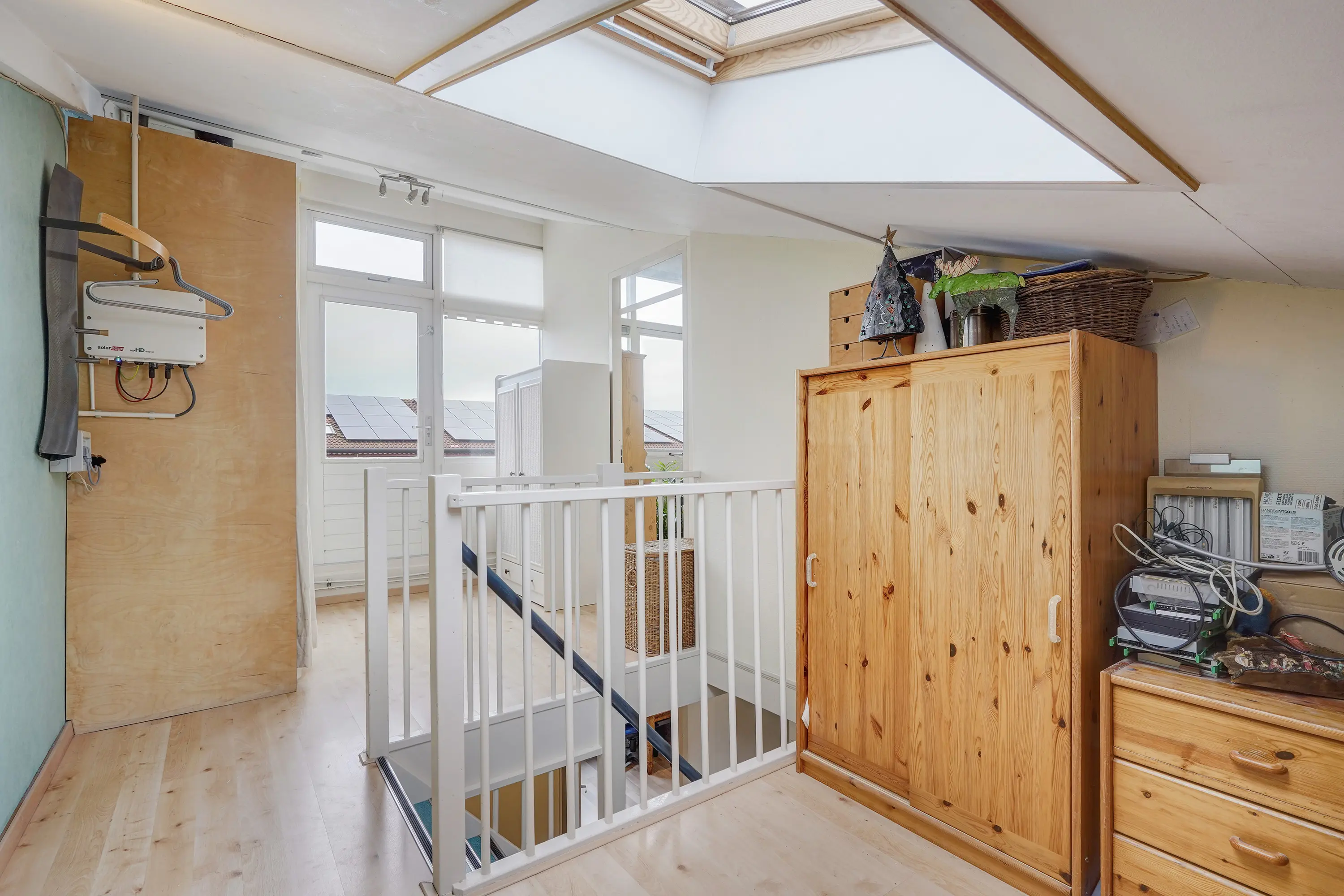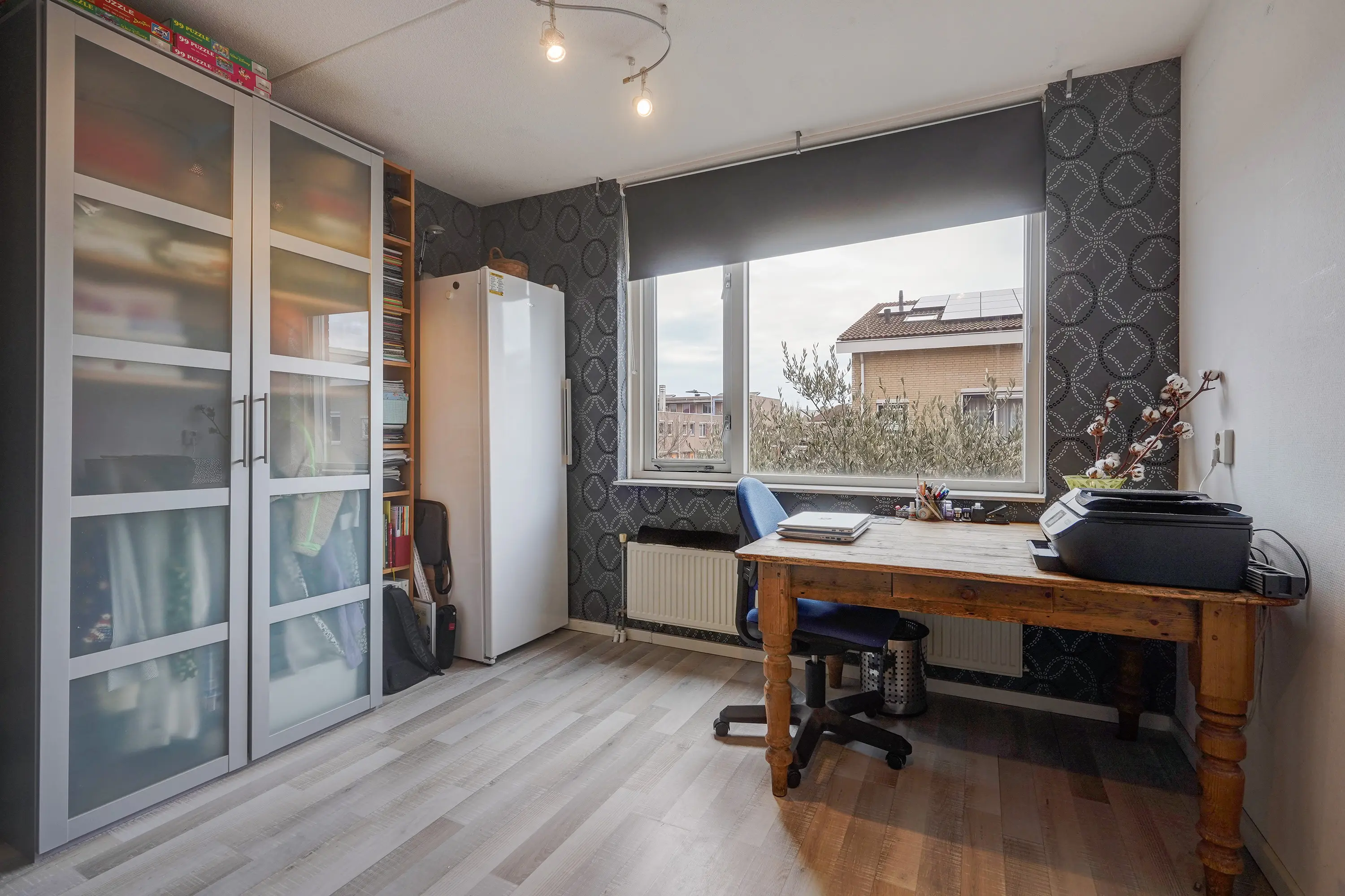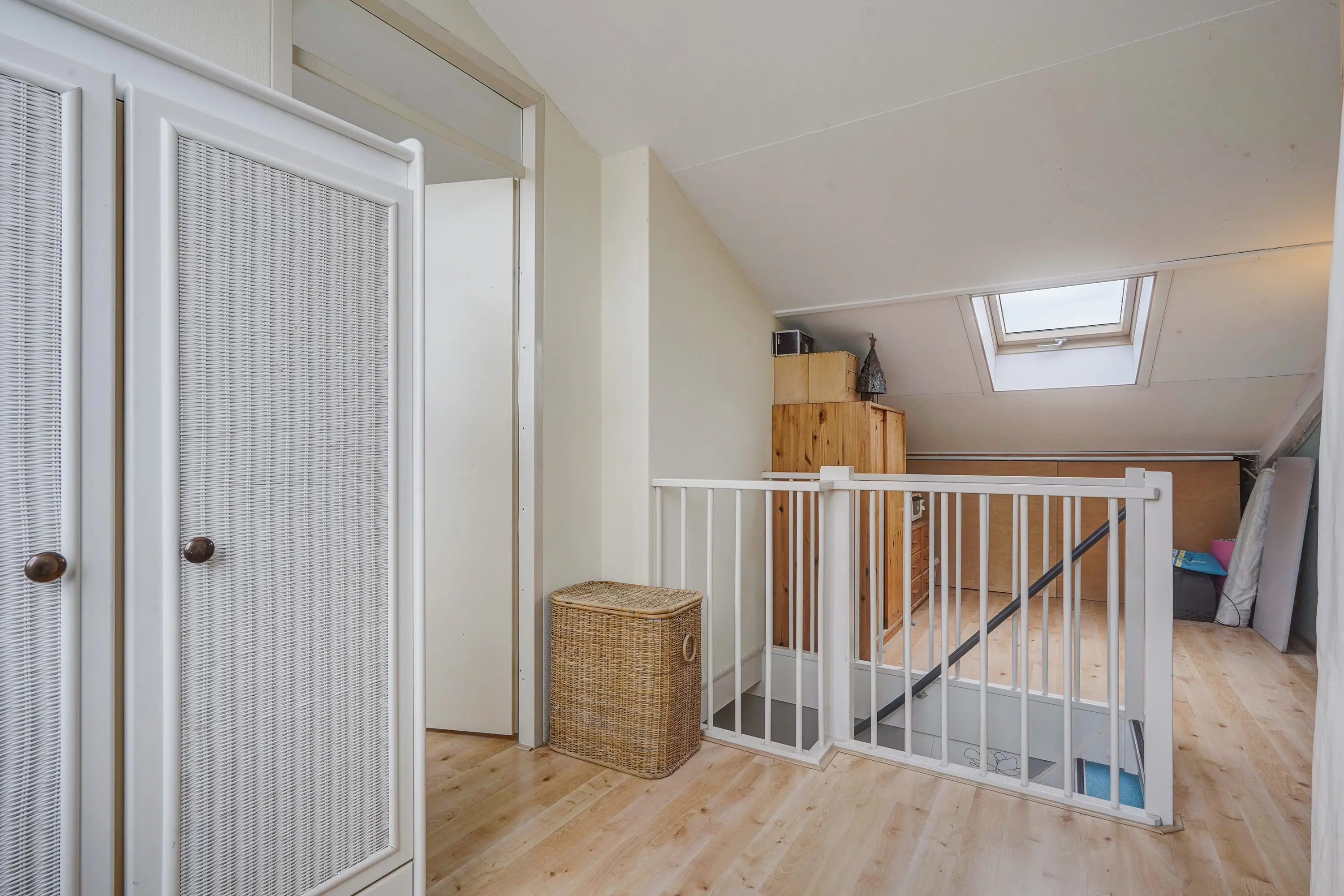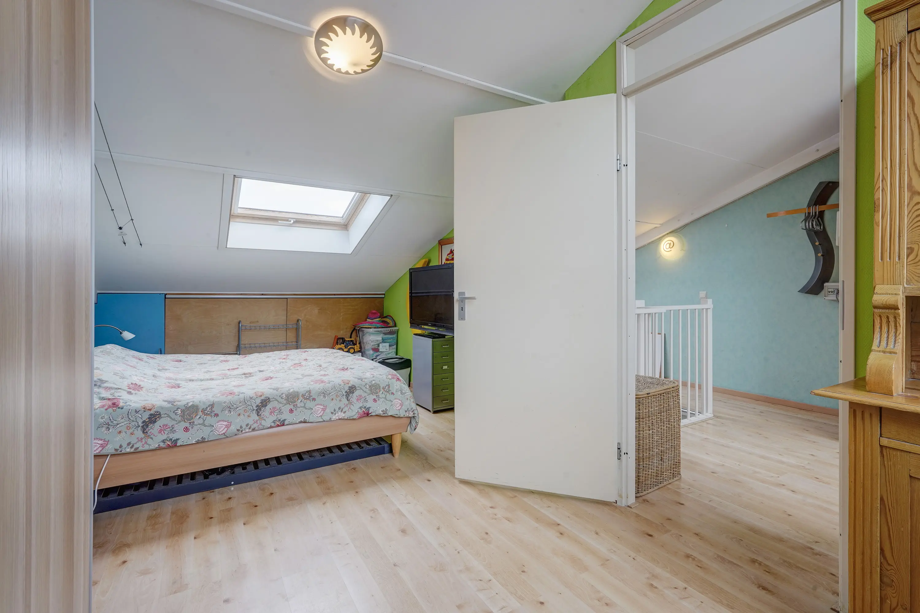 De tweede verdieping biedt veel mogelijkheden. Via de overloop bereikt u de vierde slaapkamer, ideaal als master bedroom, tienerkamer of werkruimte. Vanuit de overloop is het balkon aan de voorzijde bereikbaar, een heerlijke plek om van de zon te genieten en uit te kijken over de rustige wijk.