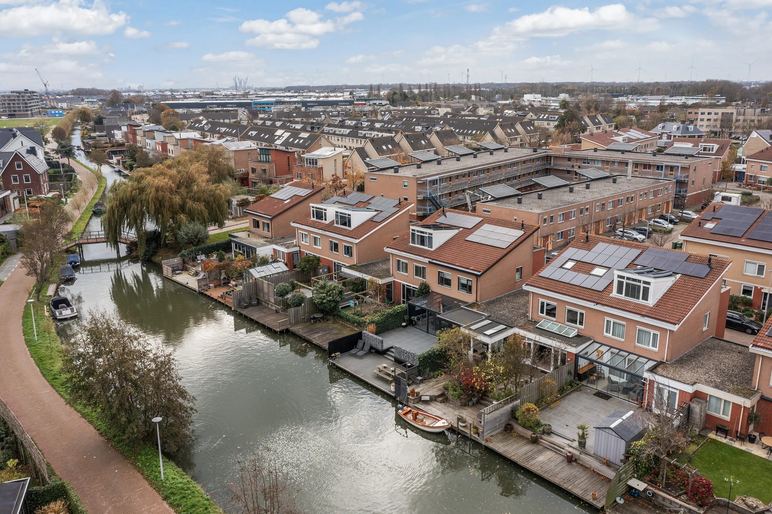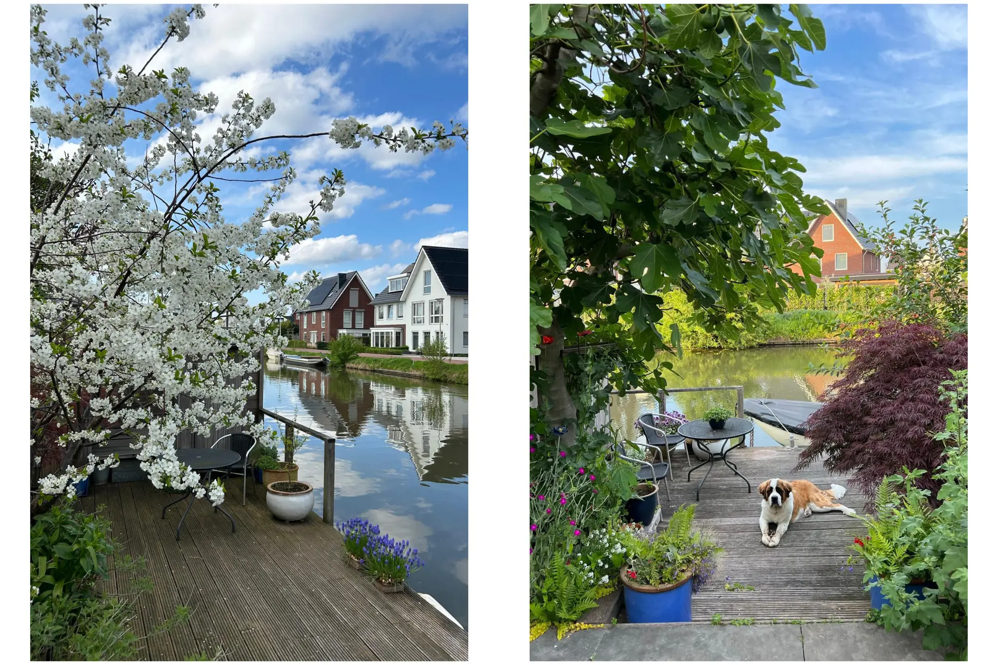 “Vanaf de nieuwbouw in 1998 hebben we hier met zeer veel plezier gewoond. We kozen dit huis vanwege de schitterende locatie aan het doorgaande water van de Nieuwe Vaart. Onze kinderen hebben hier gezwommen en gevist; vanaf de steiger kun je het hele Westland rondvaren. We hebben hier zelfs meerdere winters kunnen schaatsen! De tuin met diverse terrassen, het groen en de grote aanlegsteiger met opbergruimte voor kano’s zijn een enorme bron van plezier geweest. Aan de voorzijde is een heerlijk zonneterras op zolder waar je de hele dag door kunt genieten.”