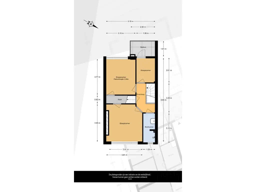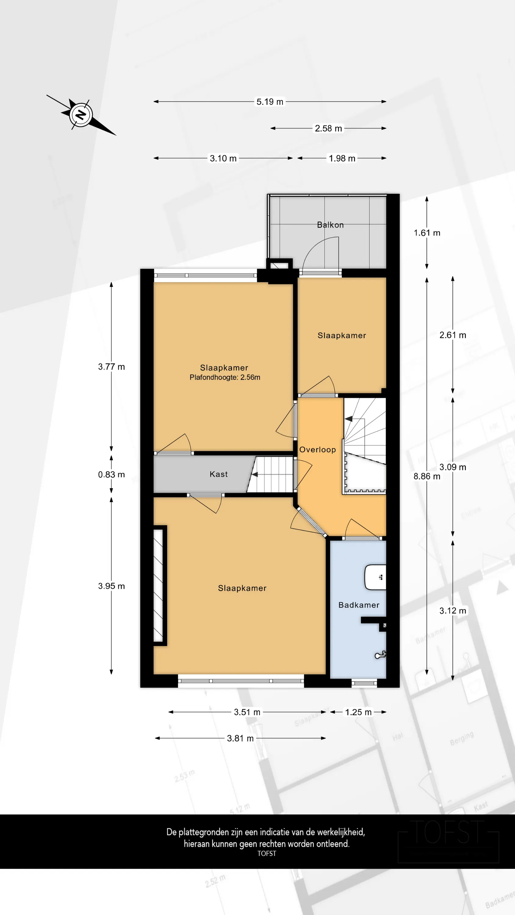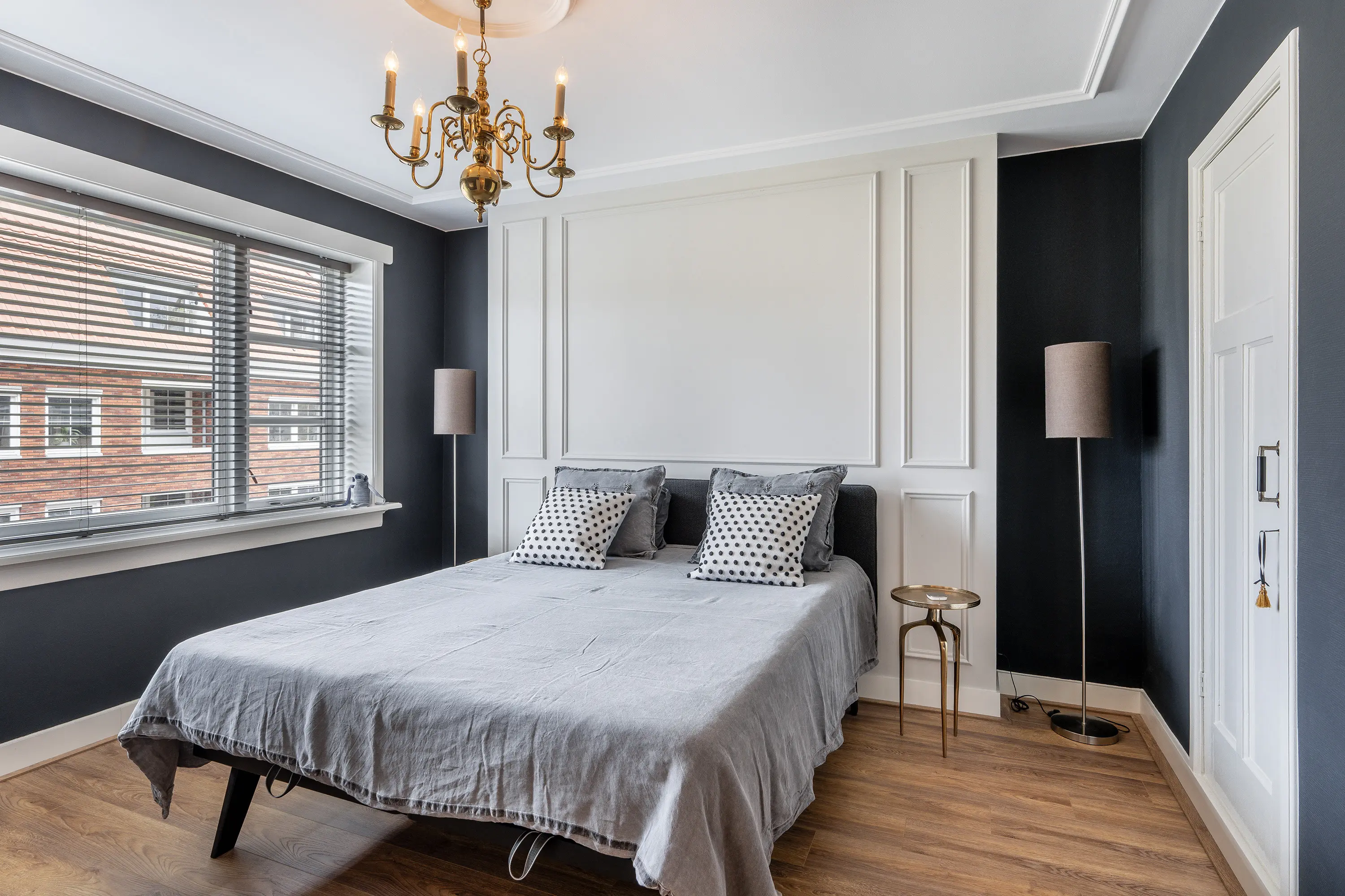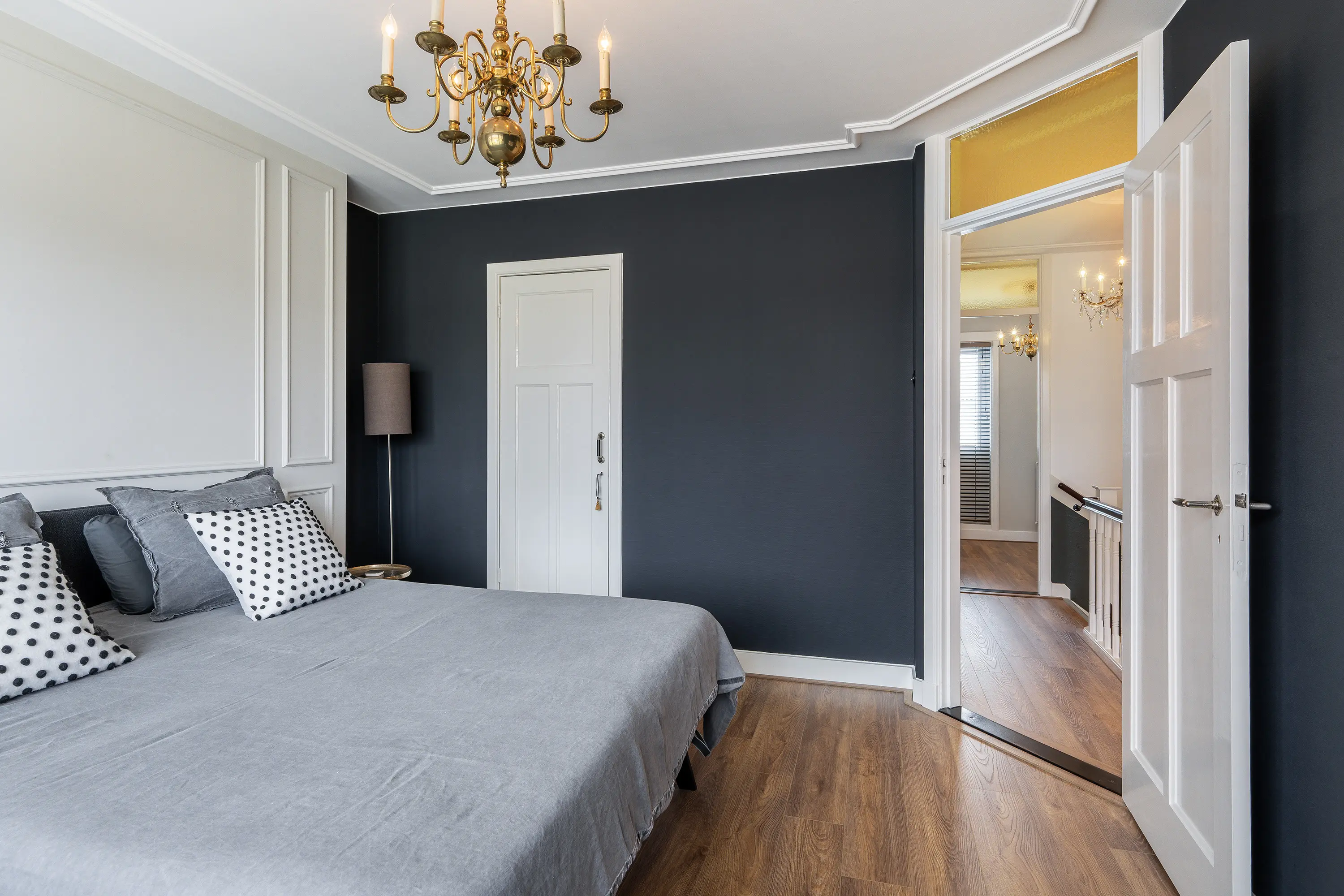 Aan de achterzijde bevinden zich de andere twee slaapkamers. De grootste van deze twee kamers heeft eveneens een grote raampartij met uitzicht op de achtertuin, wat de kamer heerlijk licht maakt. De derde slaapkamer is iets compacter, maar biedt toegang tot het balkon en is daardoor ook multifunctioneel in te richten – bijvoorbeeld als werkkamer, hobbyruimte of kinderkamer.