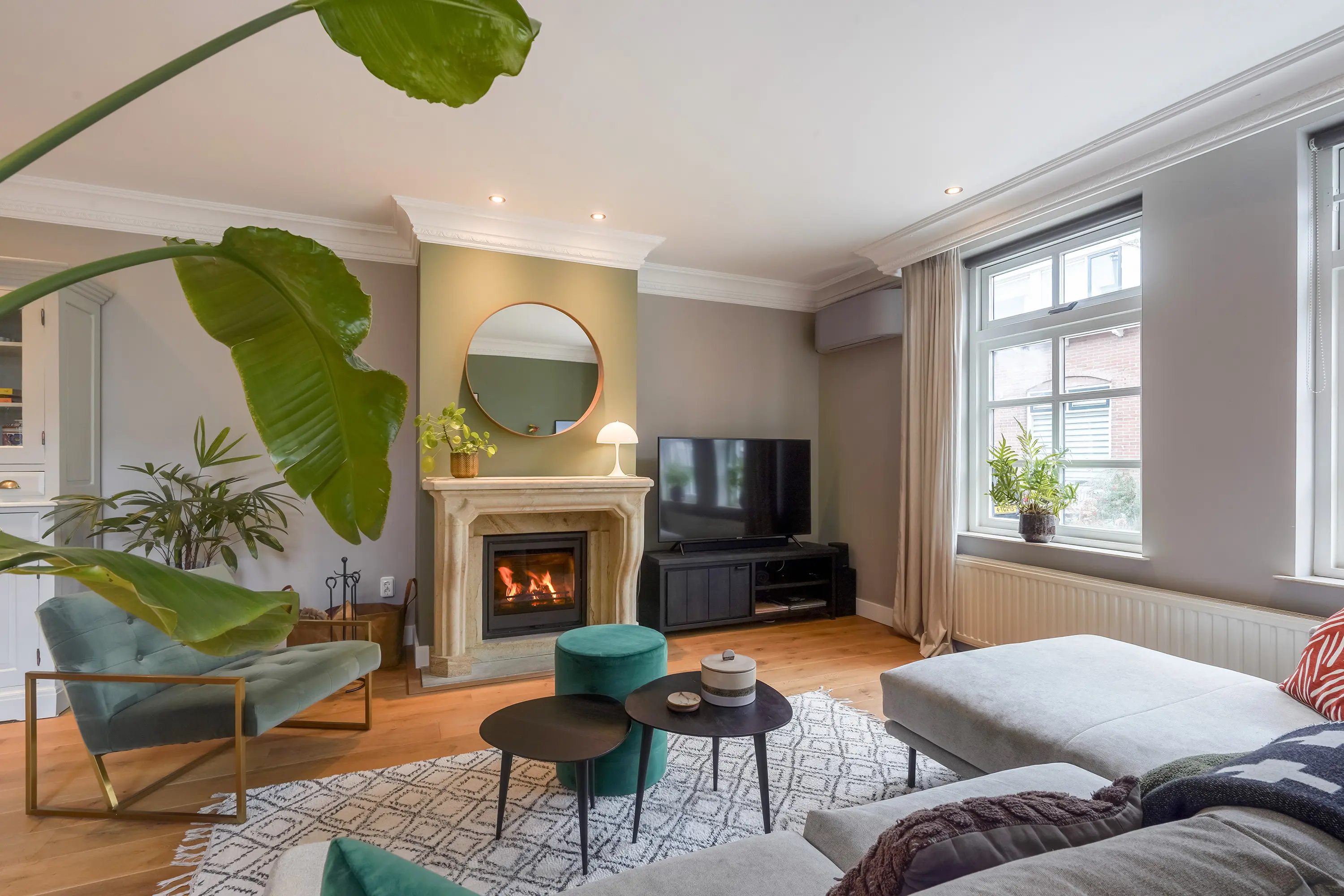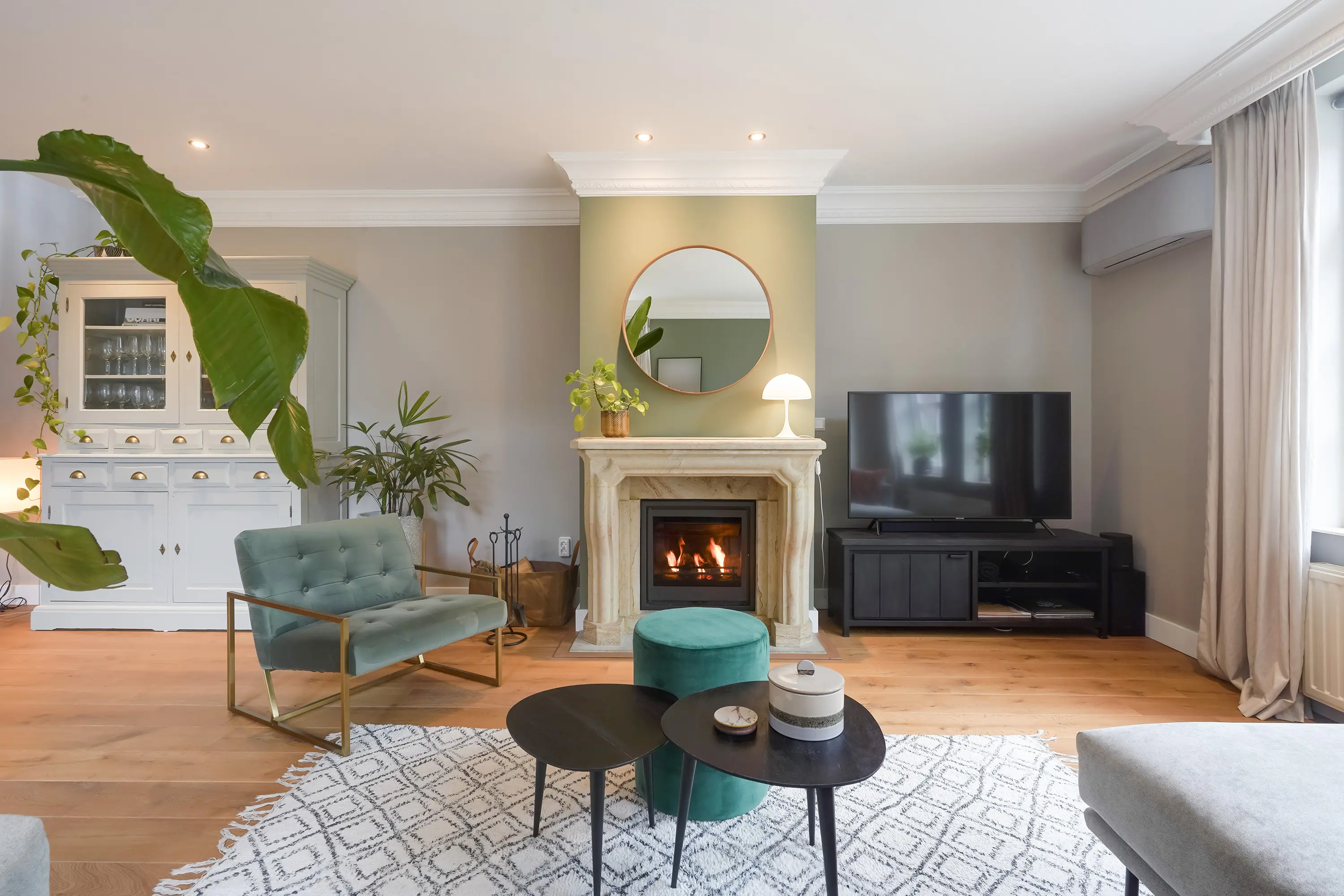 - Lichte, open leefruimte met houtkachel (2024) en airconditioning;