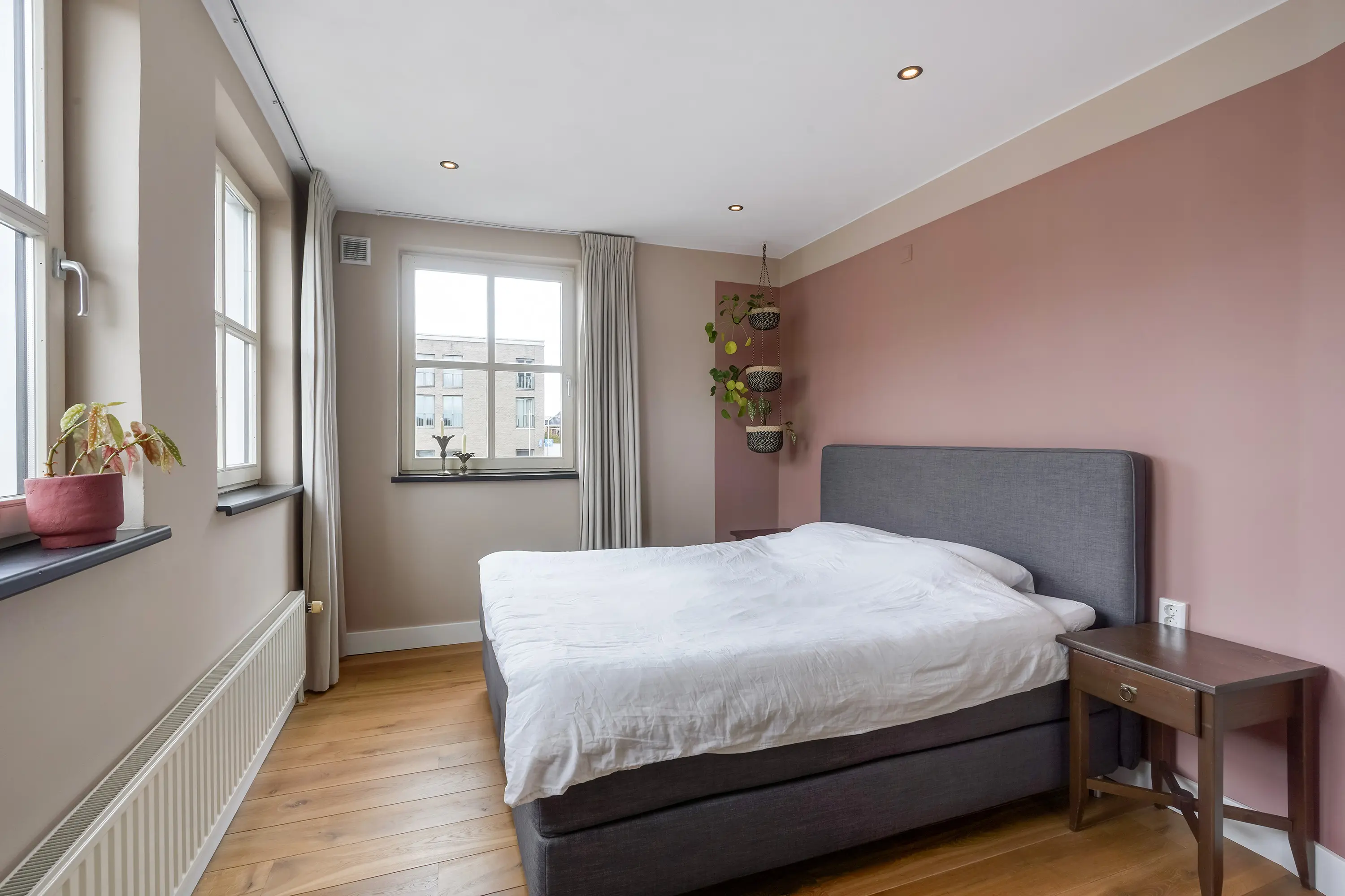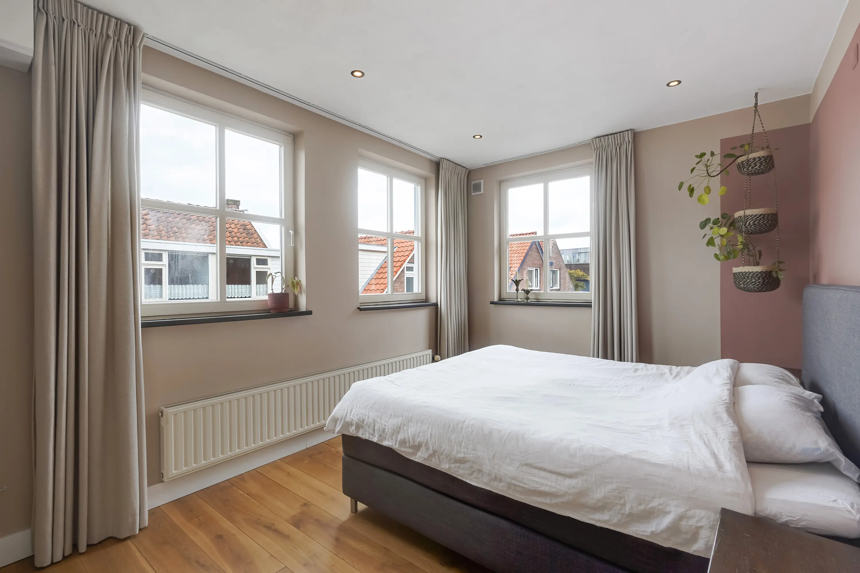 De eerste slaapkamer ligt aan de voorzijde van de woning en beschikt over drie raampartijen, wat zorgt voor een mooie lichtinval en een prettige sfeer. De andere twee kamers bevinden zich aan de zijkant van de woning. Deze ruimtes worden momenteel niet gebruikt als slaapkamer, maar zijn hier zeer zeker geschikt voor.