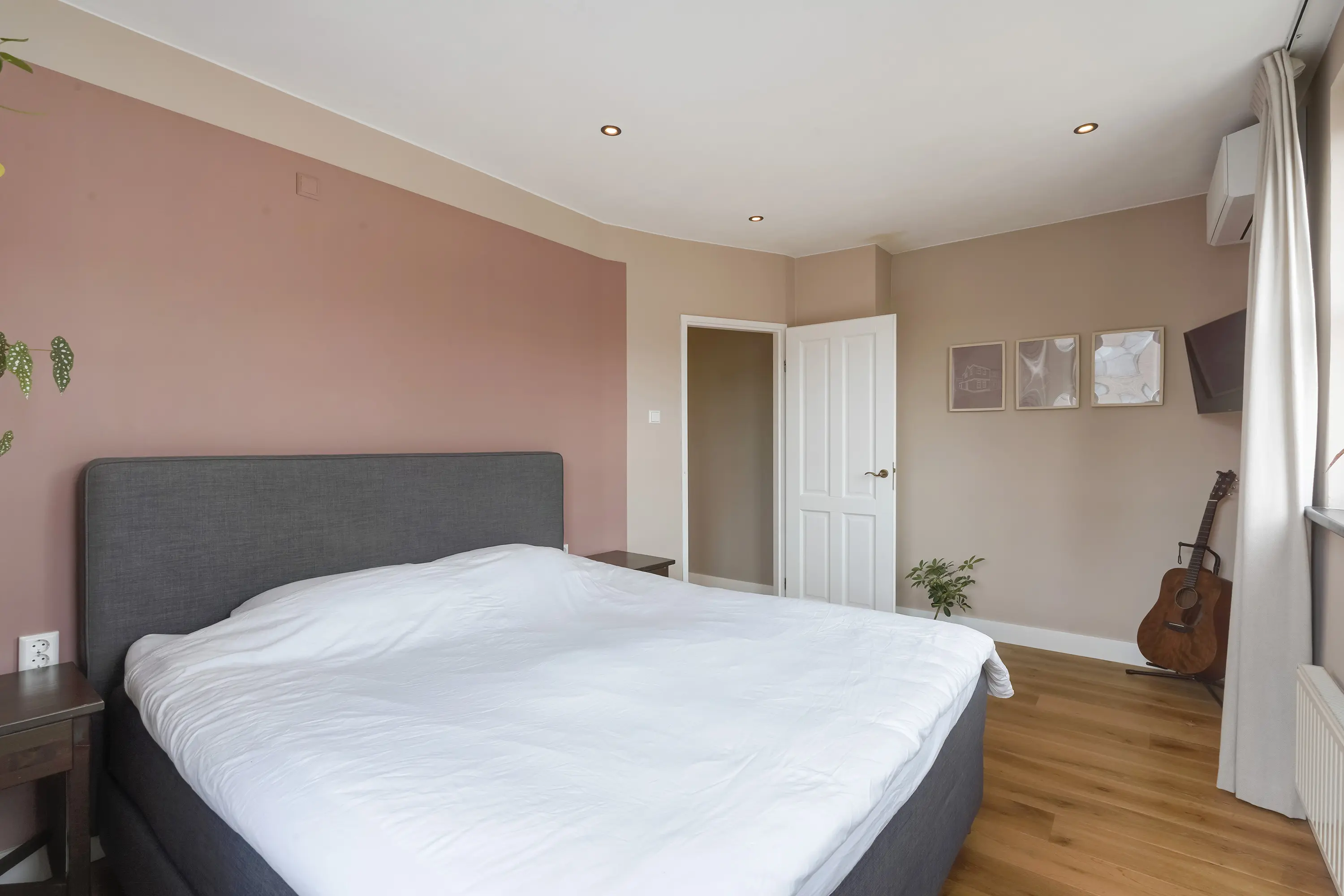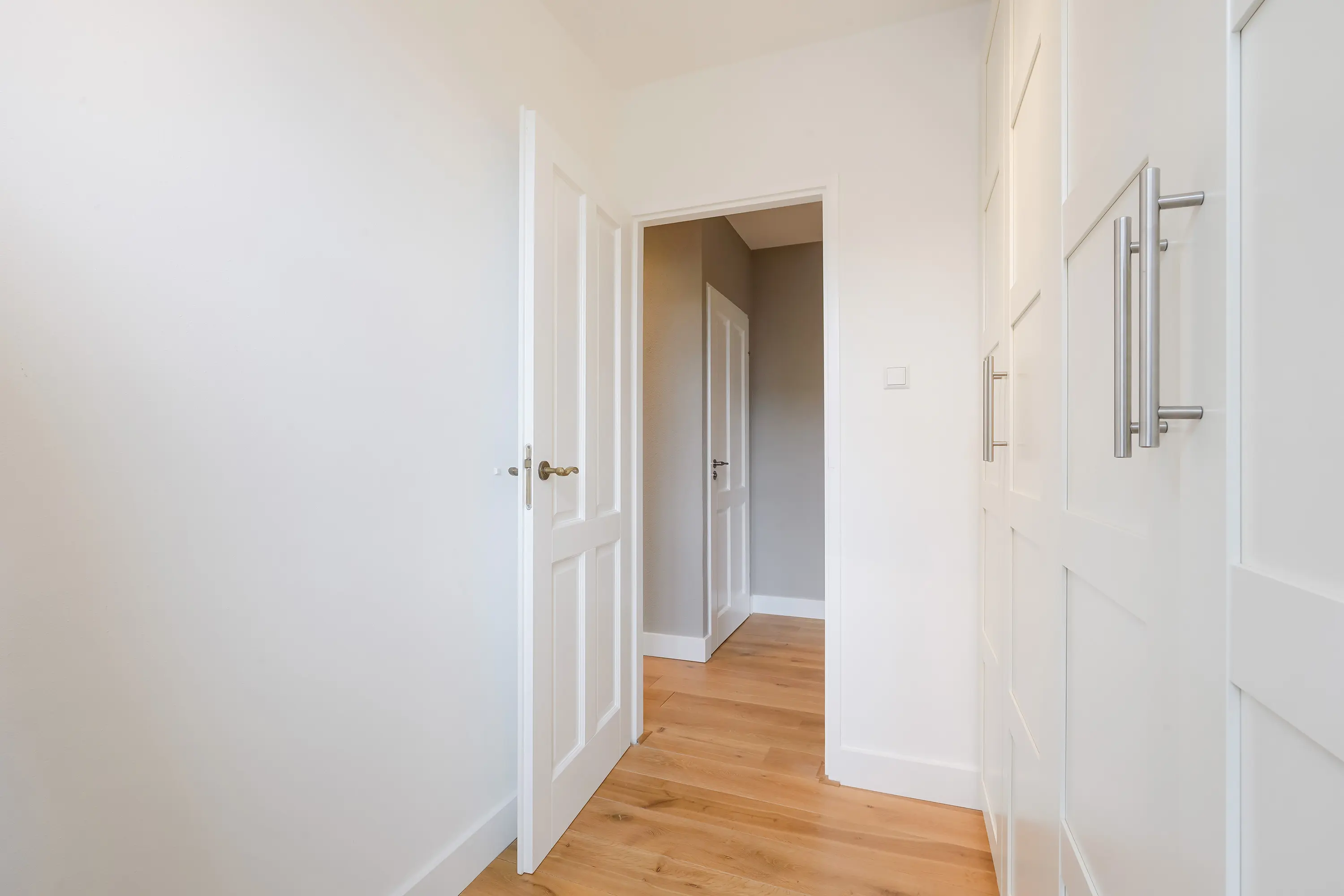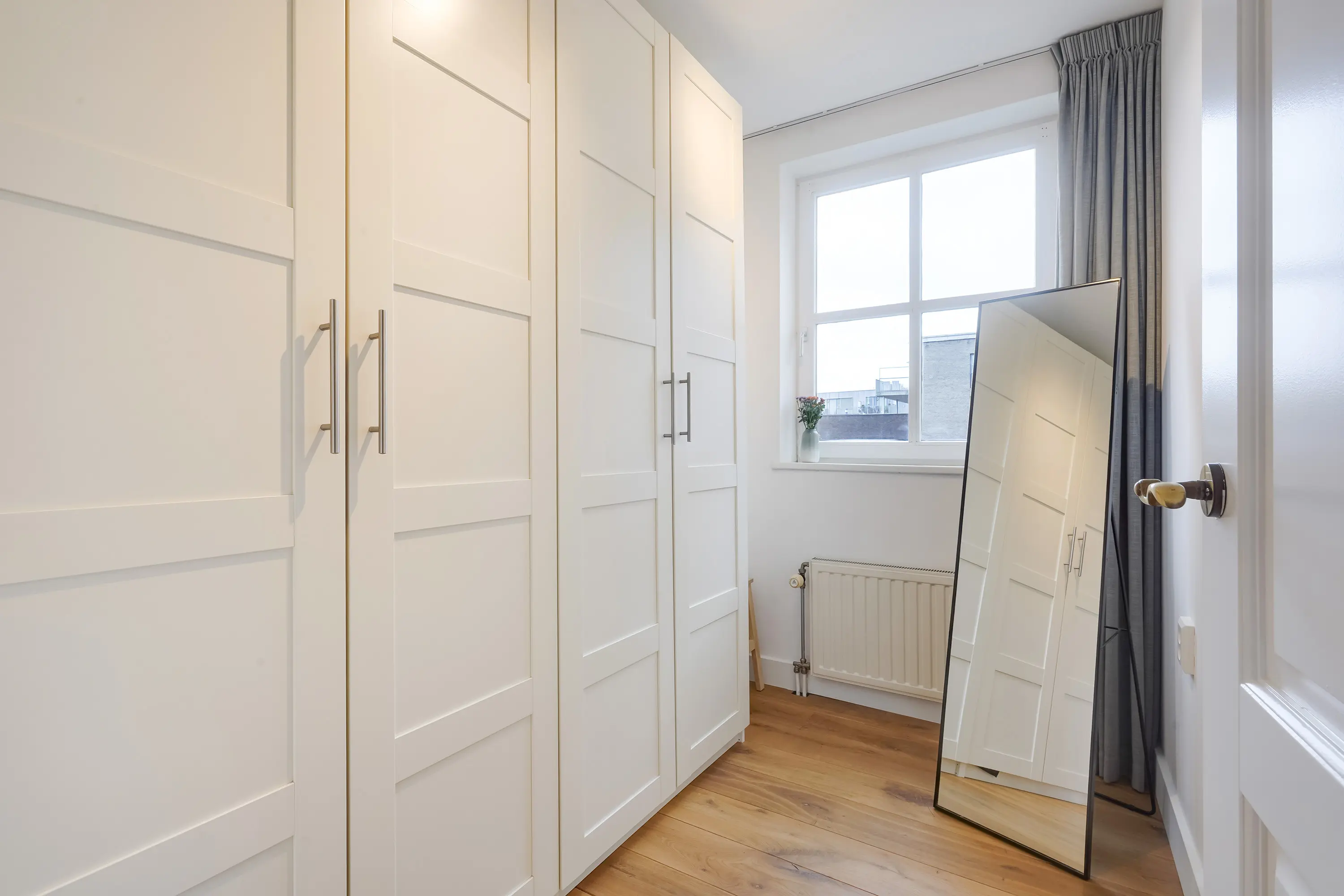 De linker kamer is momenteel ingericht als inloopkast, ideaal voor kledingopslag of als extra bergruimte.