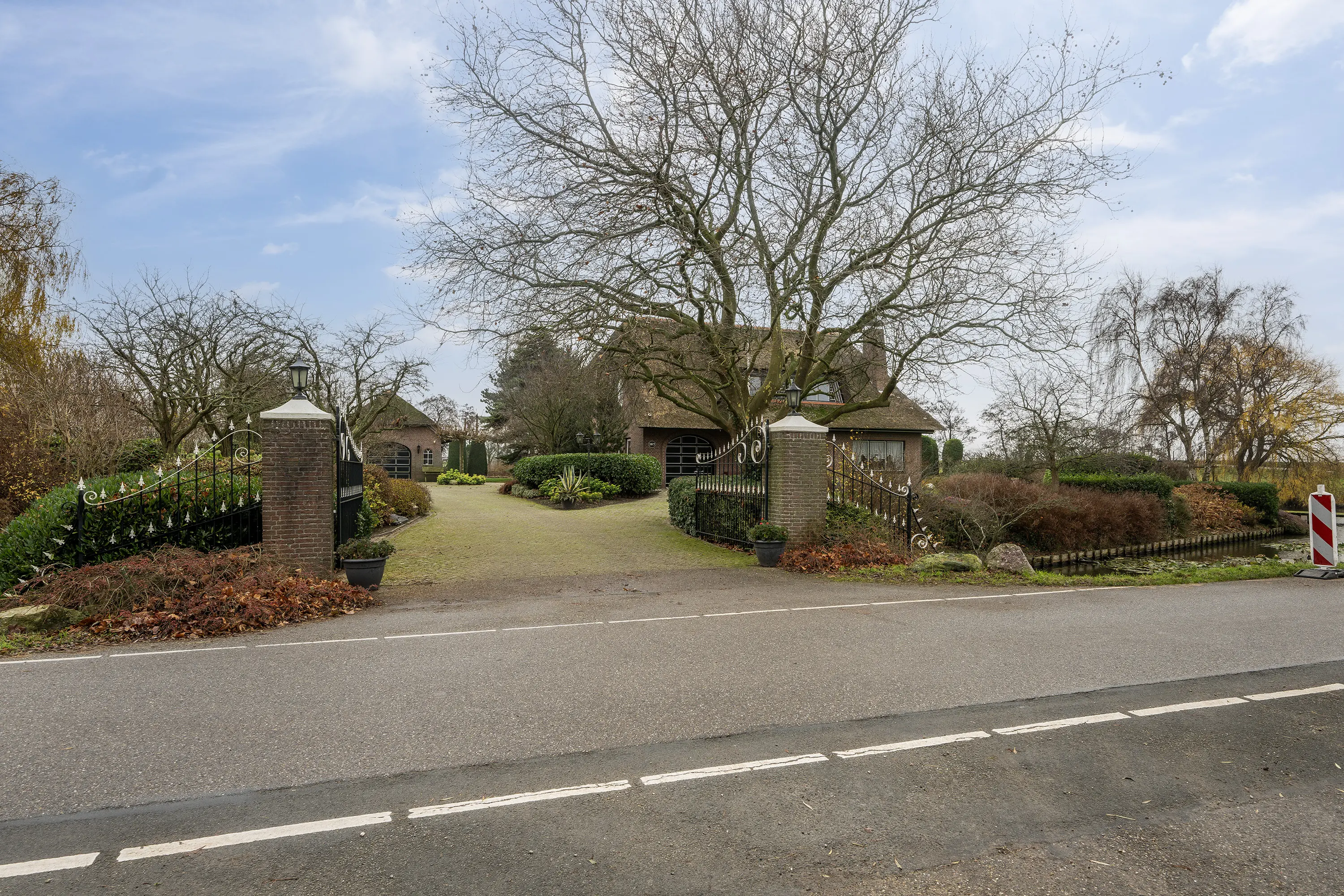 Via de ruime oprit met toegangshek bereikt u het perceel, waar ruime parkeergelegenheid op eigen terrein aanwezig is. De woning is omgeven door een fraai aangelegde tuin en een prachtige vijverpartij.