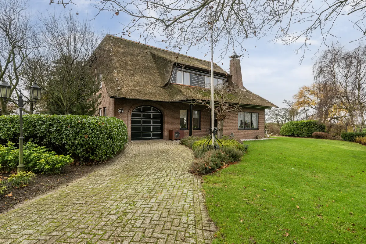 De woning, oorspronkelijk gebouwd in circa 1988 en in 1995 deels opnieuw opgebouwd, is traditioneel en degelijk gebouwd met gemetselde gevels en betonnen vloeren. Het karakteristieke rietgedekte dak geeft het geheel een warme en landelijke uitstraling, passend bij de unieke ligging. Door de jaren heen is de woning zorgvuldig onderhouden en vergaand verduurzaamd, met onder andere circa 74 zonnepanelen, een hybride warmtepomp in combinatie met een cv-installatie, airconditioning en goede isolatievoorzieningen.