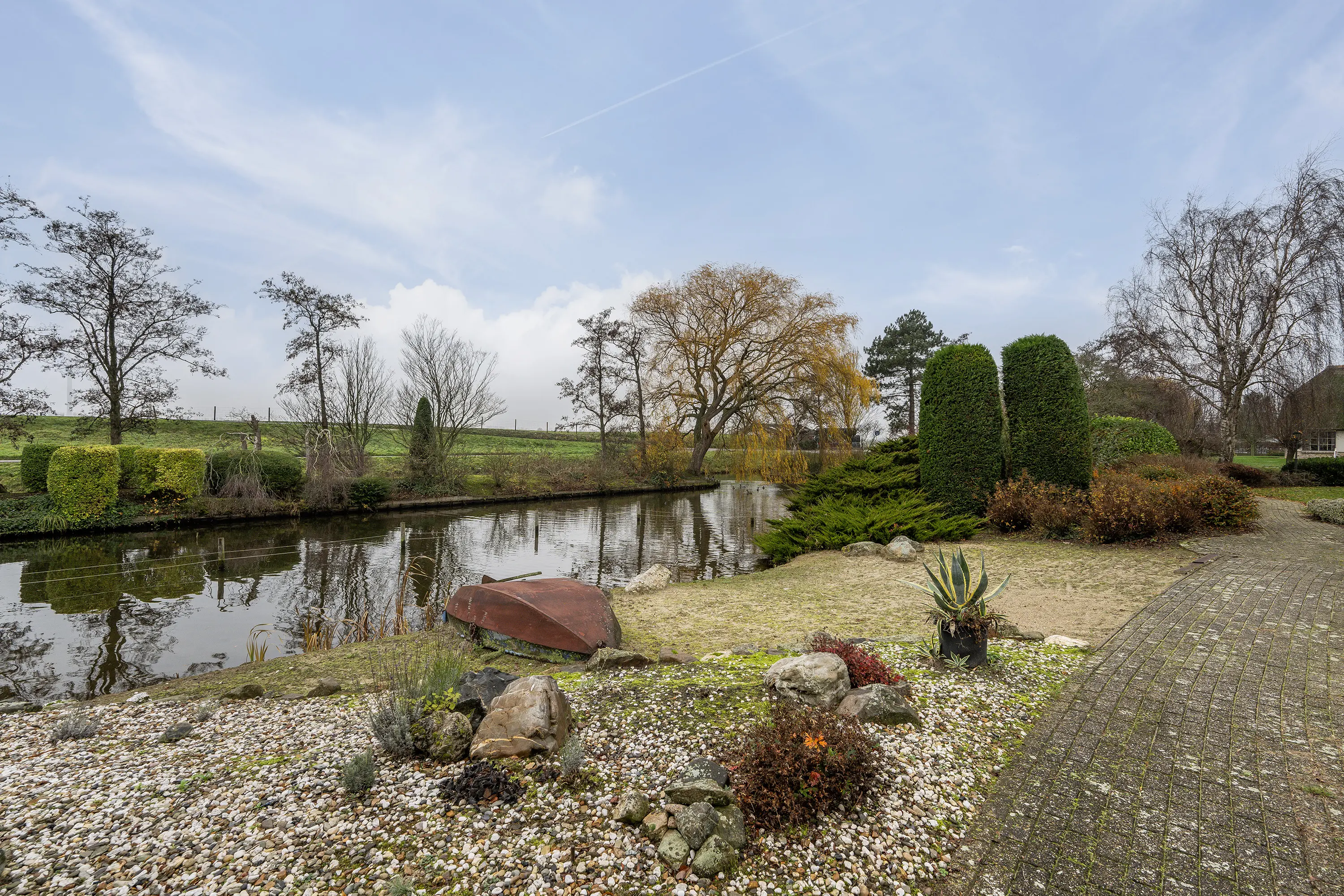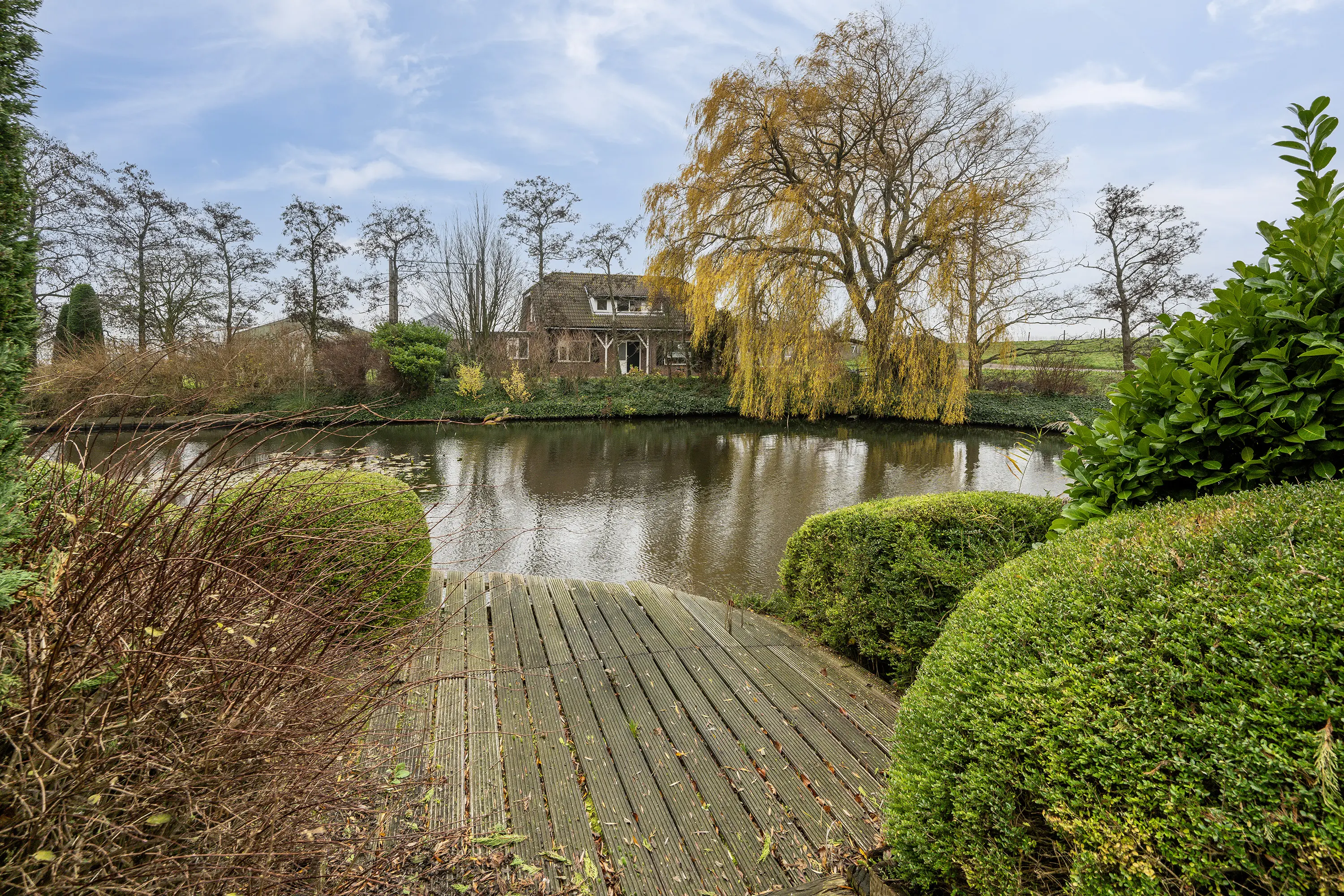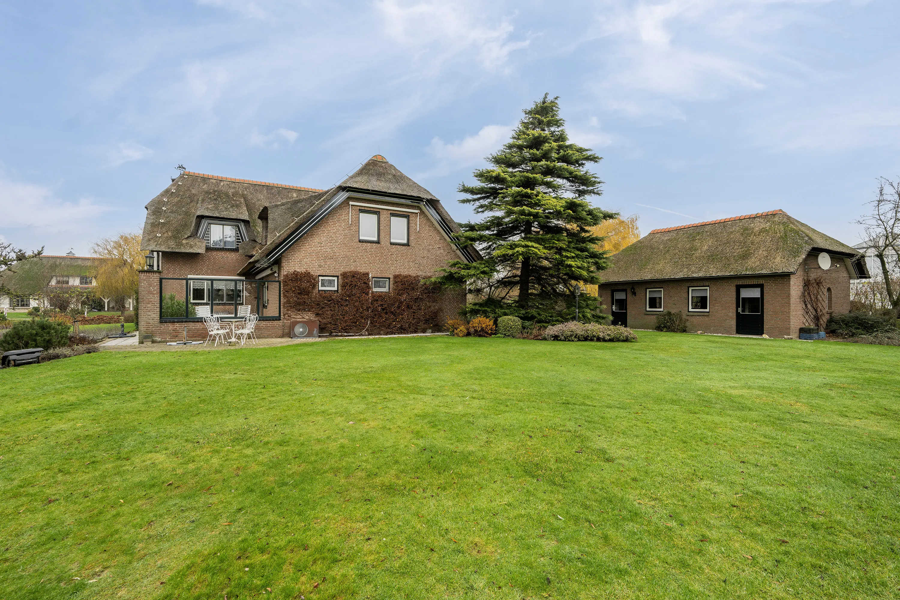 De fraai aangelegde tuin rondom, met vijverpartij en volwassen groen, zorgt voor een gevoel van absolute vrijheid en een unieke beleving van buiten wonen. Hier ervaart u elke dag het buitenleven in optima forma.