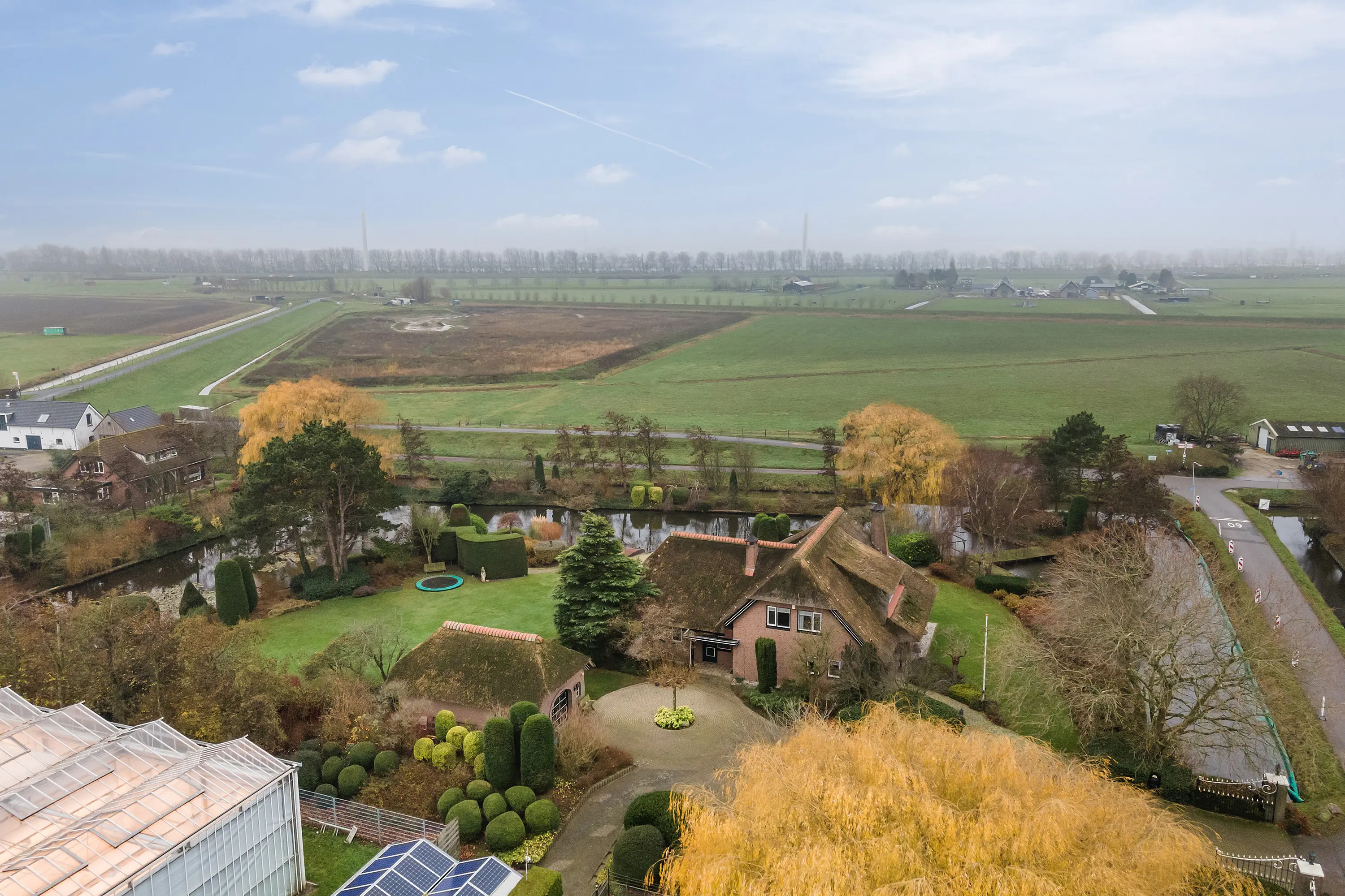 Aan de rand van de Korte Kruisweg, met een vrij en weids uitzicht richting de Oranjedijk, ligt deze bijzonder fraai gelegen, vrijstaande en duurzaam uitgevoerde woning op een royaal perceel van ca. 9.529 m², met volledig woonbestemming.