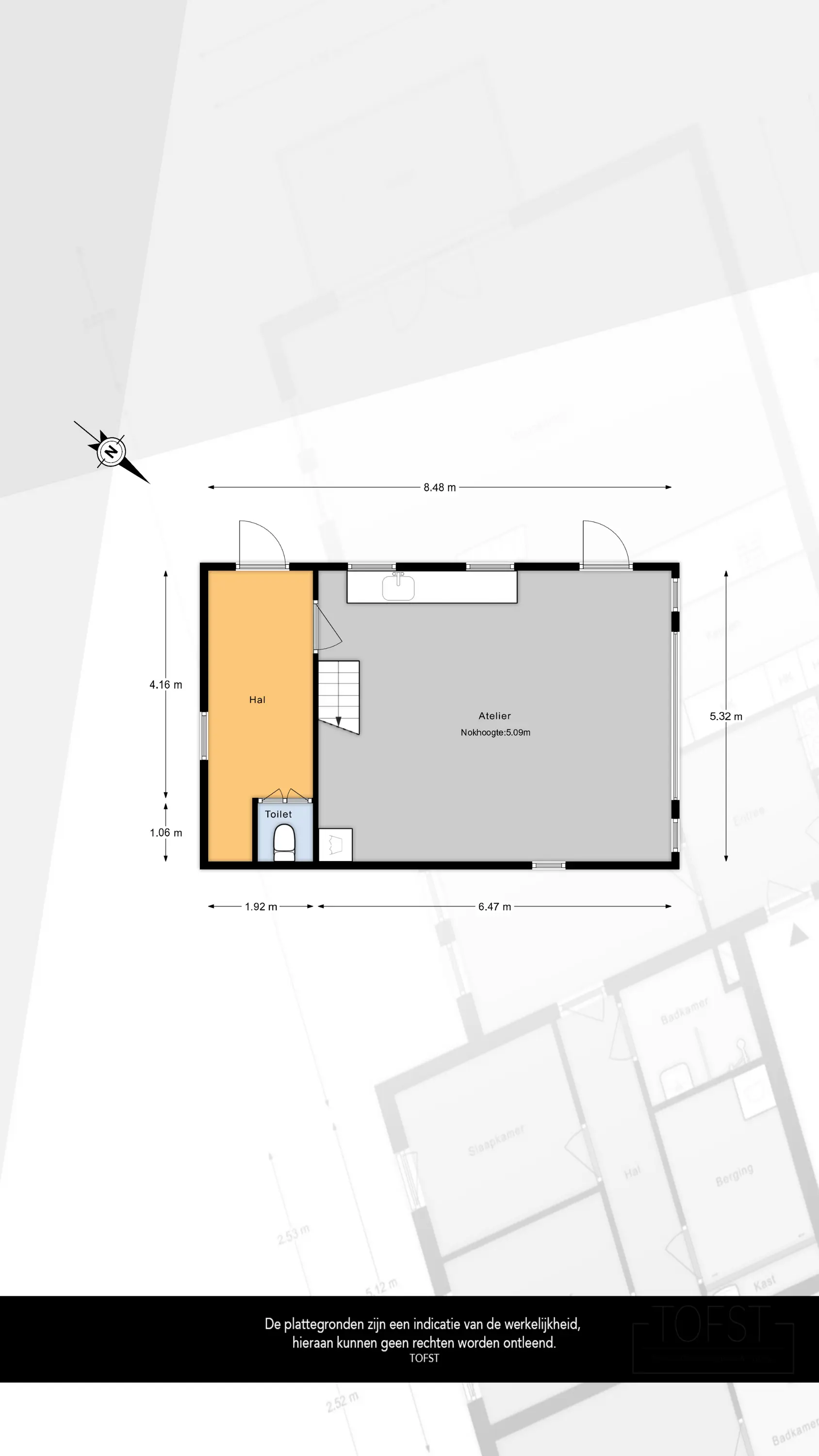 - Vrijstaand bijgebouw / voormalige tweede garage van ca. 45 m², inclusief toilet en hoge nok (ca. 5,09 m), geschikt voor hobby, werk of stalling;