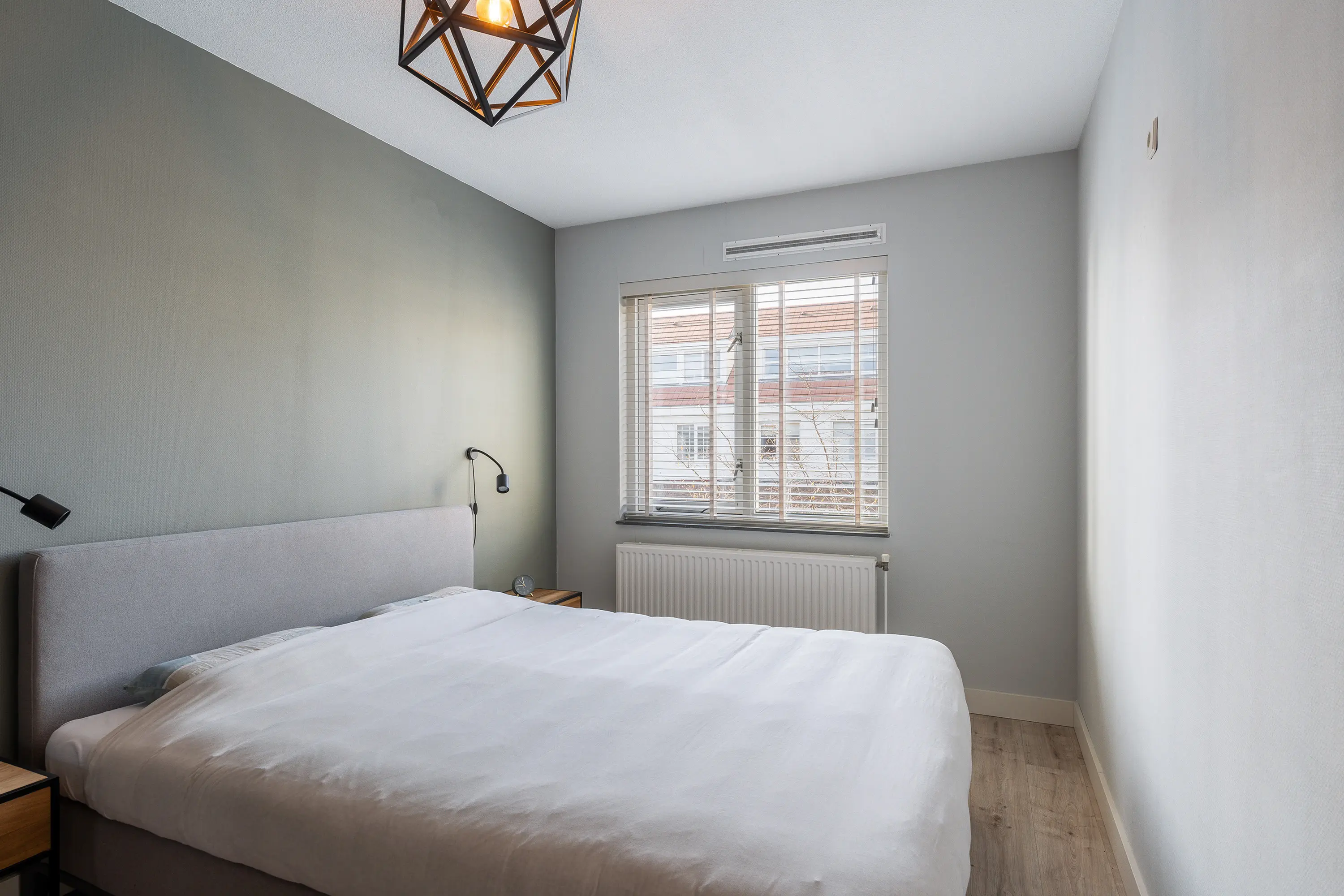De eerste slaapkamer bevindt zich aan de voorzijde van de woning en beschikt over een groot raam met uitzicht op de straat.
