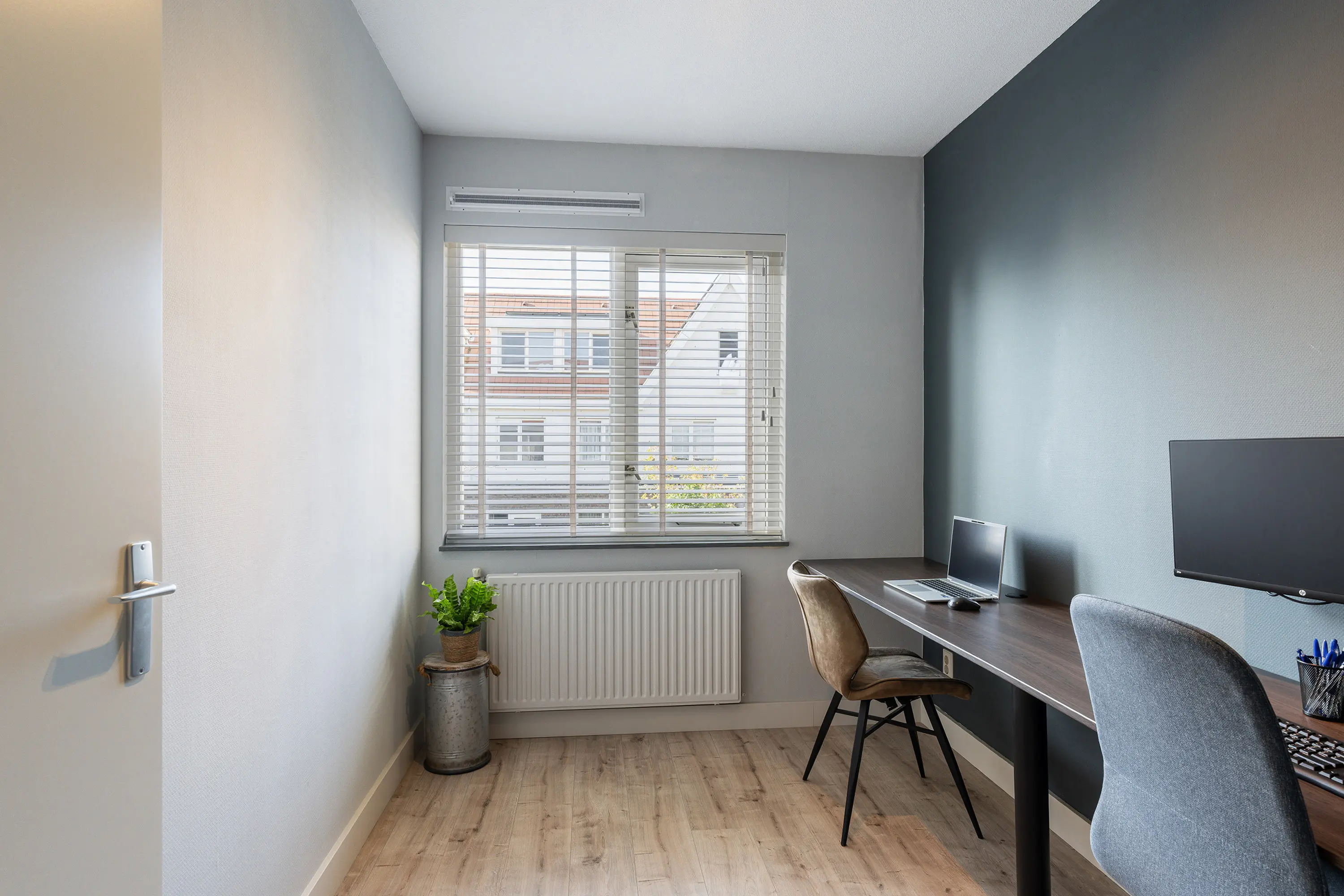 De derde kamer, aan de rechterzijde van de overloop, wordt momenteel gebruikt als kantoor-/werkruimte, maar is ruim genoeg om eveneens als slaapkamer te dienen.