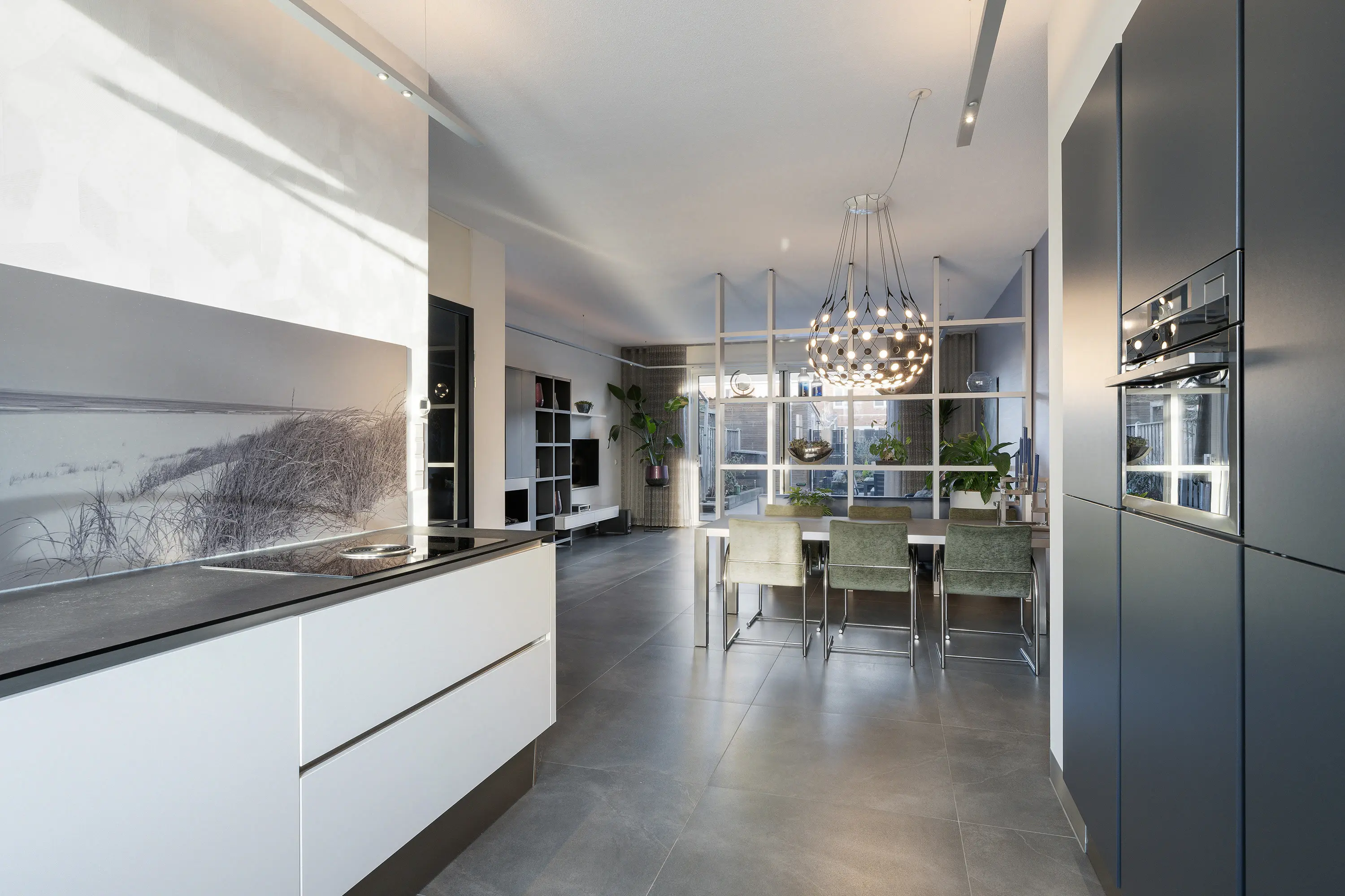 - Moderne keuken met XL koelkast en XL vriezer, combi-oven, stoomoven en Quooker;